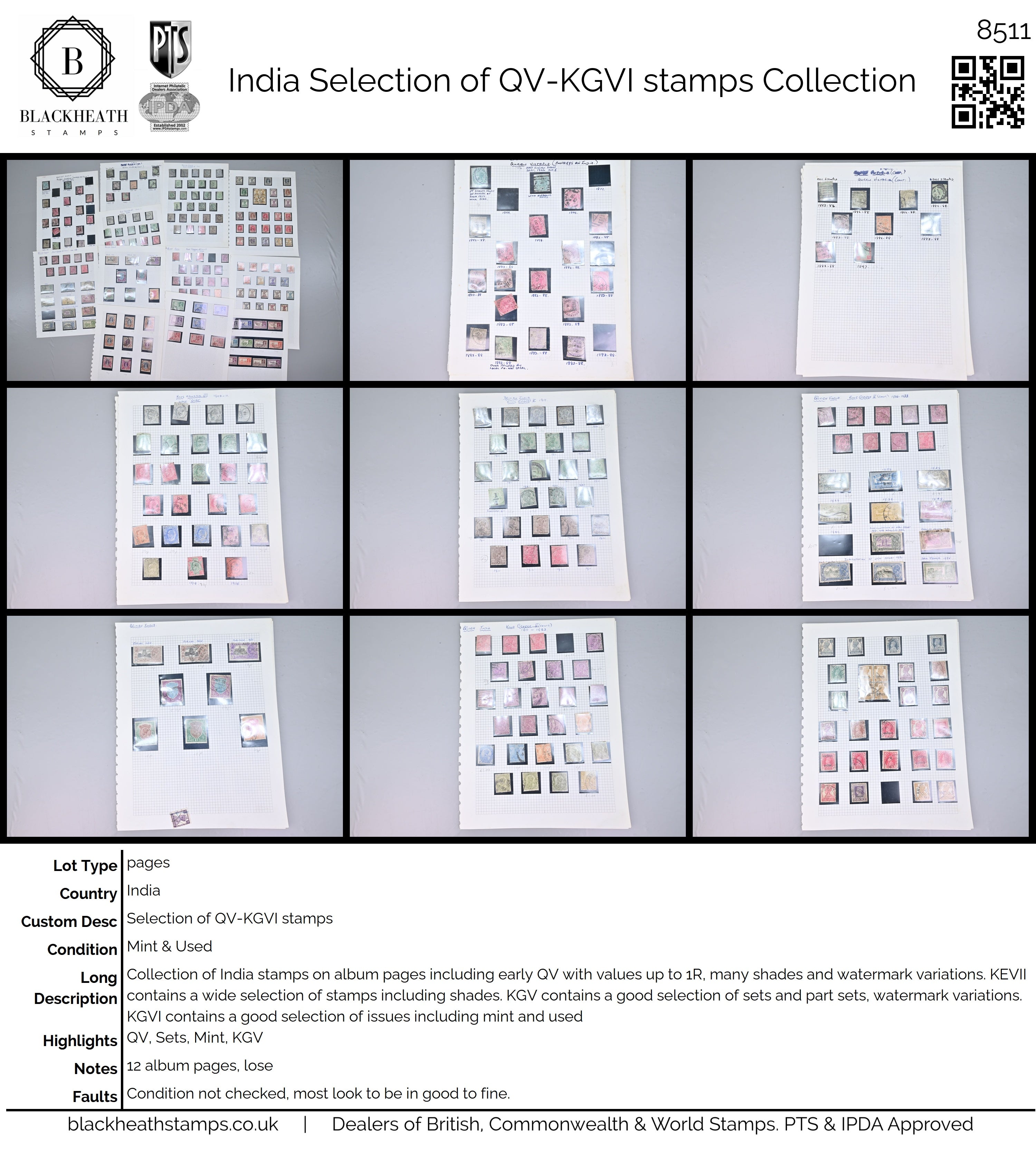 8511 India Selection of QV-KGVI stamps Mint & Uséd 16 Images: