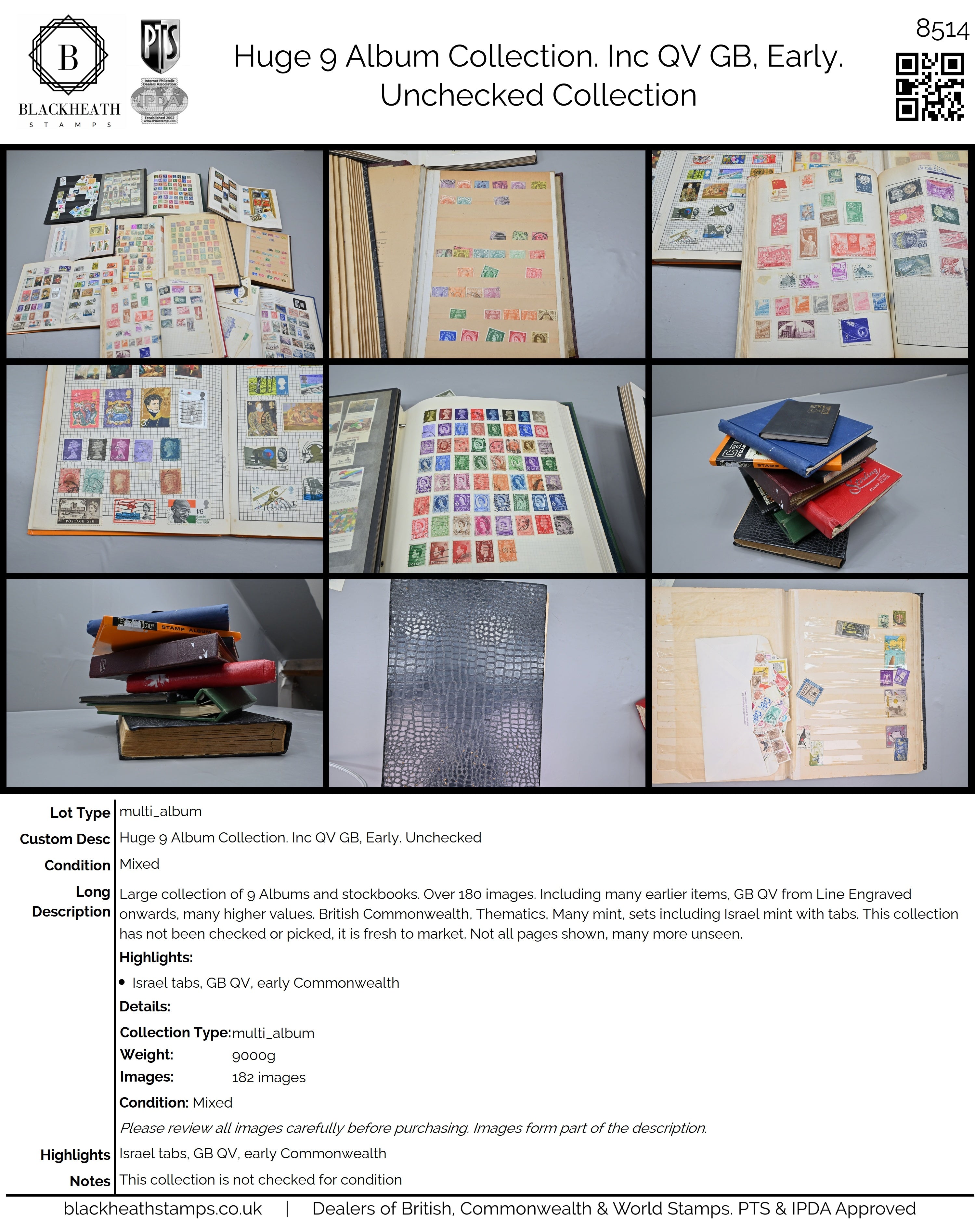 8514 World: Huge 9 Album Collection. Inc QV GB, Early. Unchecked. Mixed. 184 Images