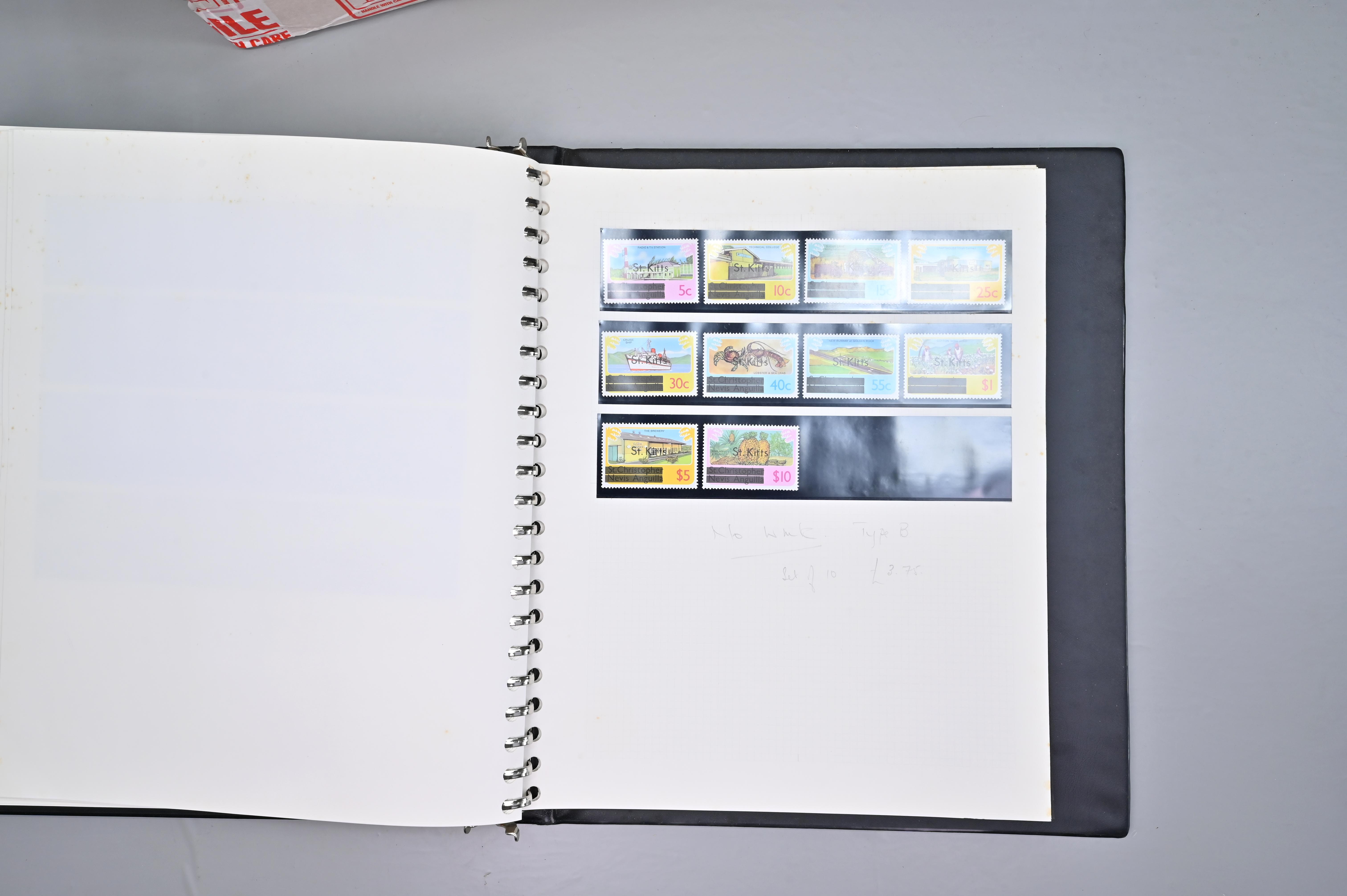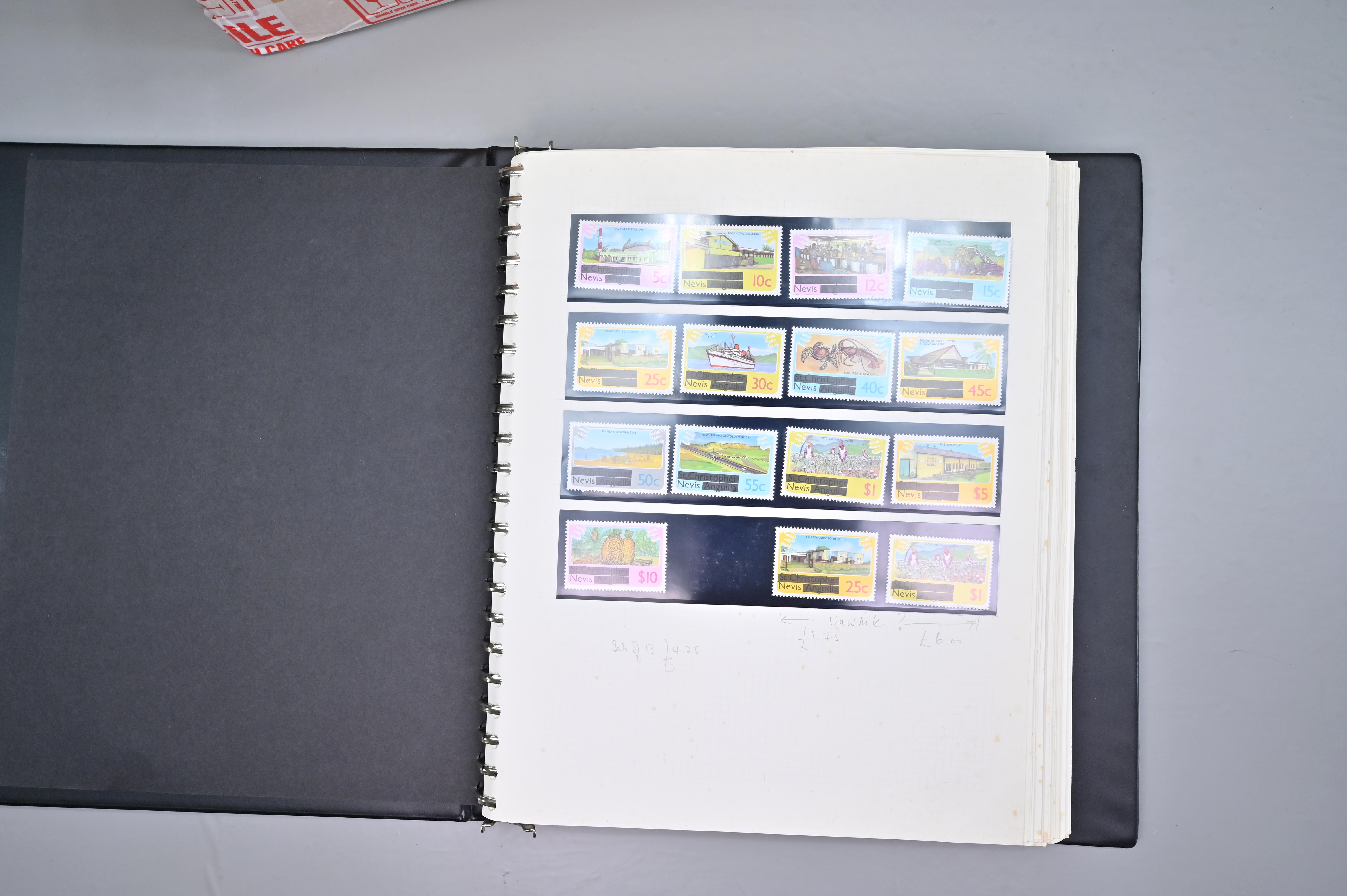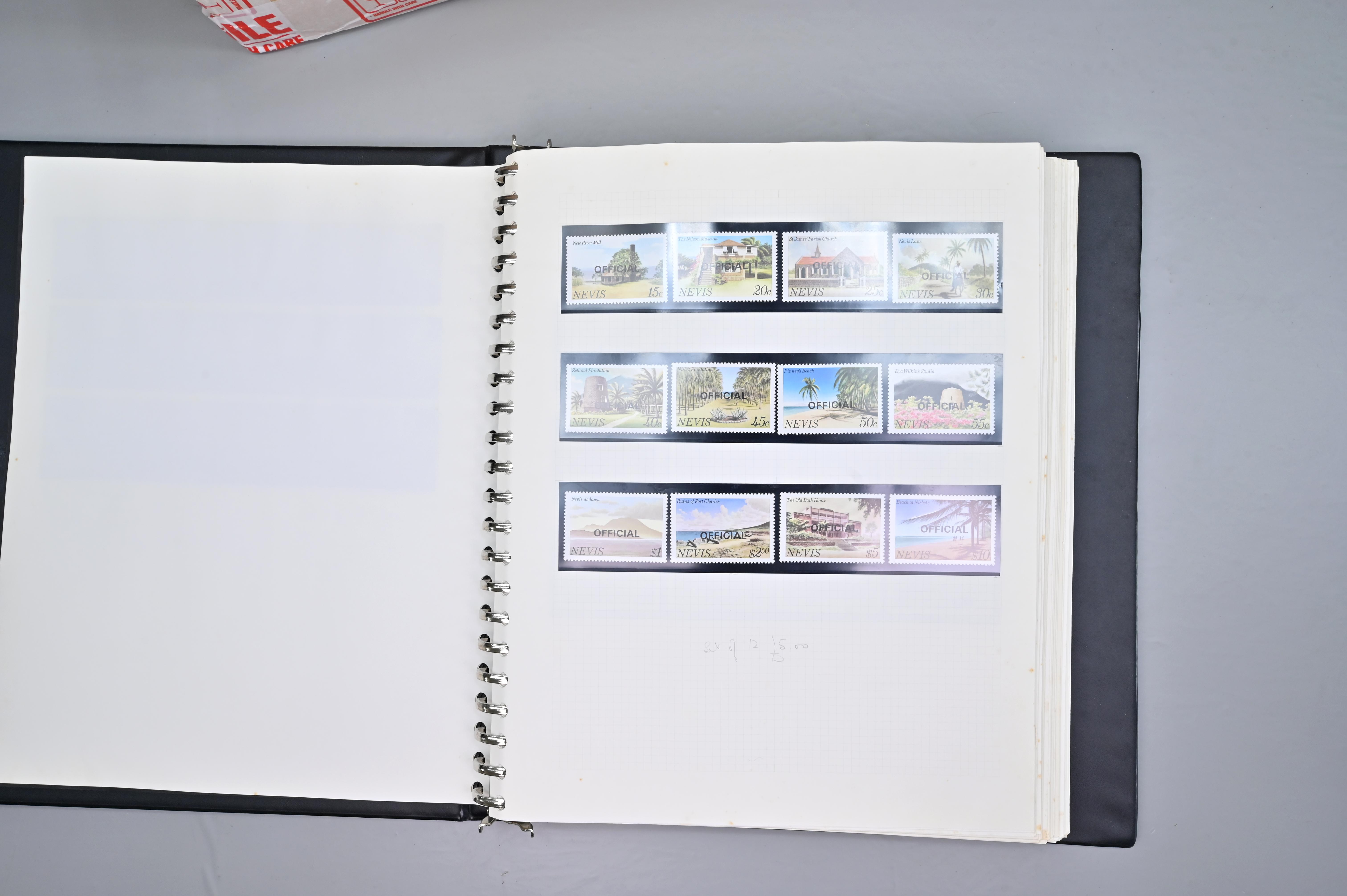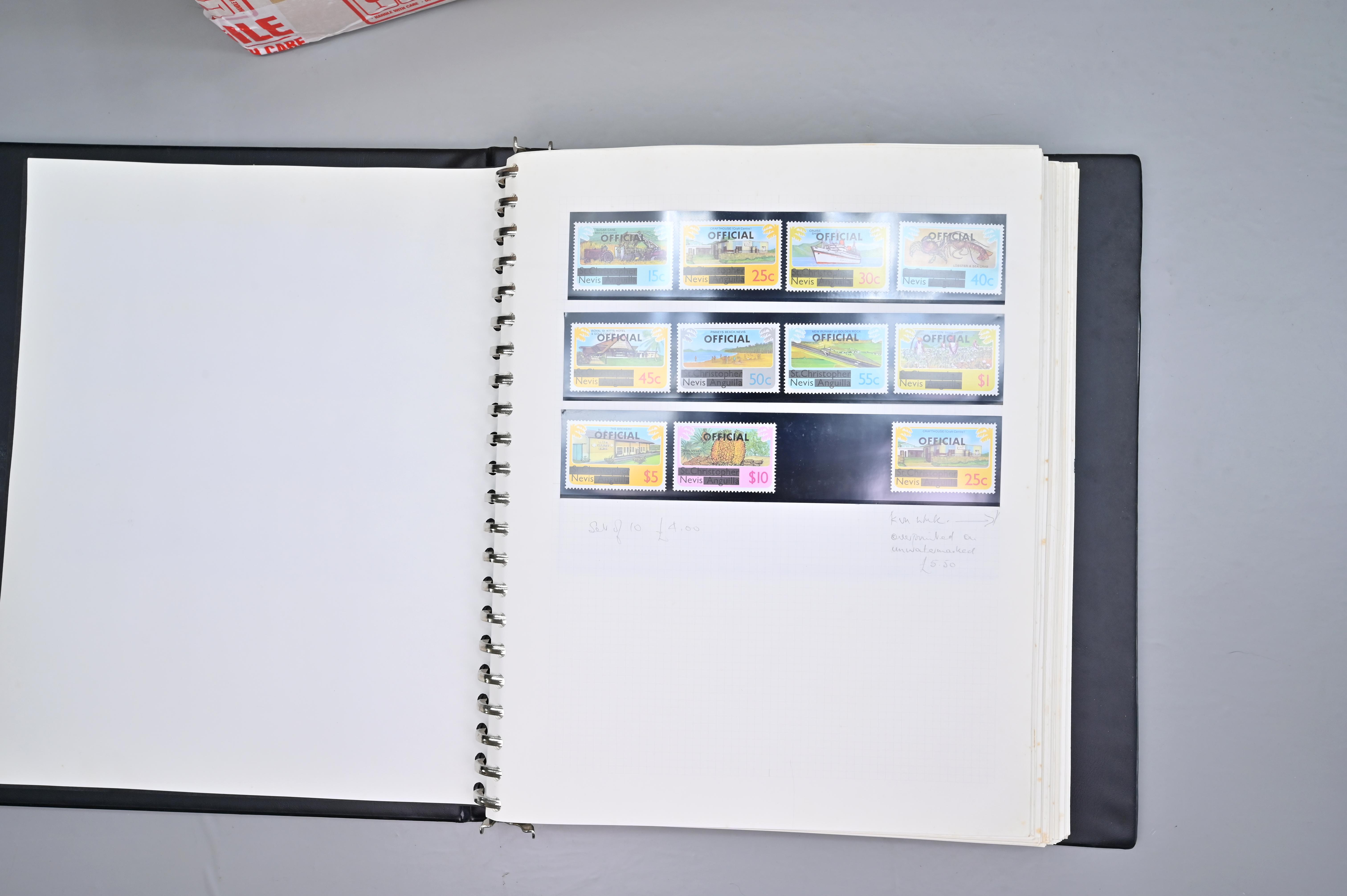 Large album containing Mint MNH stamps in sets from: Nevis (Inc Officials, high values, Overprints), St Christopher Nevis & Angulia (Inc Officials), Isle of Man, Norfolk Island, Pitcairn Islands, Kiribati (Inc Specimens, O.K.G.S), British Antarctic Territory, Tuvalu (Inc Specimens, Officials), St. Kitts (inc Officials, Specimens). Many sets include watermark variations, miniature sheets. All stamps are in pristine condition. Overall superb collection.