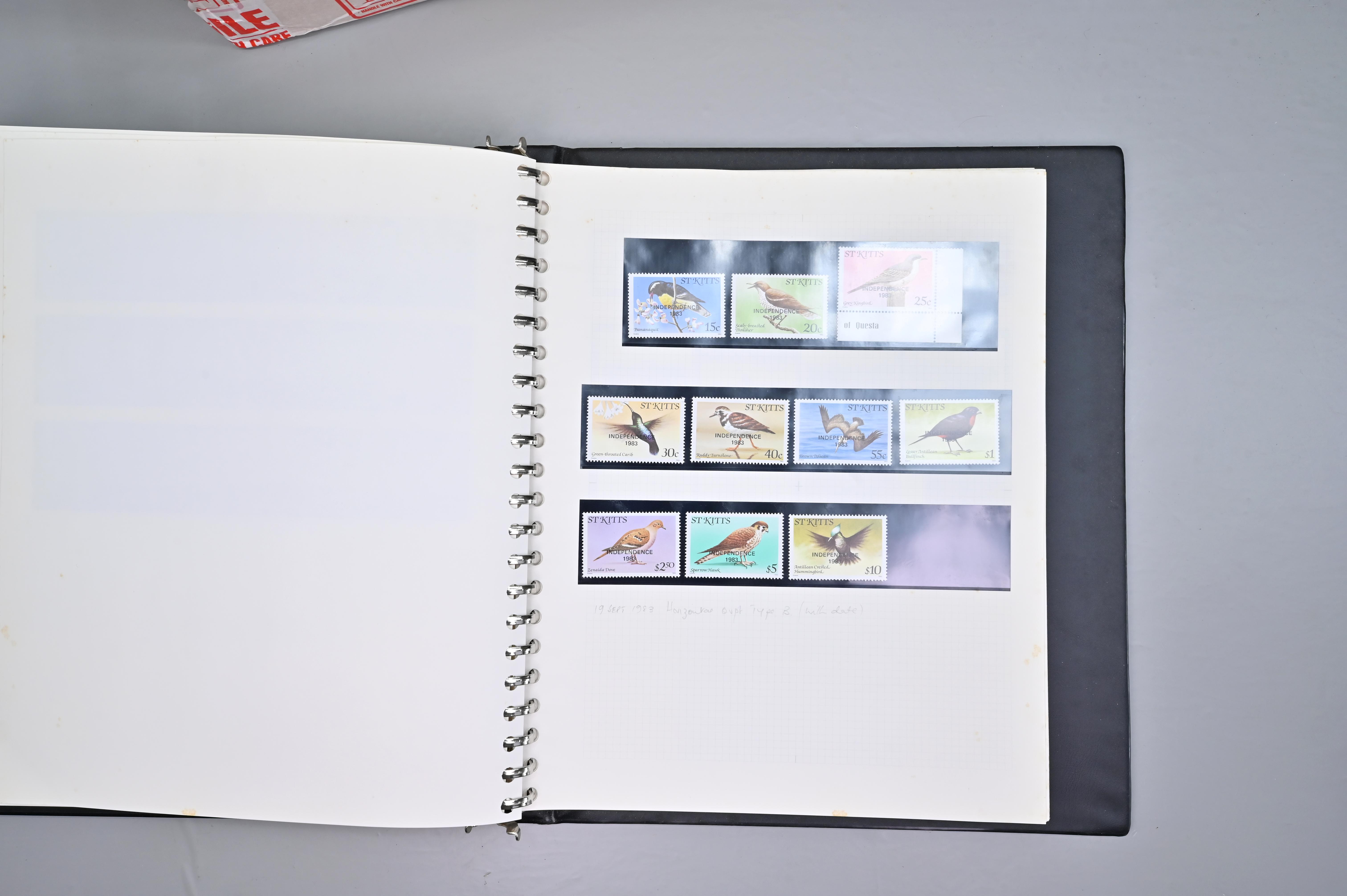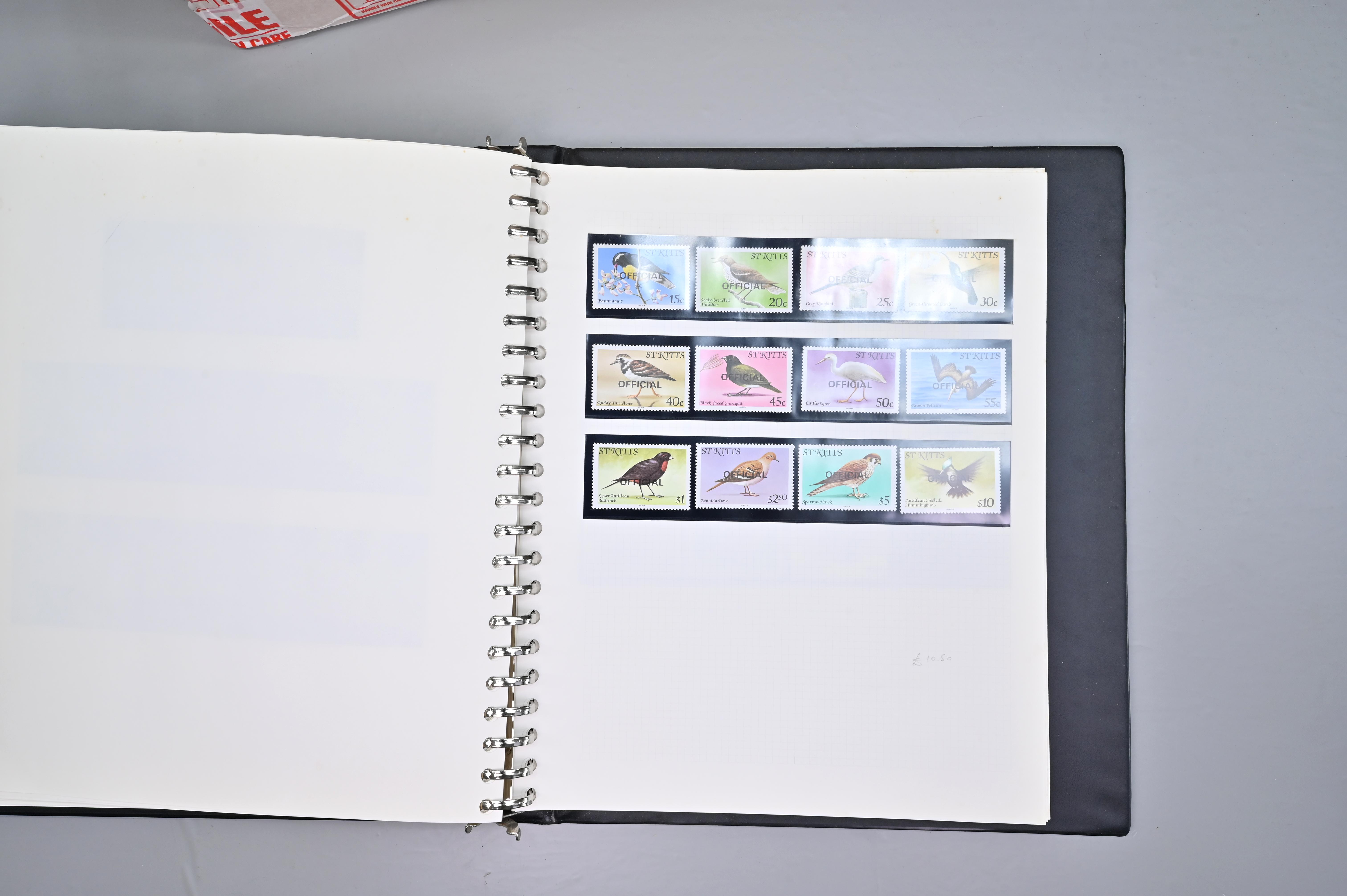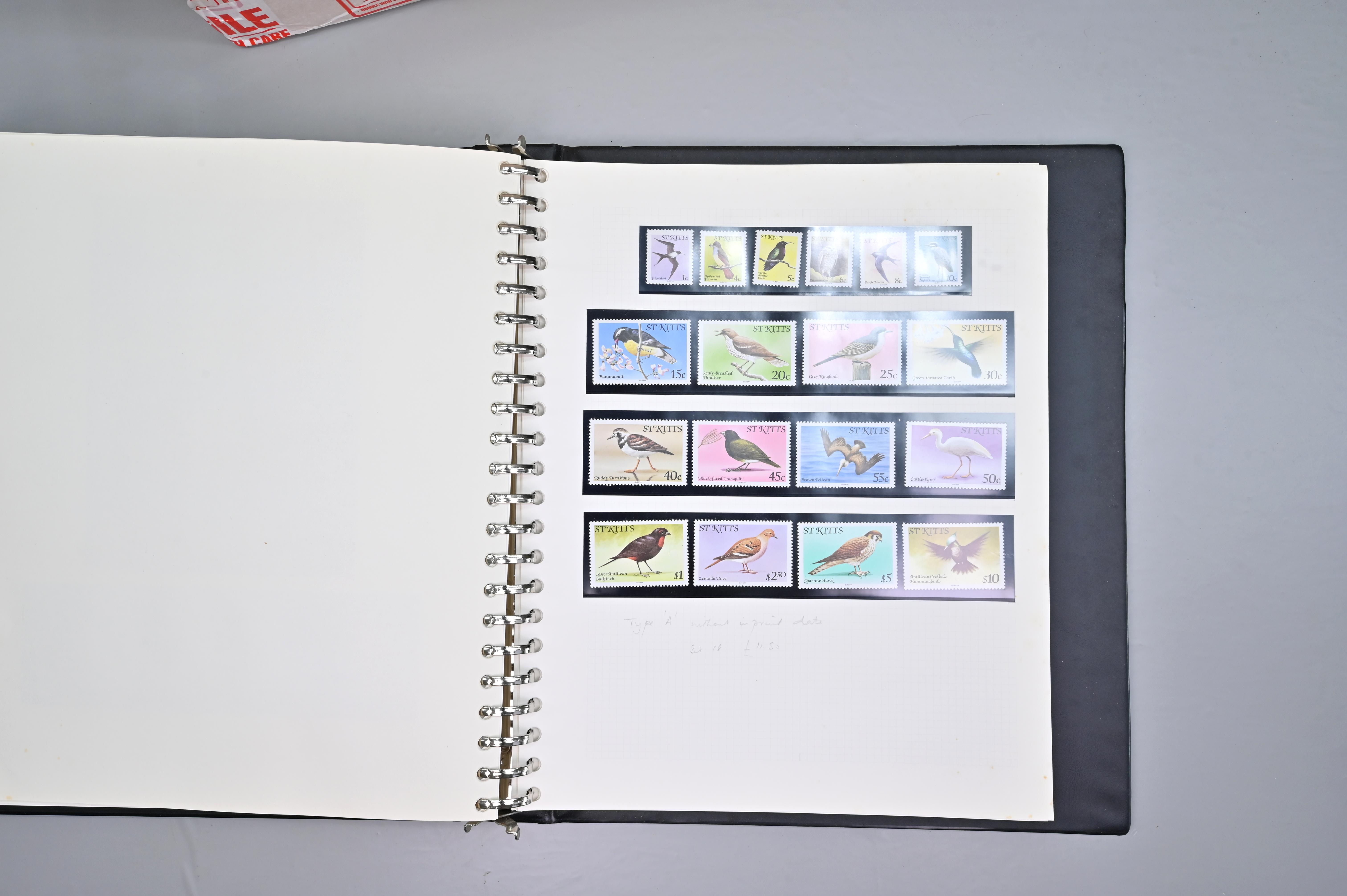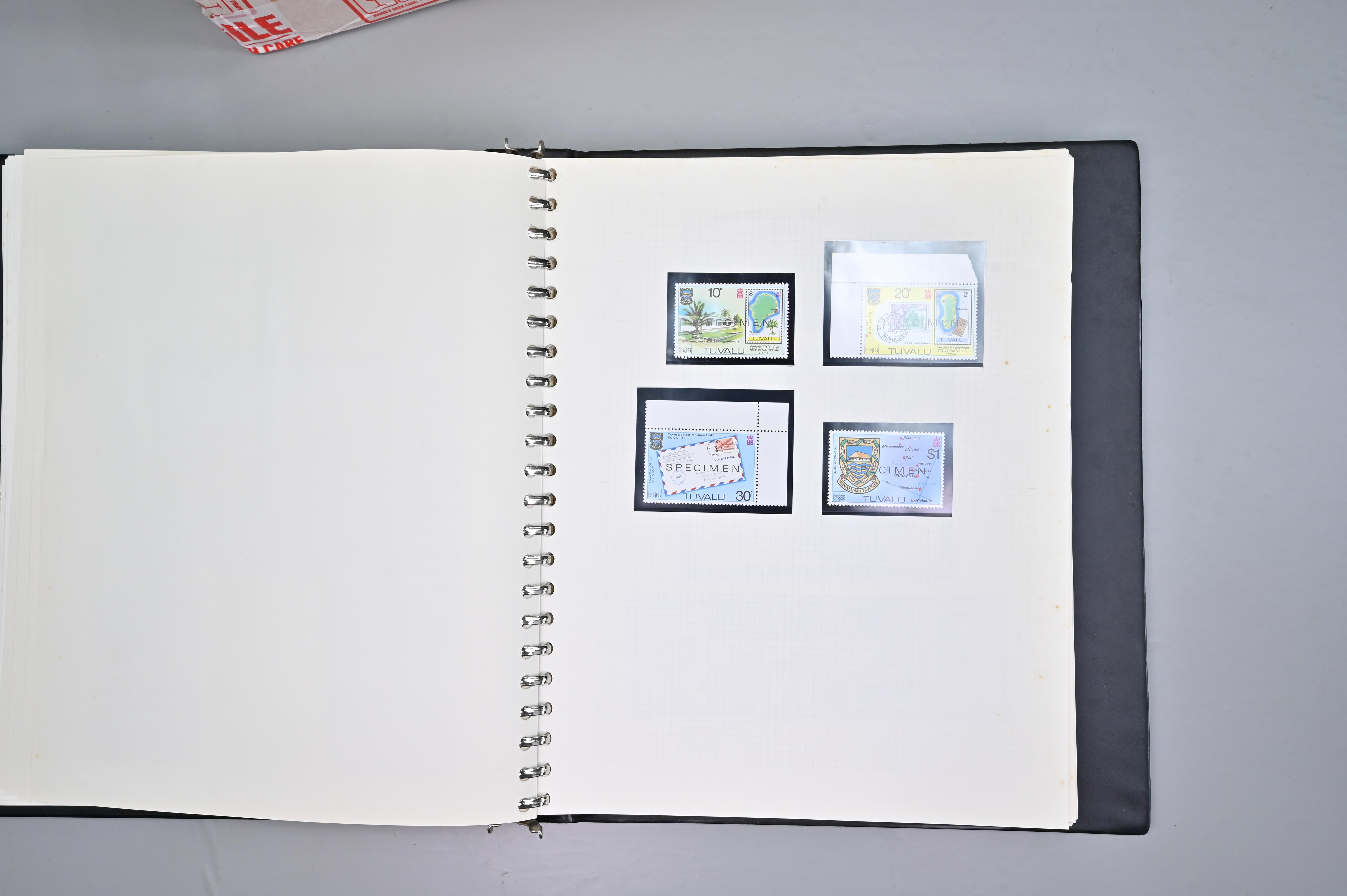 Large album containing Mint MNH stamps in sets from: Nevis (Inc Officials, high values, Overprints), St Christopher Nevis & Angulia (Inc Officials), Isle of Man, Norfolk Island, Pitcairn Islands, Kiribati (Inc Specimens, O.K.G.S), British Antarctic Territory, Tuvalu (Inc Specimens, Officials), St. Kitts (inc Officials, Specimens). Many sets include watermark variations, miniature sheets. All stamps are in pristine condition. Overall superb collection.
