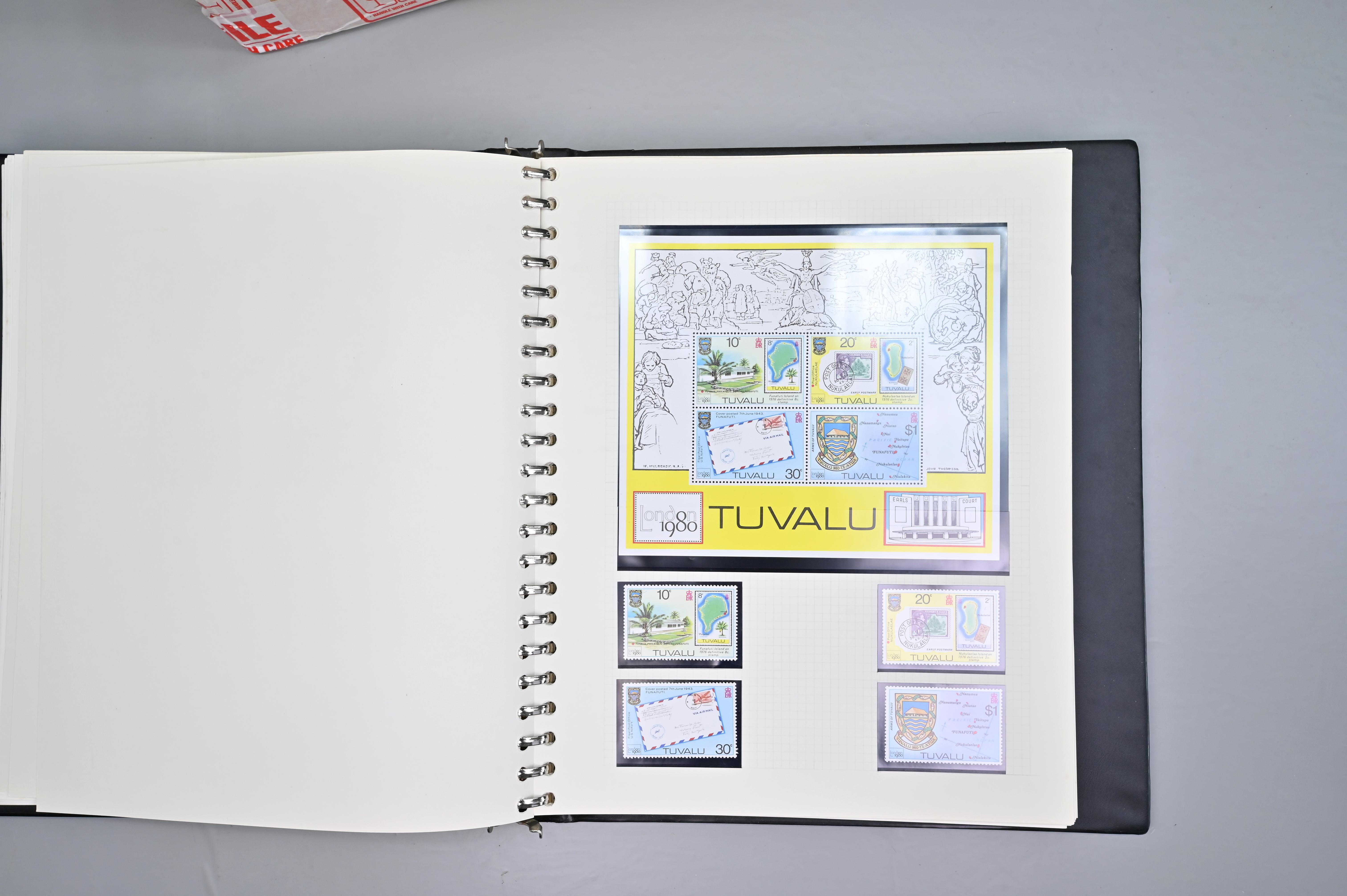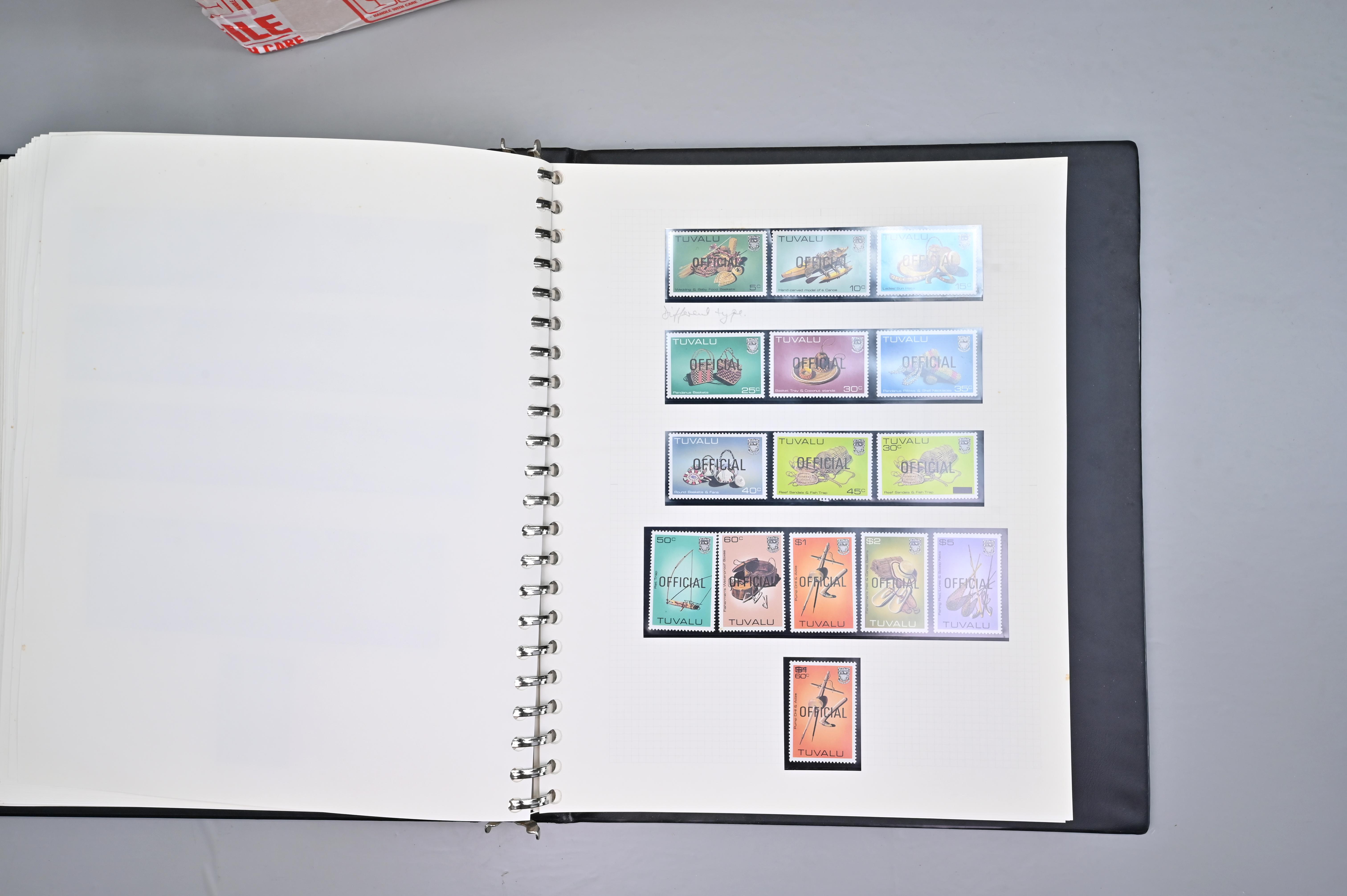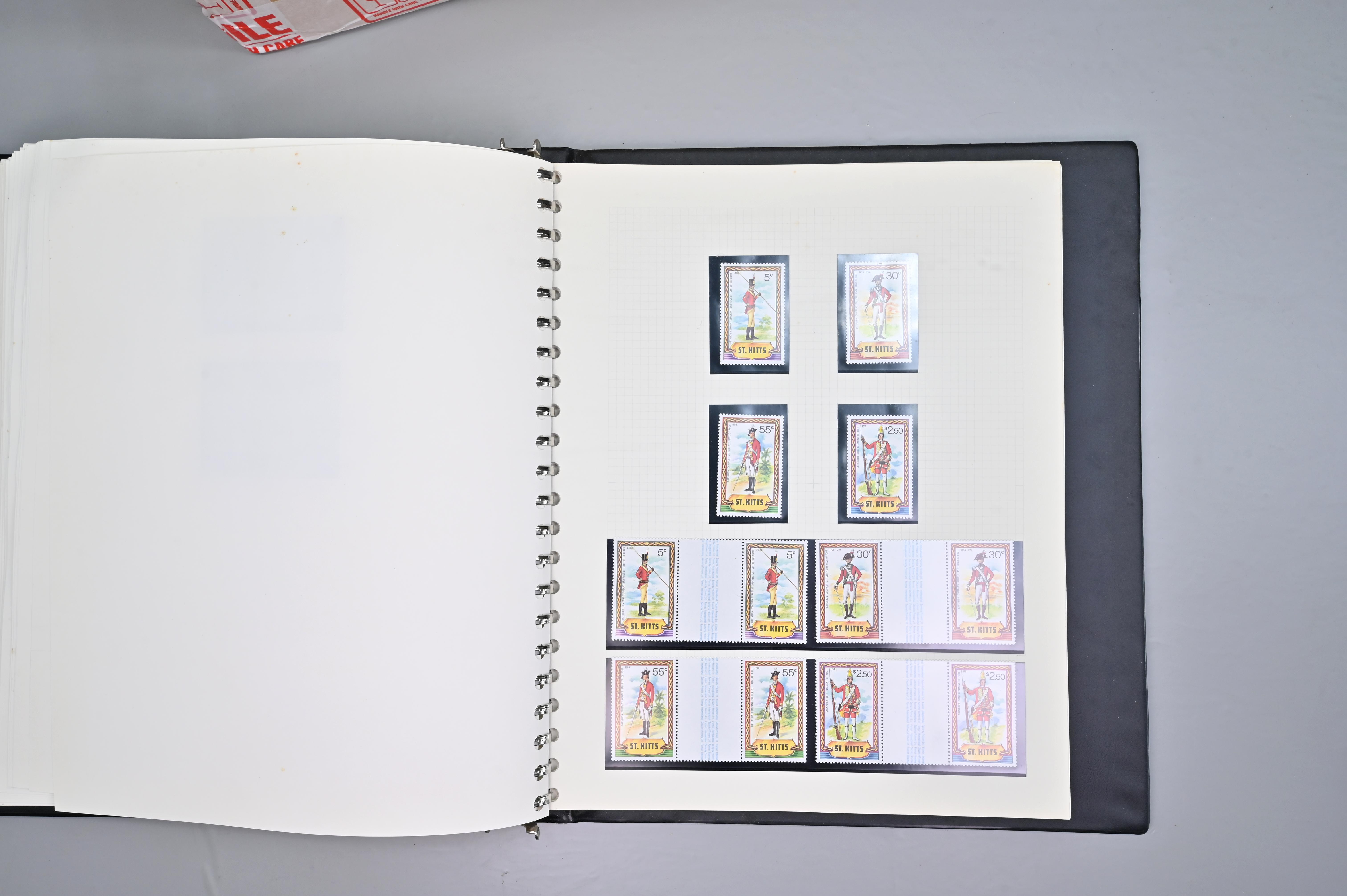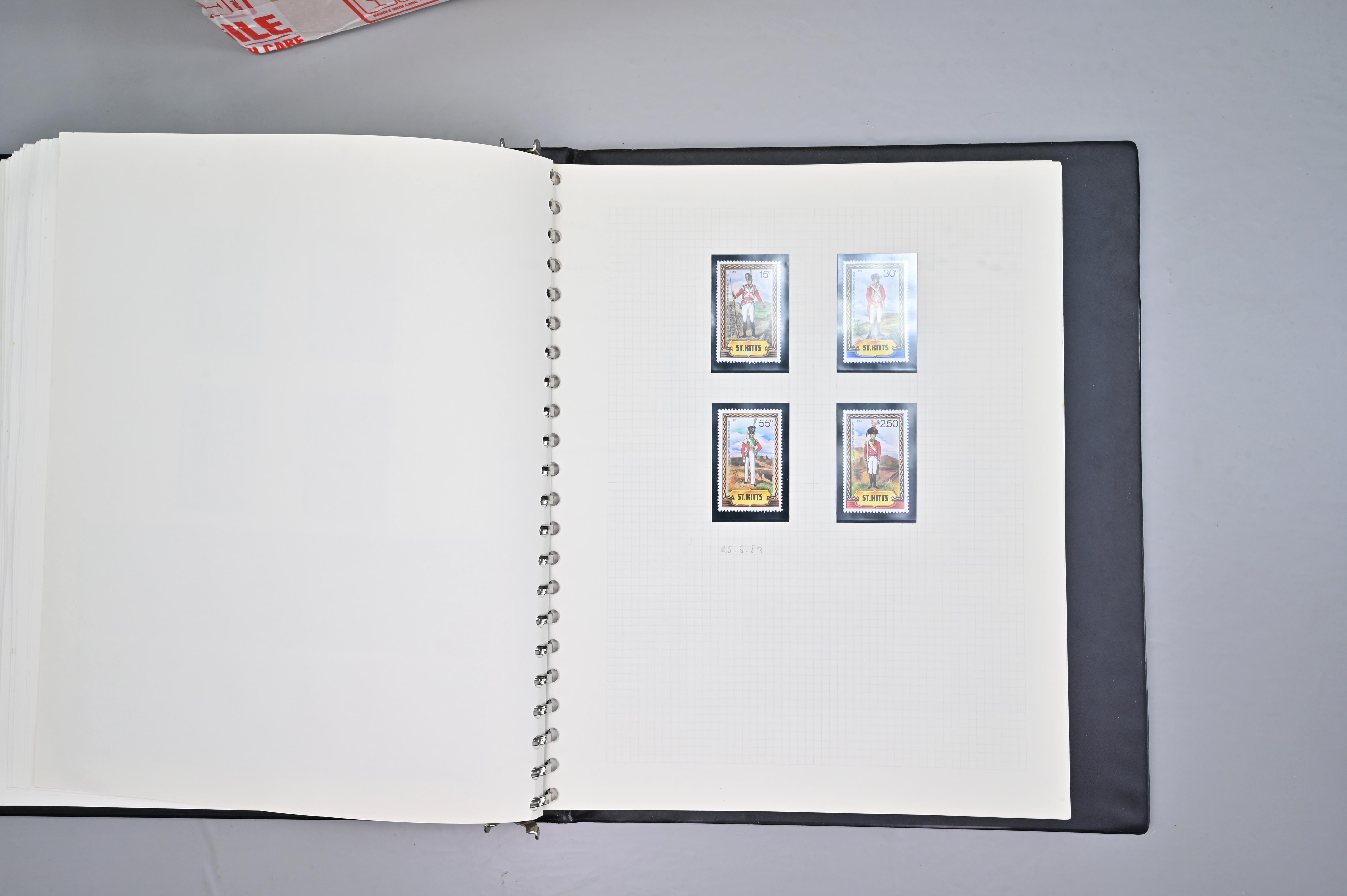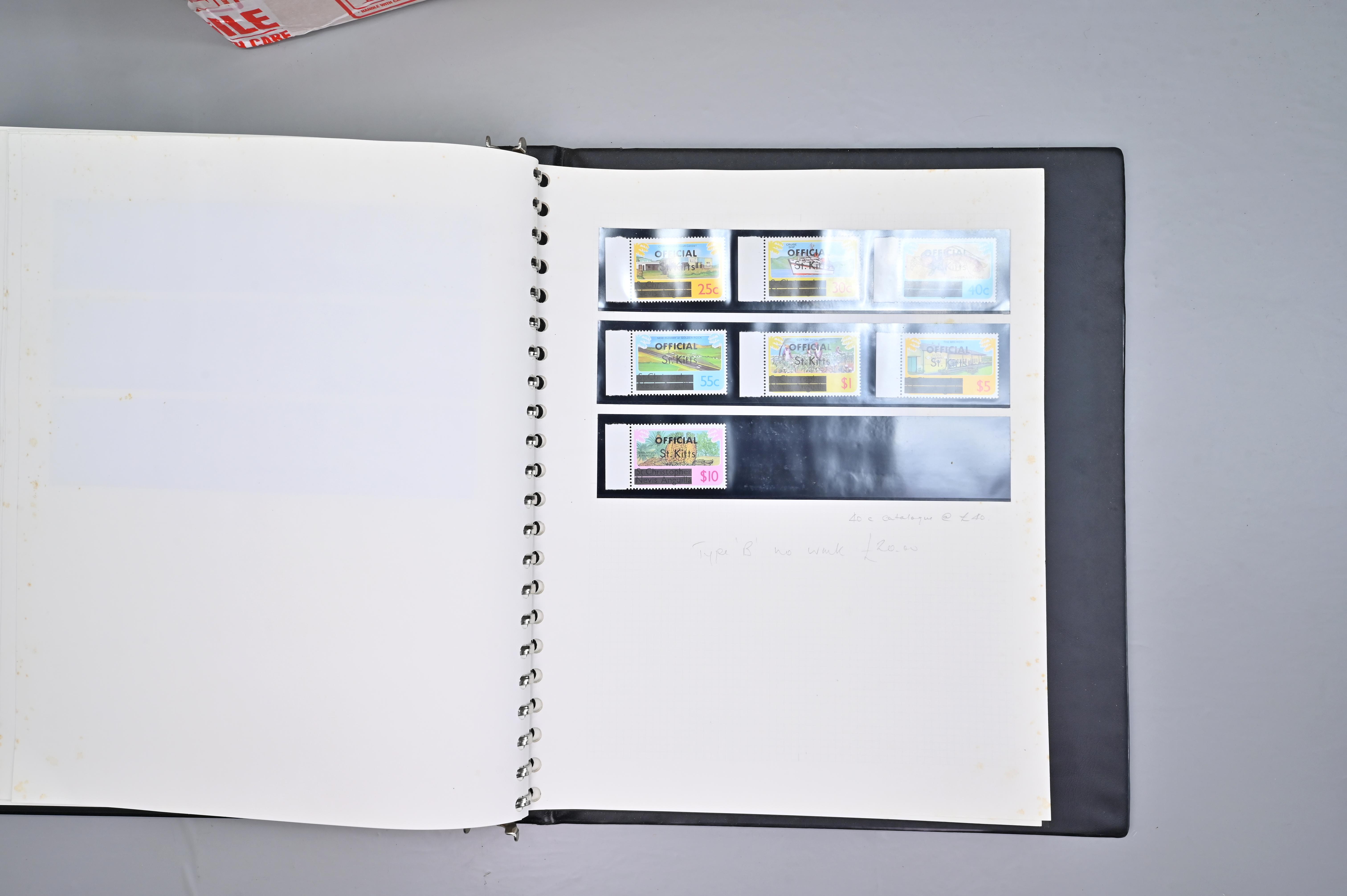 Large album containing Mint MNH stamps in sets from: Nevis (Inc Officials, high values, Overprints), St Christopher Nevis & Angulia (Inc Officials), Isle of Man, Norfolk Island, Pitcairn Islands, Kiribati (Inc Specimens, O.K.G.S), British Antarctic Territory, Tuvalu (Inc Specimens, Officials), St. Kitts (inc Officials, Specimens). Many sets include watermark variations, miniature sheets. All stamps are in pristine condition. Overall superb collection.