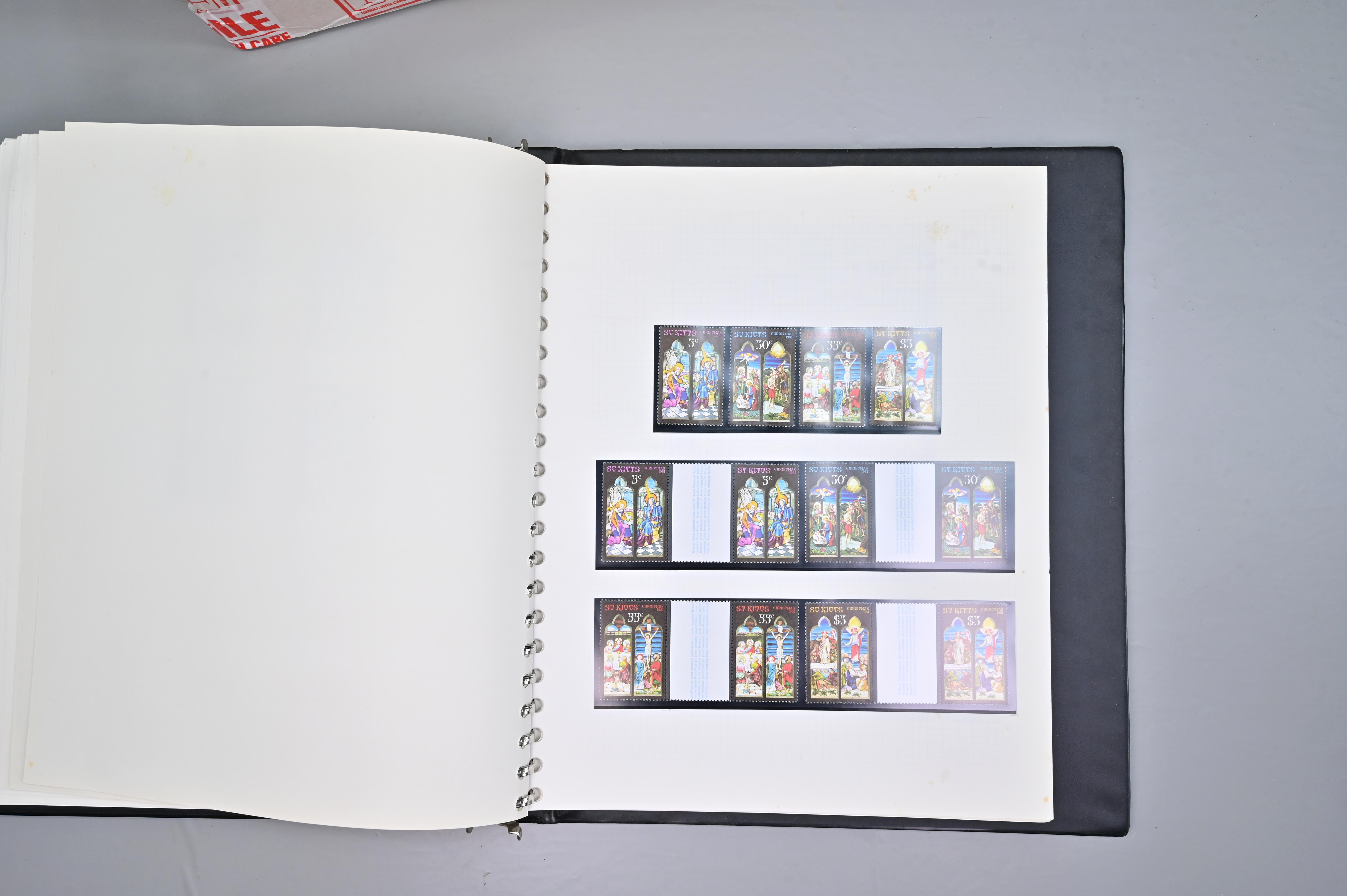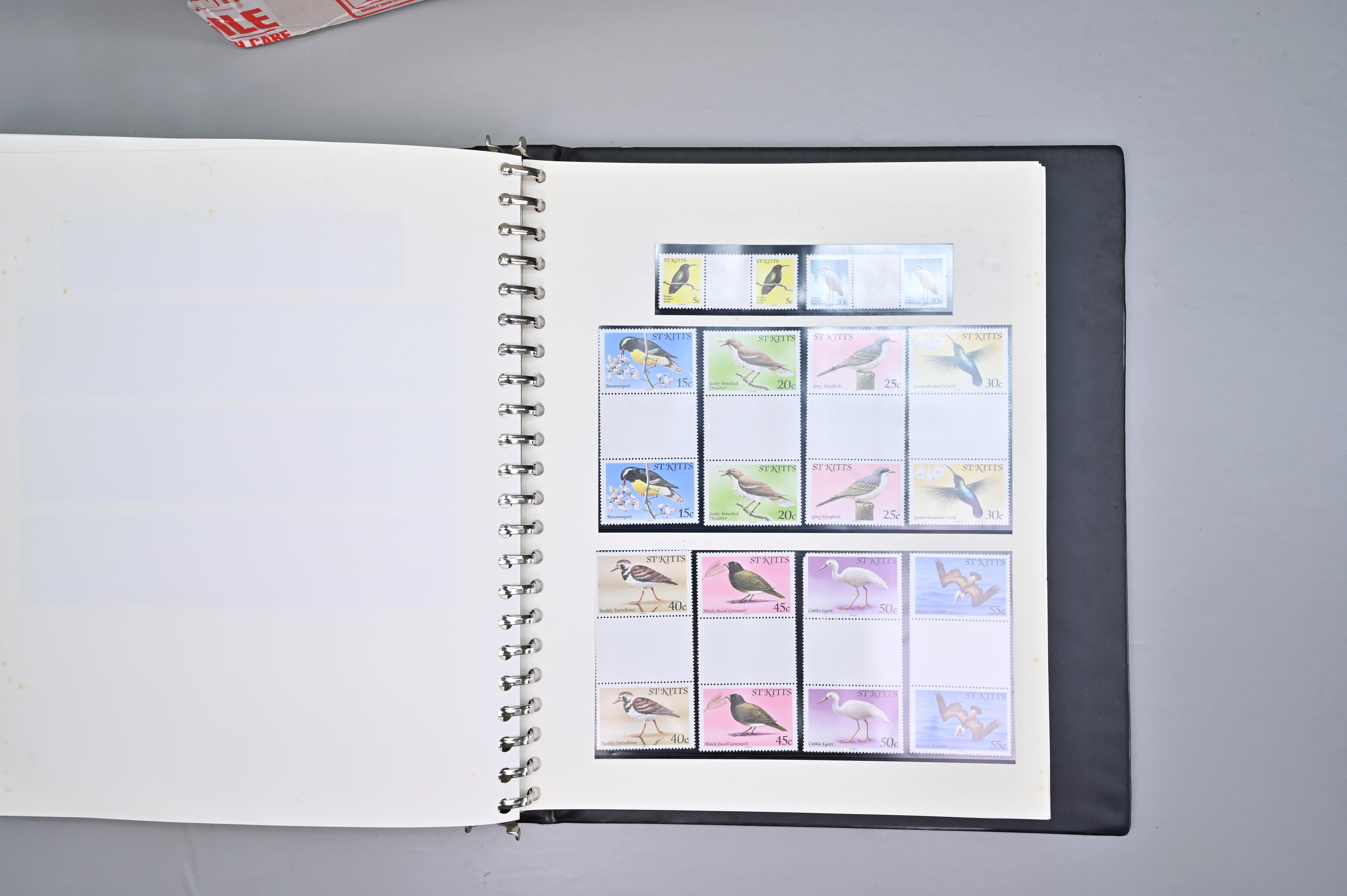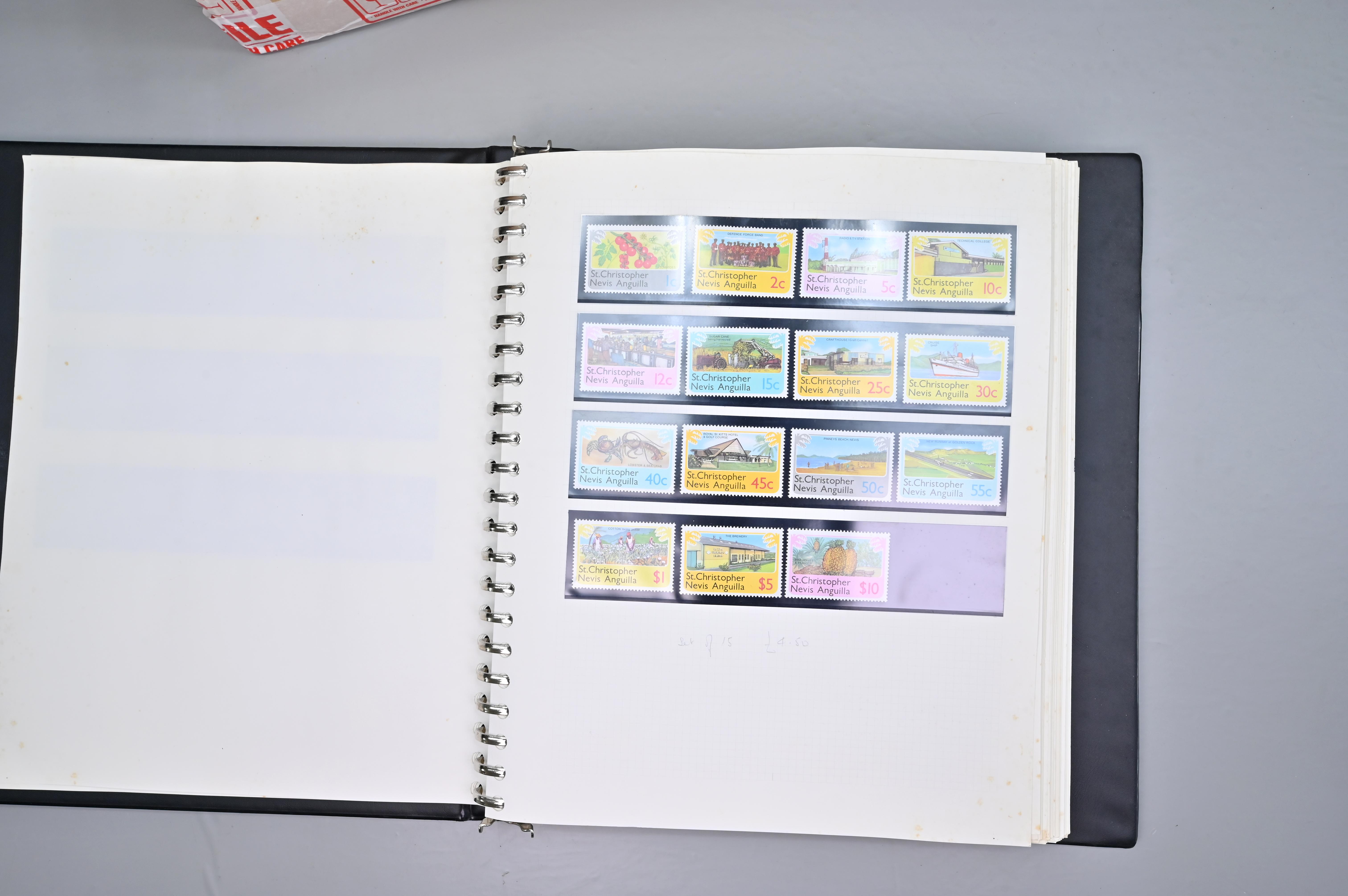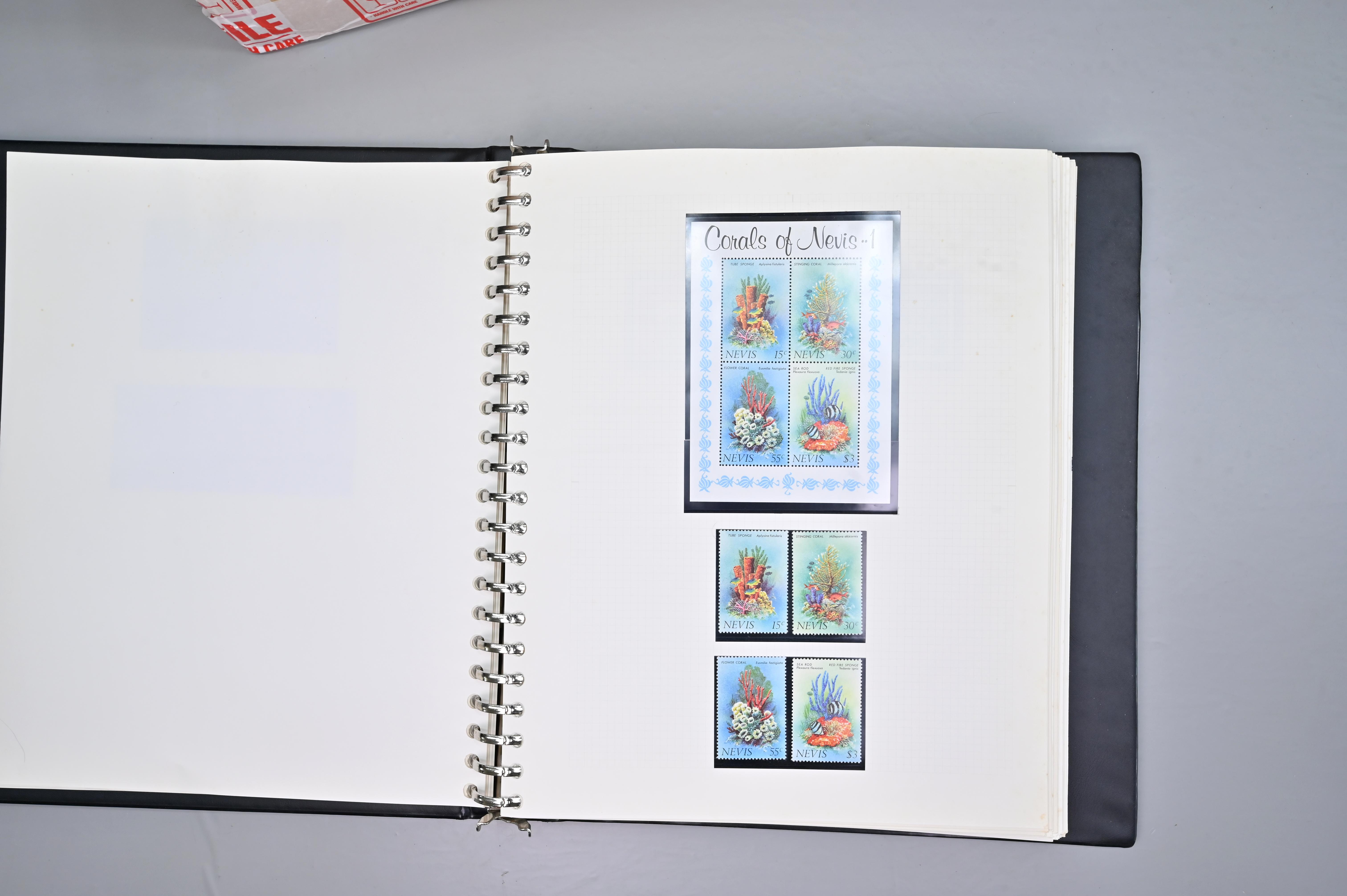 Large album containing Mint MNH stamps in sets from: Nevis (Inc Officials, high values, Overprints), St Christopher Nevis & Angulia (Inc Officials), Isle of Man, Norfolk Island, Pitcairn Islands, Kiribati (Inc Specimens, O.K.G.S), British Antarctic Territory, Tuvalu (Inc Specimens, Officials), St. Kitts (inc Officials, Specimens). Many sets include watermark variations, miniature sheets. All stamps are in pristine condition. Overall superb collection.