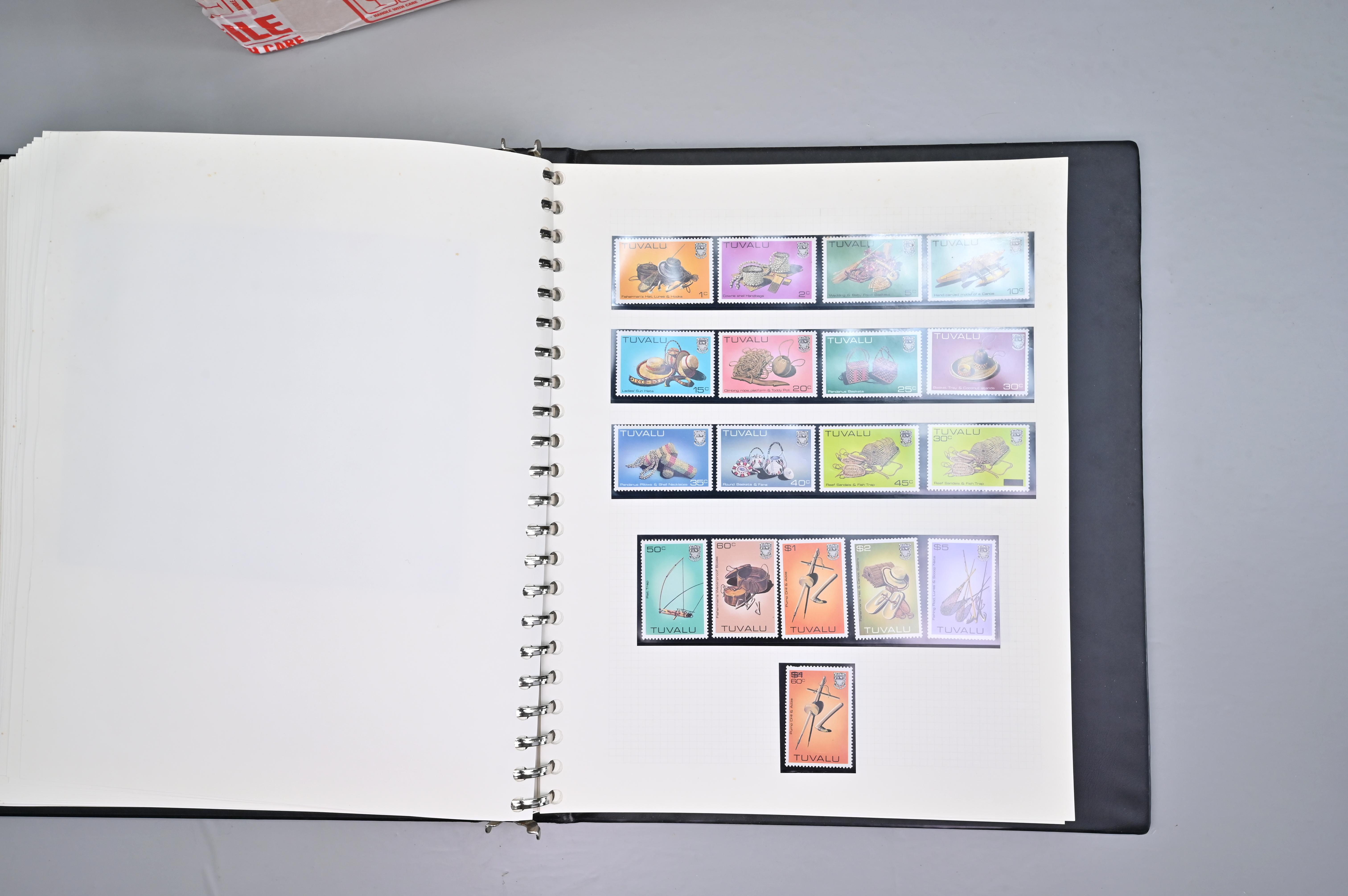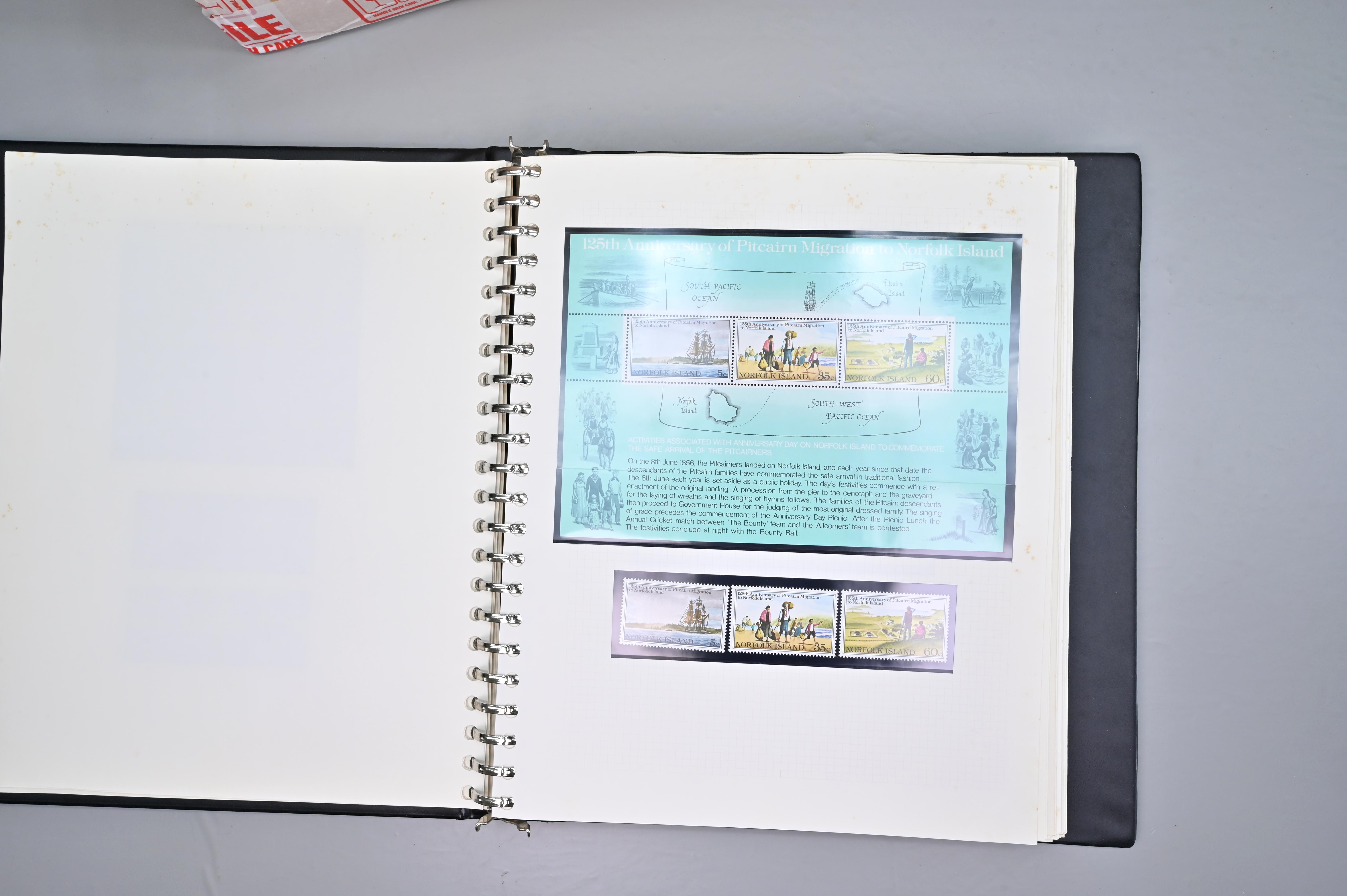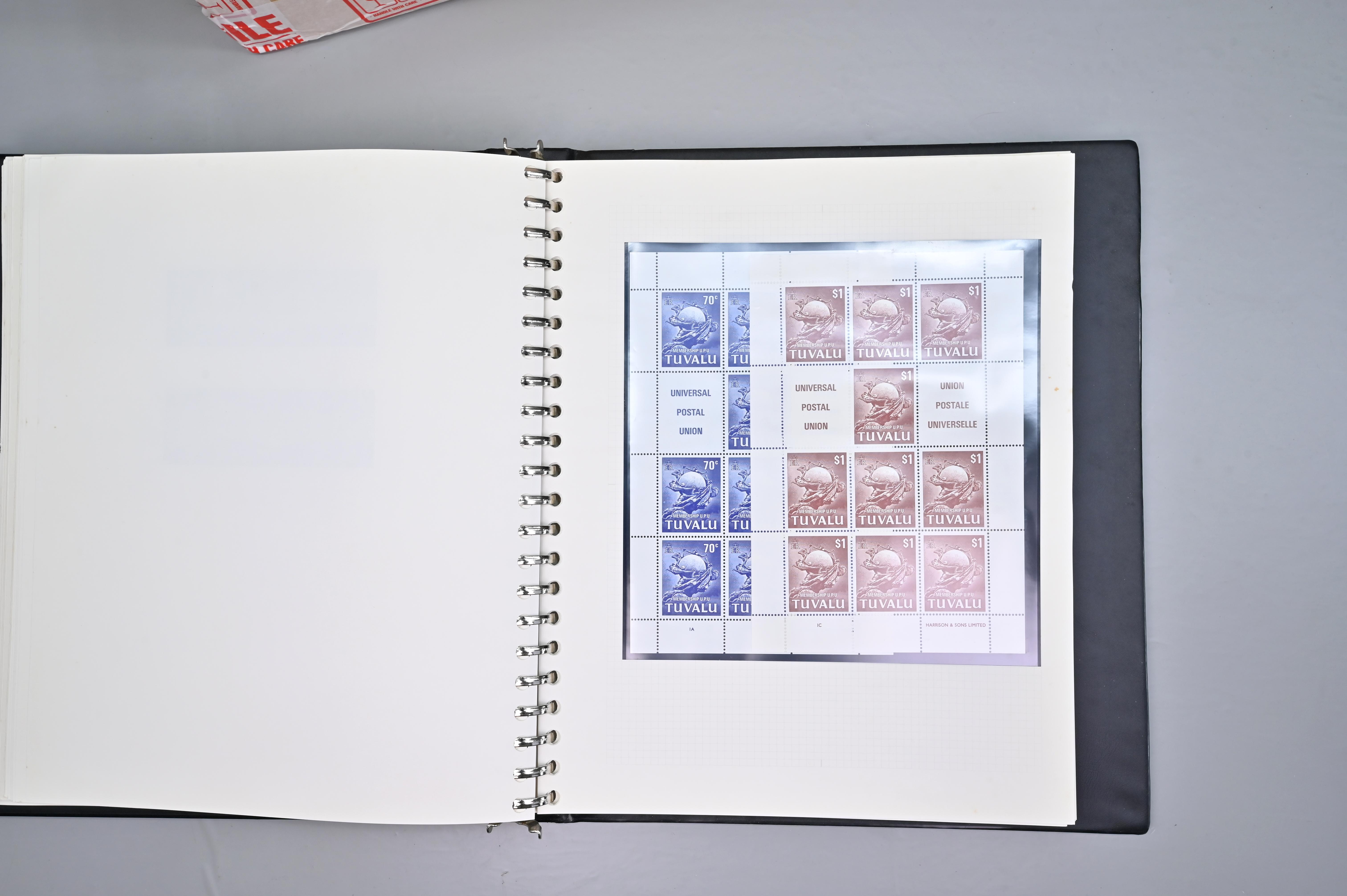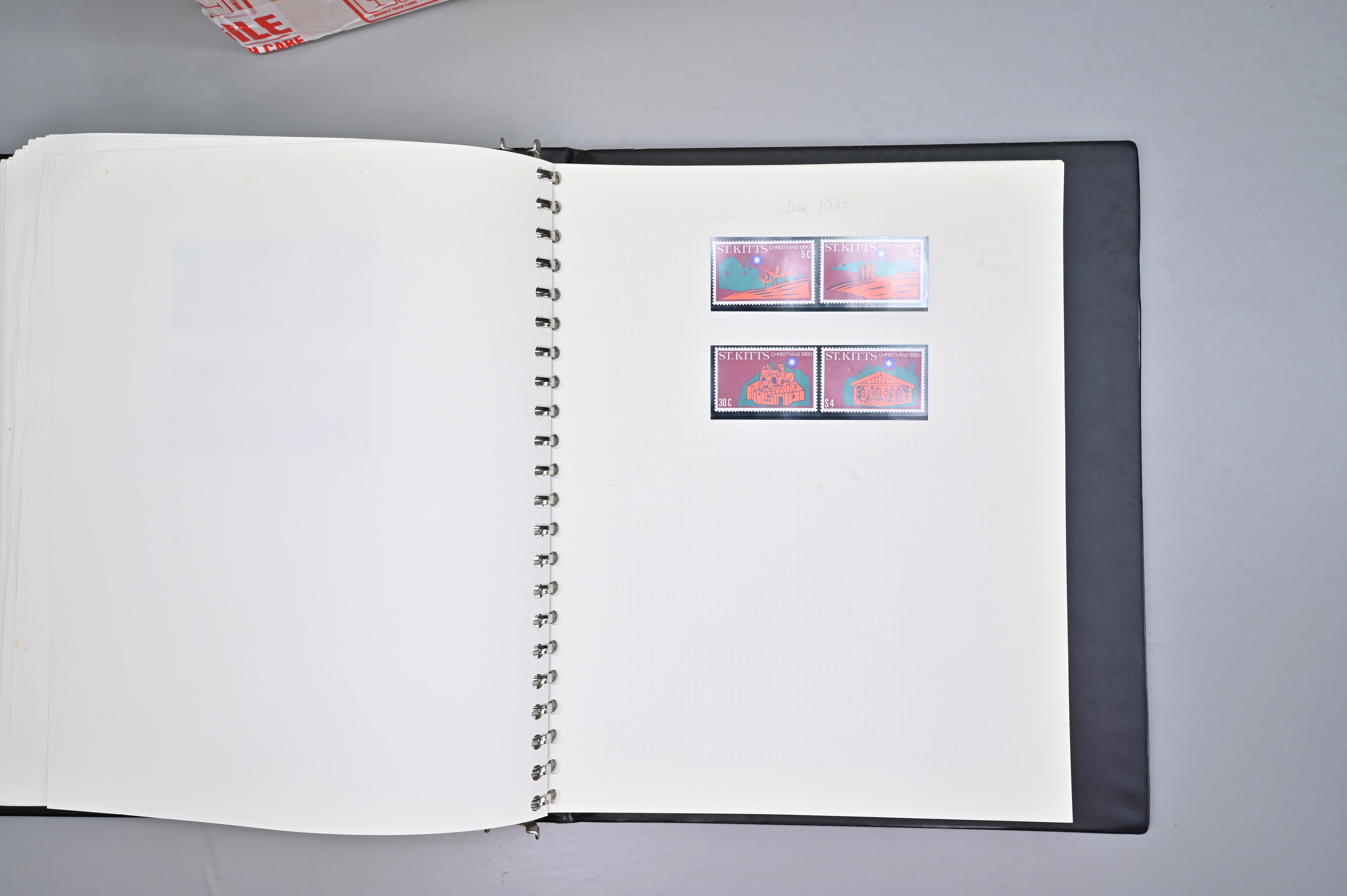 Large album containing Mint MNH stamps in sets from: Nevis (Inc Officials, high values, Overprints), St Christopher Nevis & Angulia (Inc Officials), Isle of Man, Norfolk Island, Pitcairn Islands, Kiribati (Inc Specimens, O.K.G.S), British Antarctic Territory, Tuvalu (Inc Specimens, Officials), St. Kitts (inc Officials, Specimens). Many sets include watermark variations, miniature sheets. All stamps are in pristine condition. Overall superb collection.