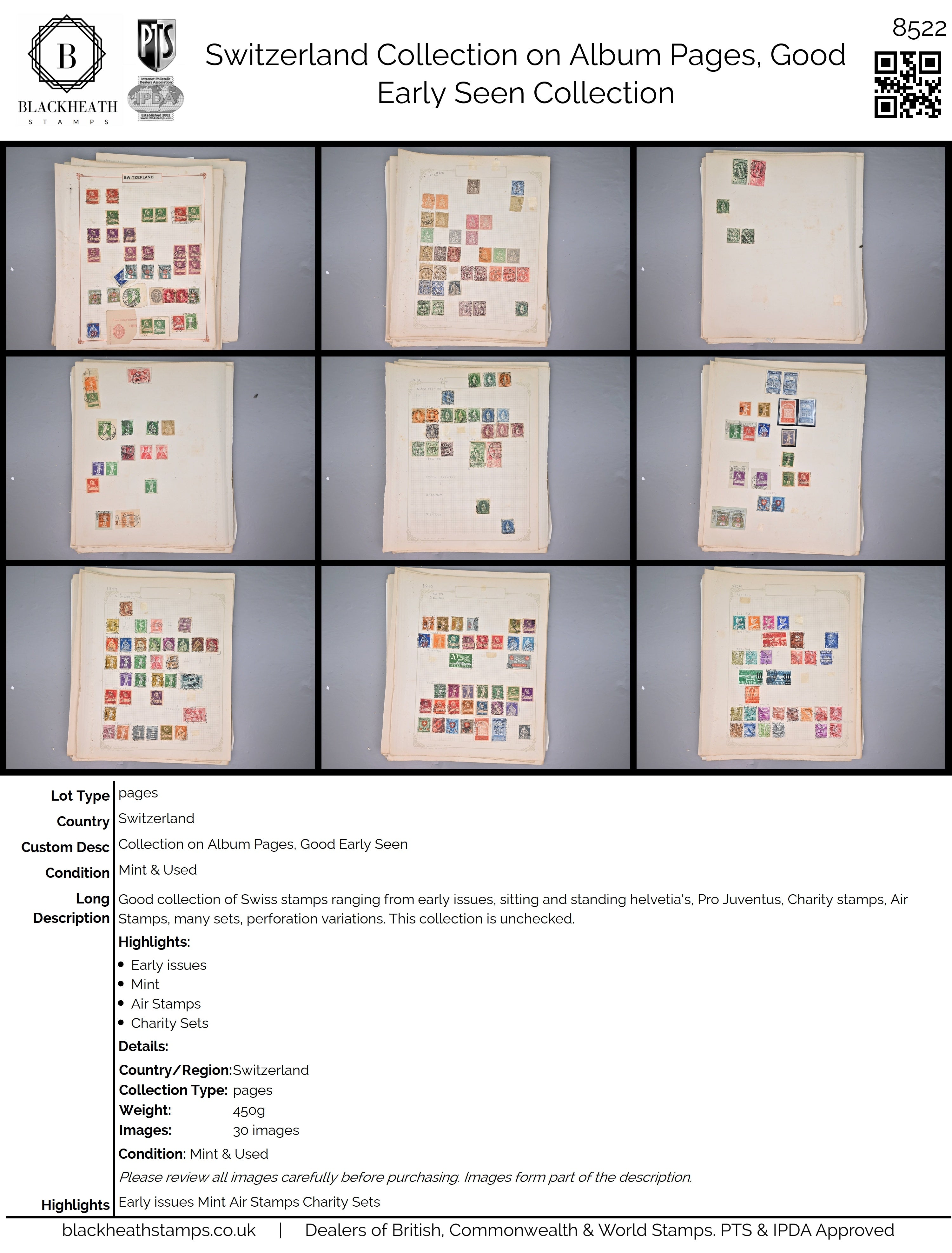 Good collection of Swiss stamps ranging from early issues, sitting and standing helvetia's, Pro Juventus, Charity stamps, Air Stamps, many sets, perforation variations. This collection is unchecked. |