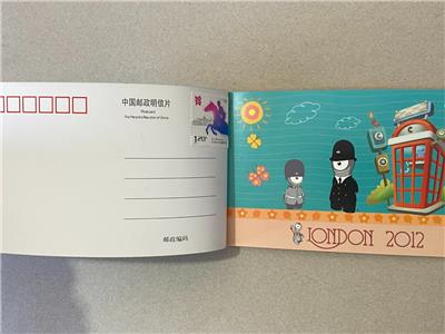 CHINA NATIONAL PHILATELIC CORPORATION/LONDON 2012 PACK CONTAINING 4 POSTCARDS EACH WITH A CHINESE STAMP AFFIXED, SOME STICKERS, AND A MINT GB 1st OLYMPICS COMMEMORATIVE STAMP.