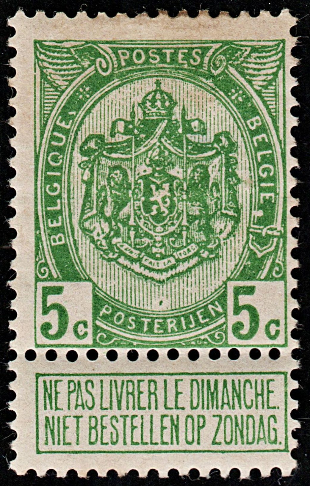 3713 BELGIUM: 5c Green 1887. SG108 Sc84 Mi80. Small gum faults. MM Mint. c£20