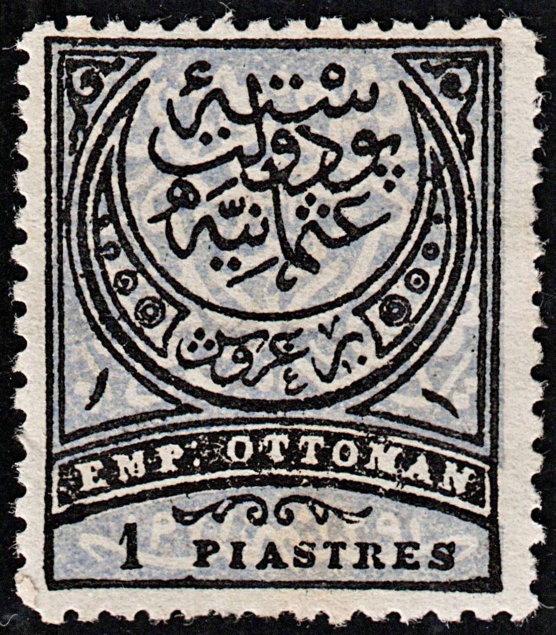 3714 TURKEY 1Piastre Black,Blue grey 1880. SG92 Sc62a Mi40 MM Mint. c£95