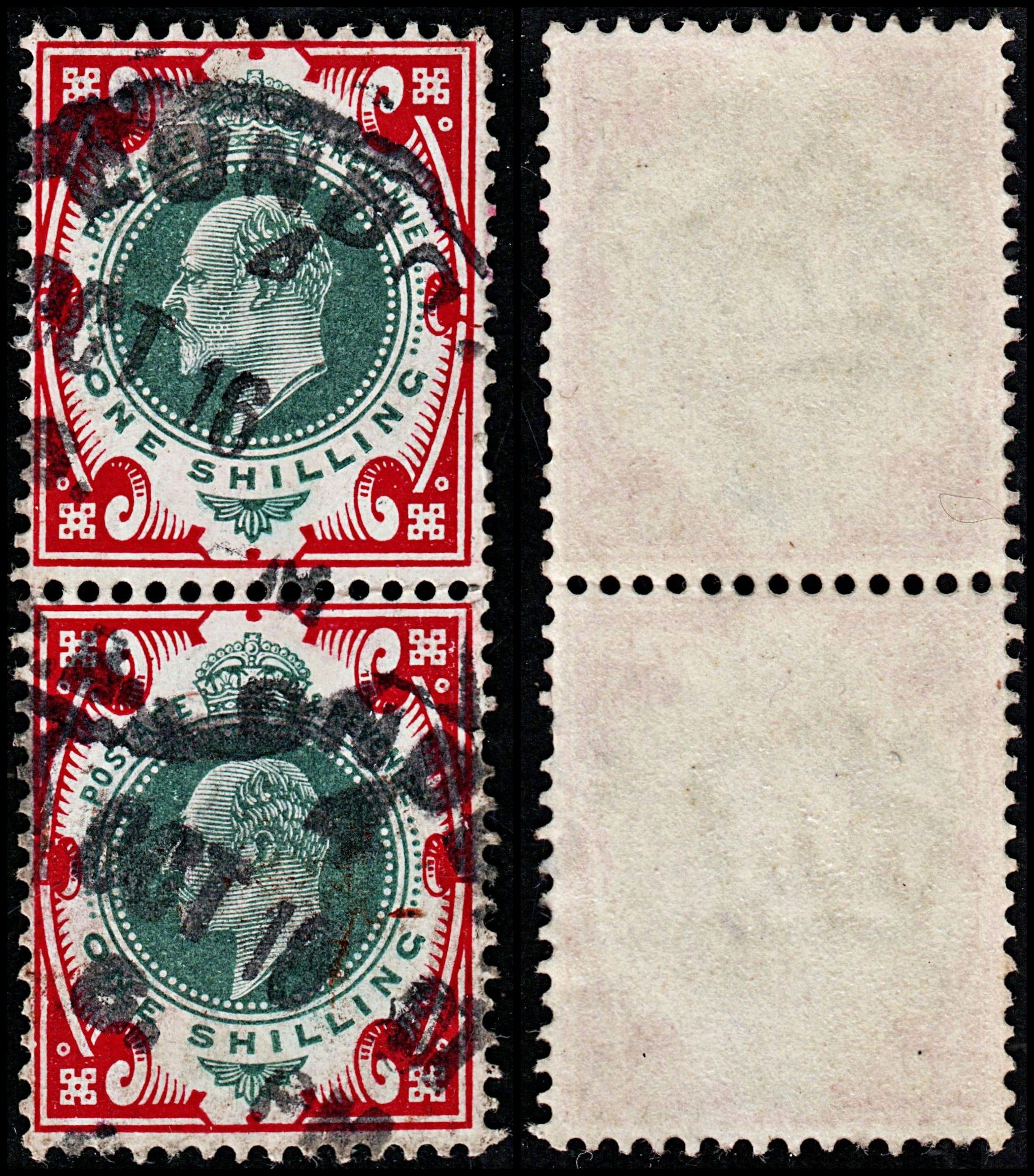3737 GB: 1s Carmine,Dull green 1905. SG257a Sc--- Mi114Ixa. Vertical Pair. Fine. c£80
