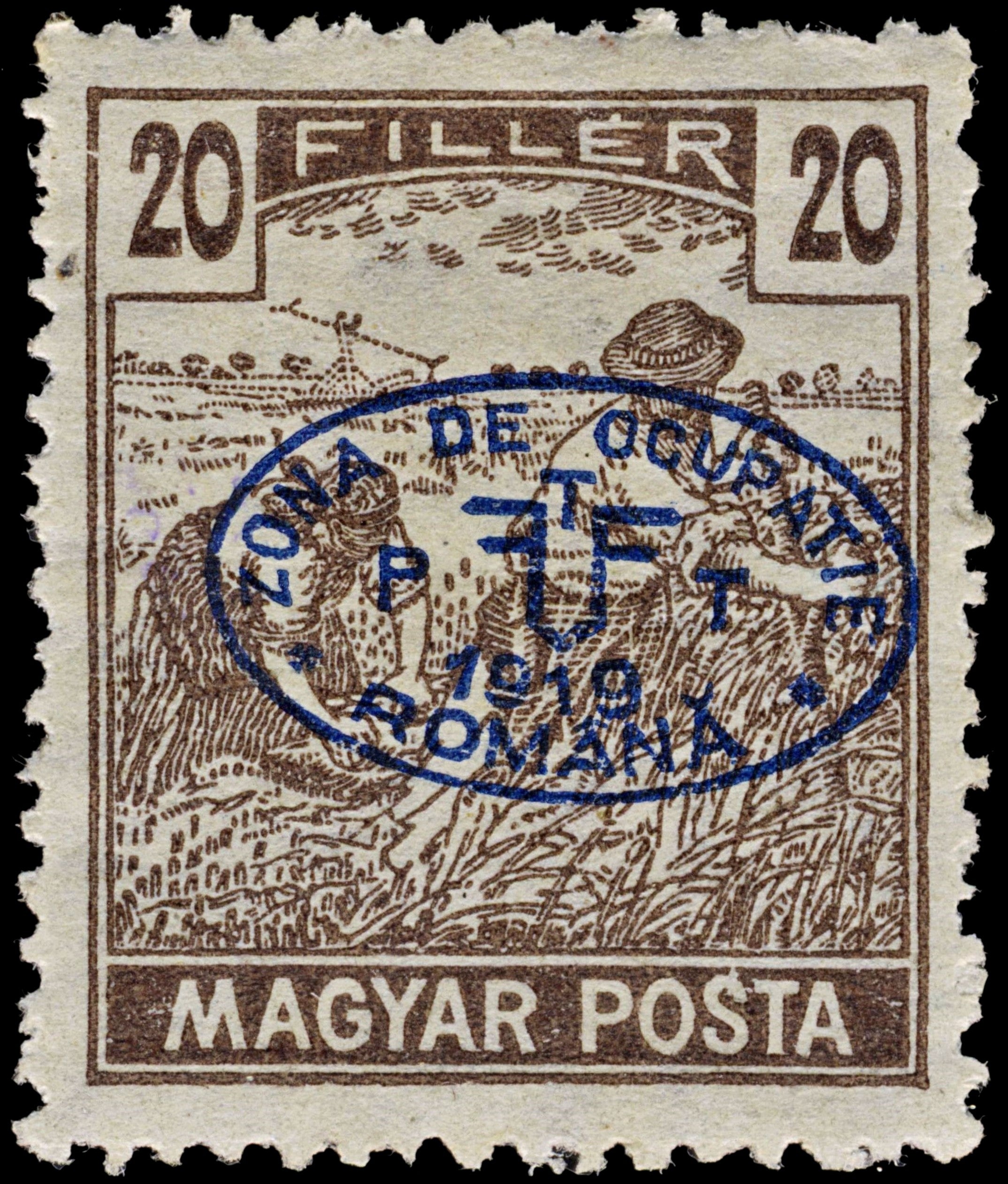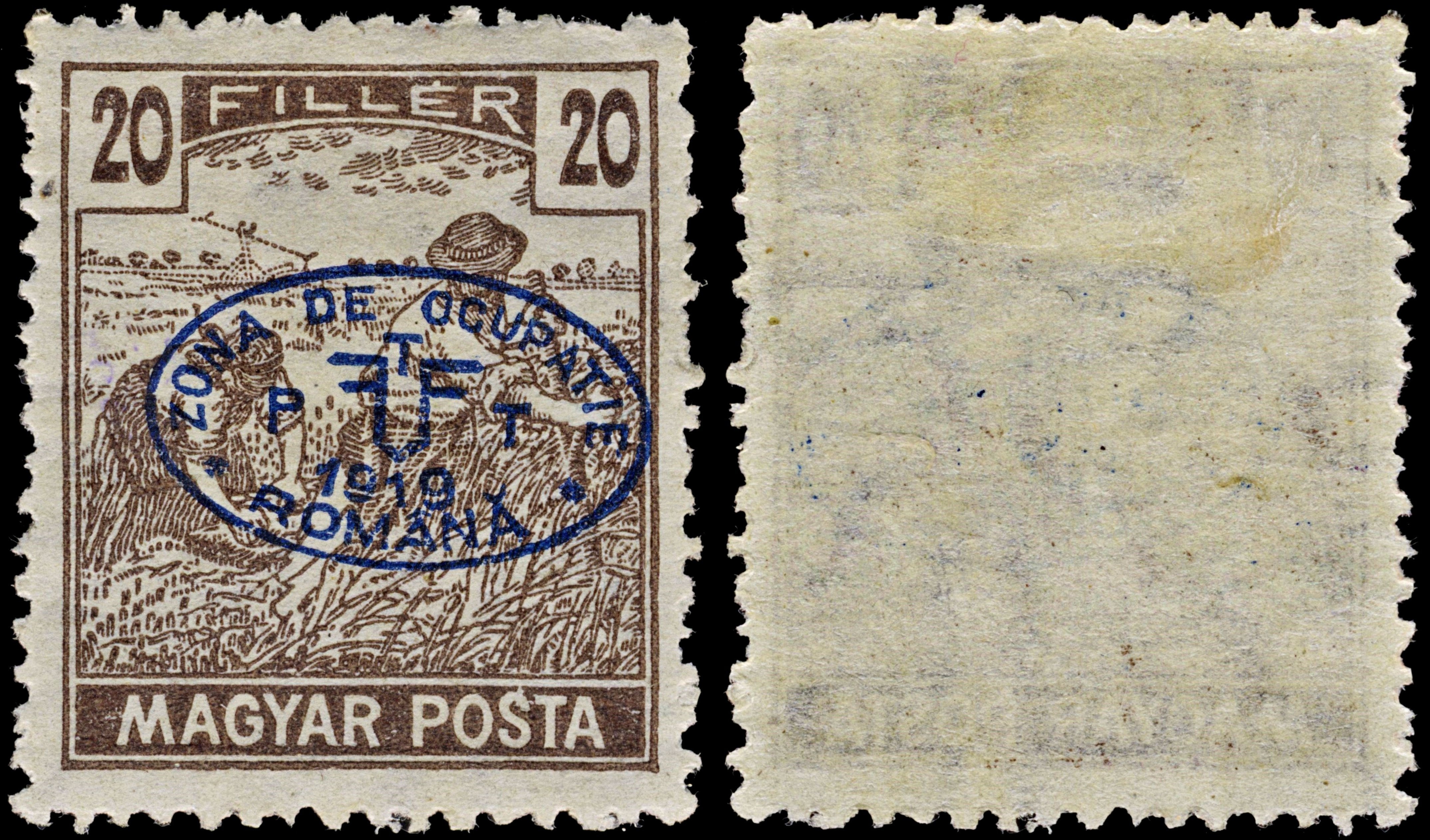 3855 Romanian Occ. of Debrecen Mi20, Sc# 2N11 SG16 1919 20f Brown. Blue Overprint. c£125