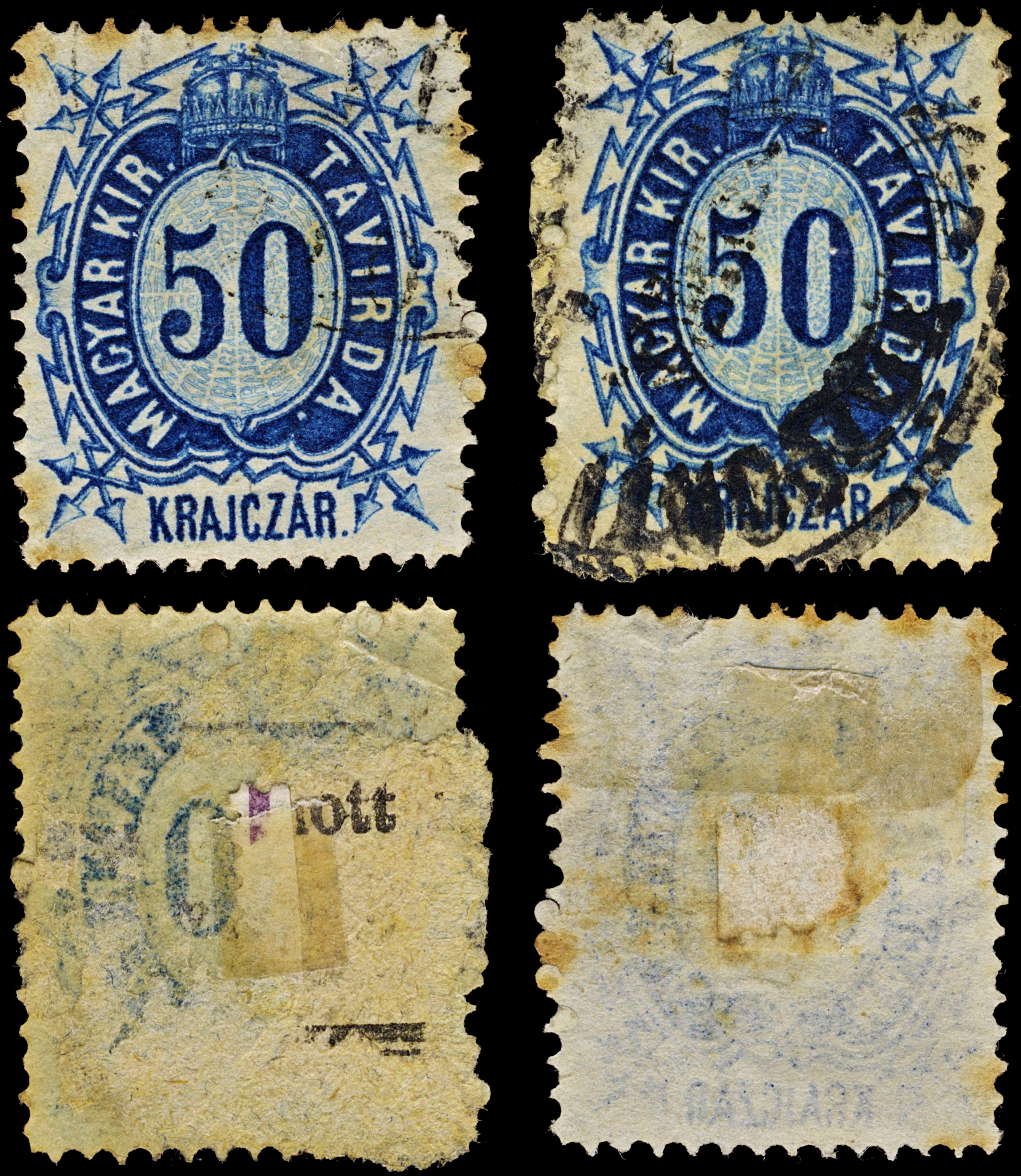 3860 Hungary Magyar Kir. Taviarda. Krajczar. Telegraph Stamp. 50 Blue.