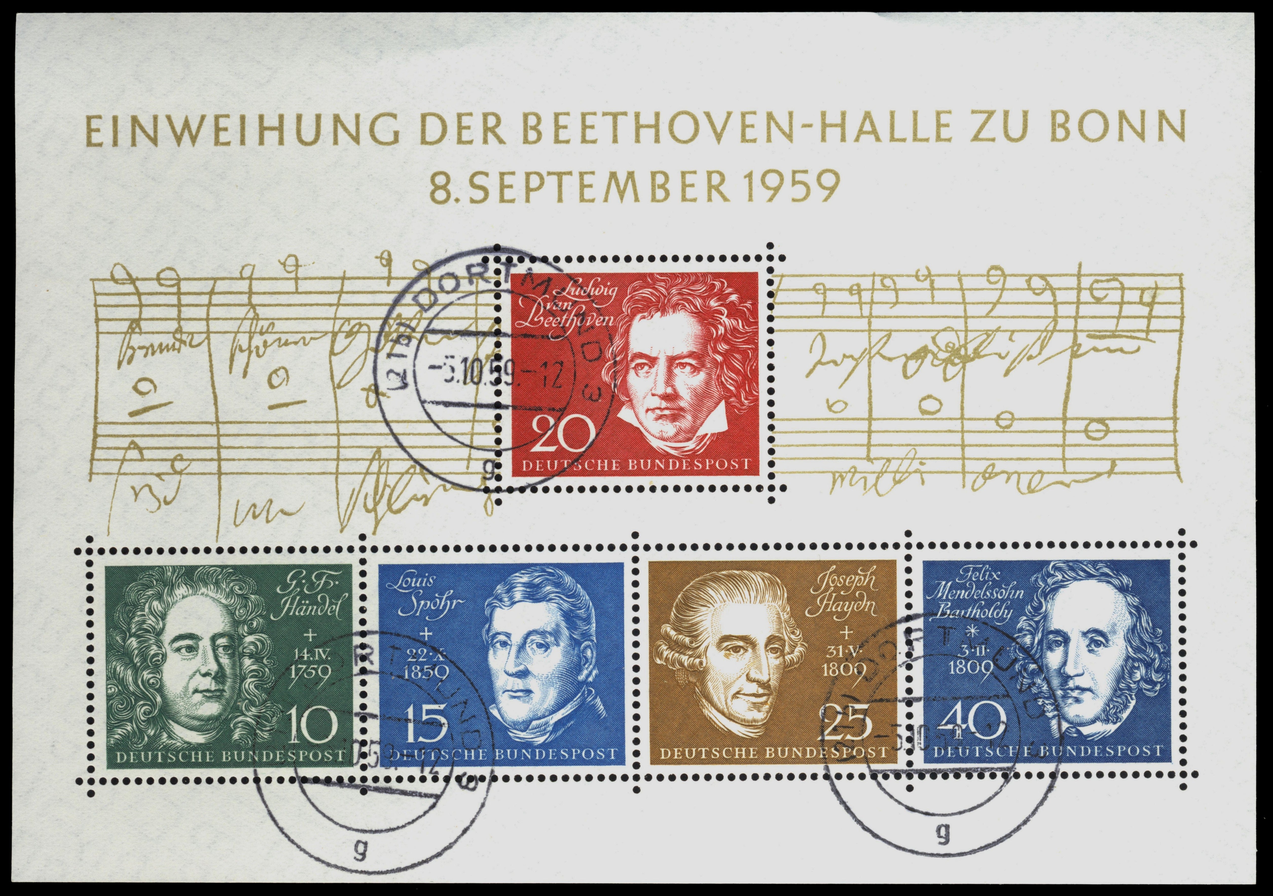 3867: Germany: Inauguration of Beethoven Hall, Bonn 1959. SG MS1233a Mi BL2 Sc# 804. c£70