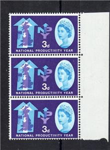 HAS A PRINTING VARIETY TO THE MIDDLE STAMP (NOTE THE QUEEN'S FACE).