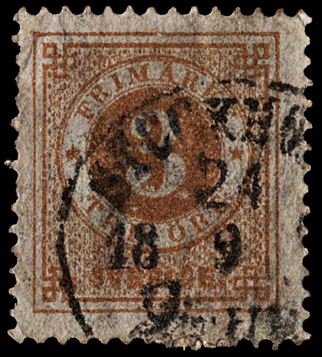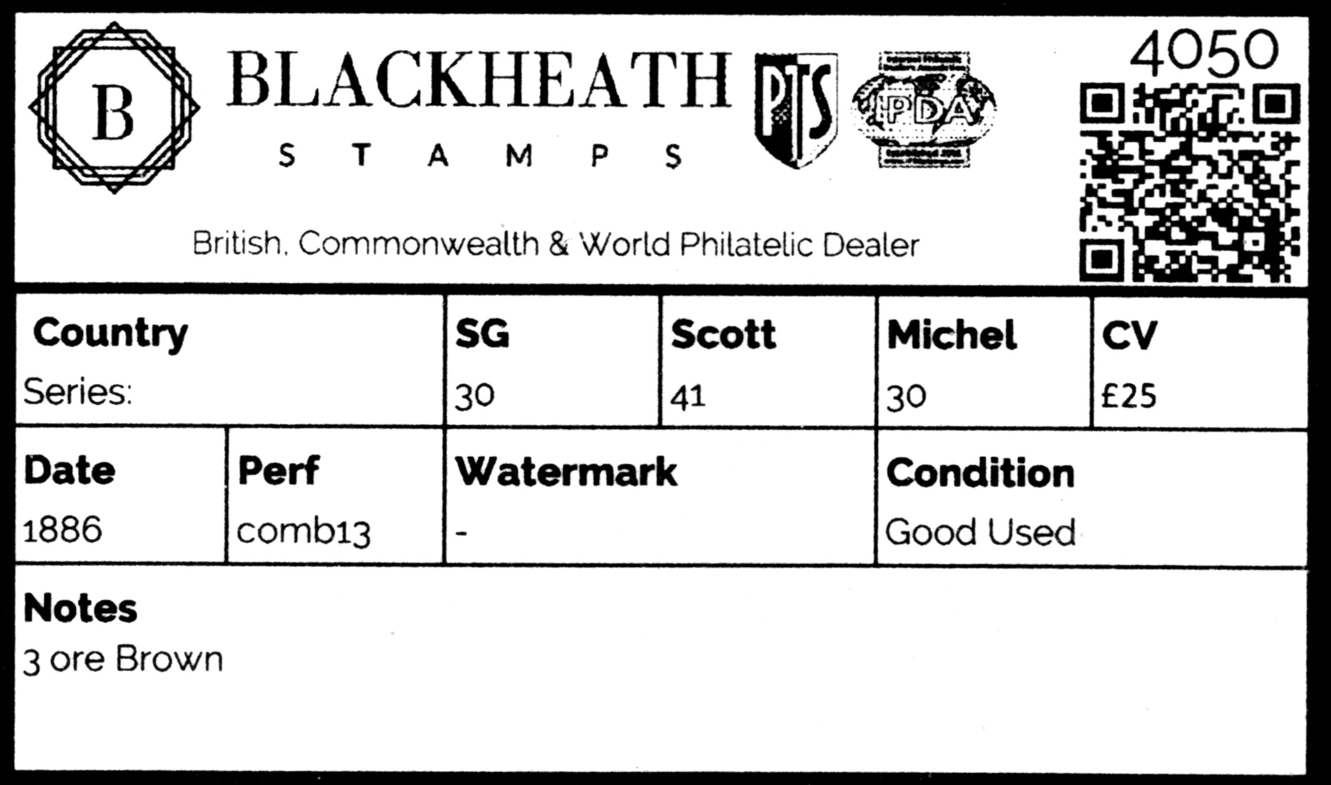 4050: Series: SG30 3 ore Brown 1886. Sc#41 Mi30 Good Uséd. C£25