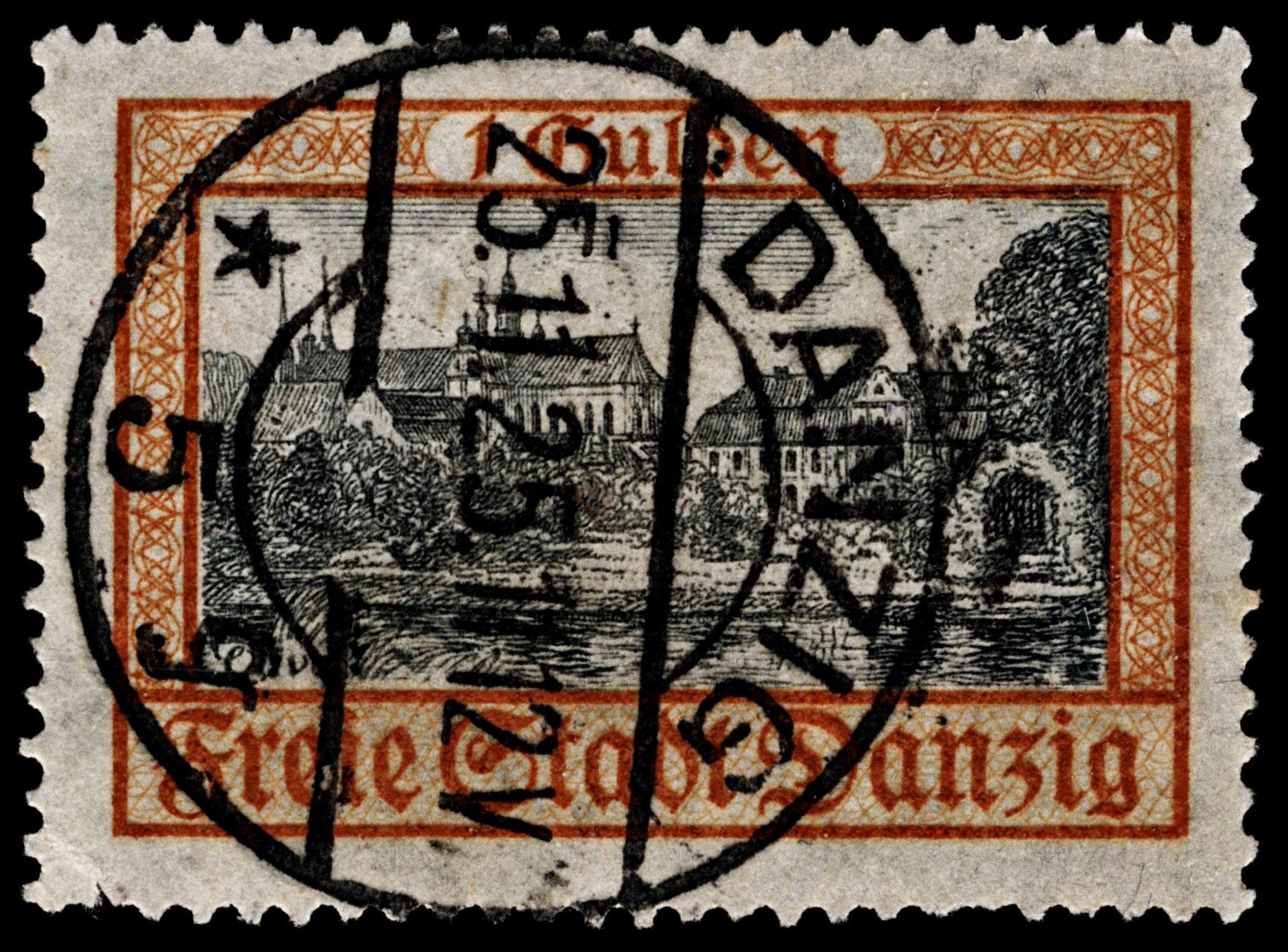 4084: Danzig SG205 1 Gulden Orange & Black. 1925. Sc#194 Mi212a Fine Uséd. C£190