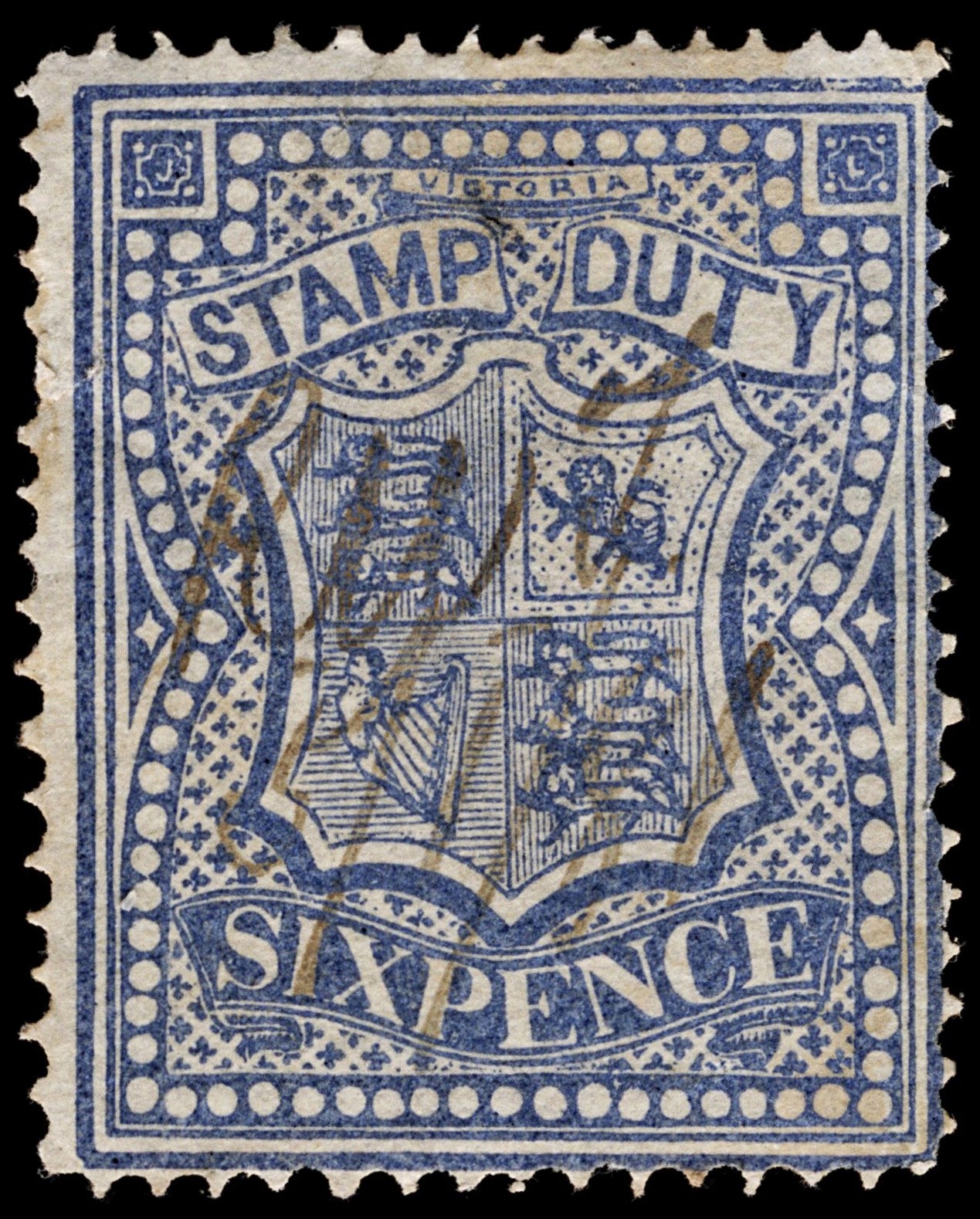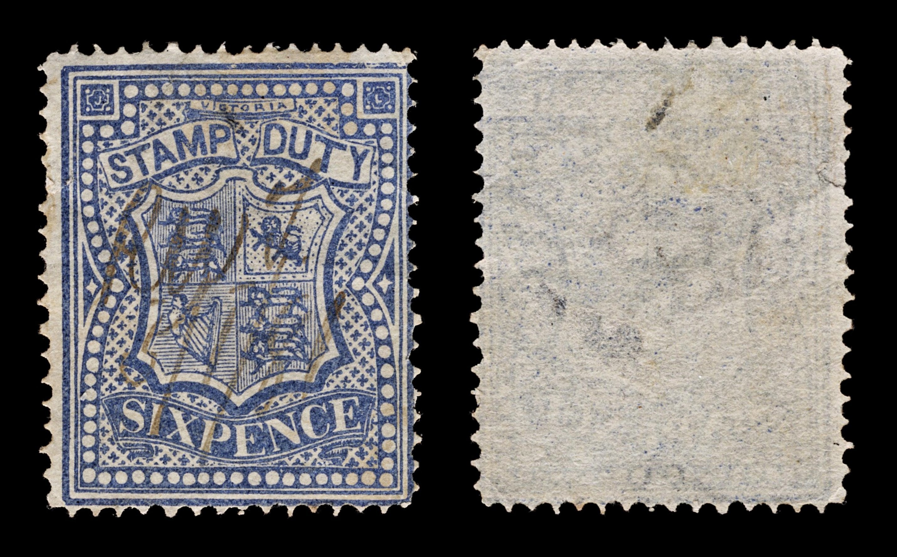 4233: Victoria SG255a 6d Blue. Stamp Duty. 1879. Sc# AR33 Mi ST16 Fine Uséd. C£50