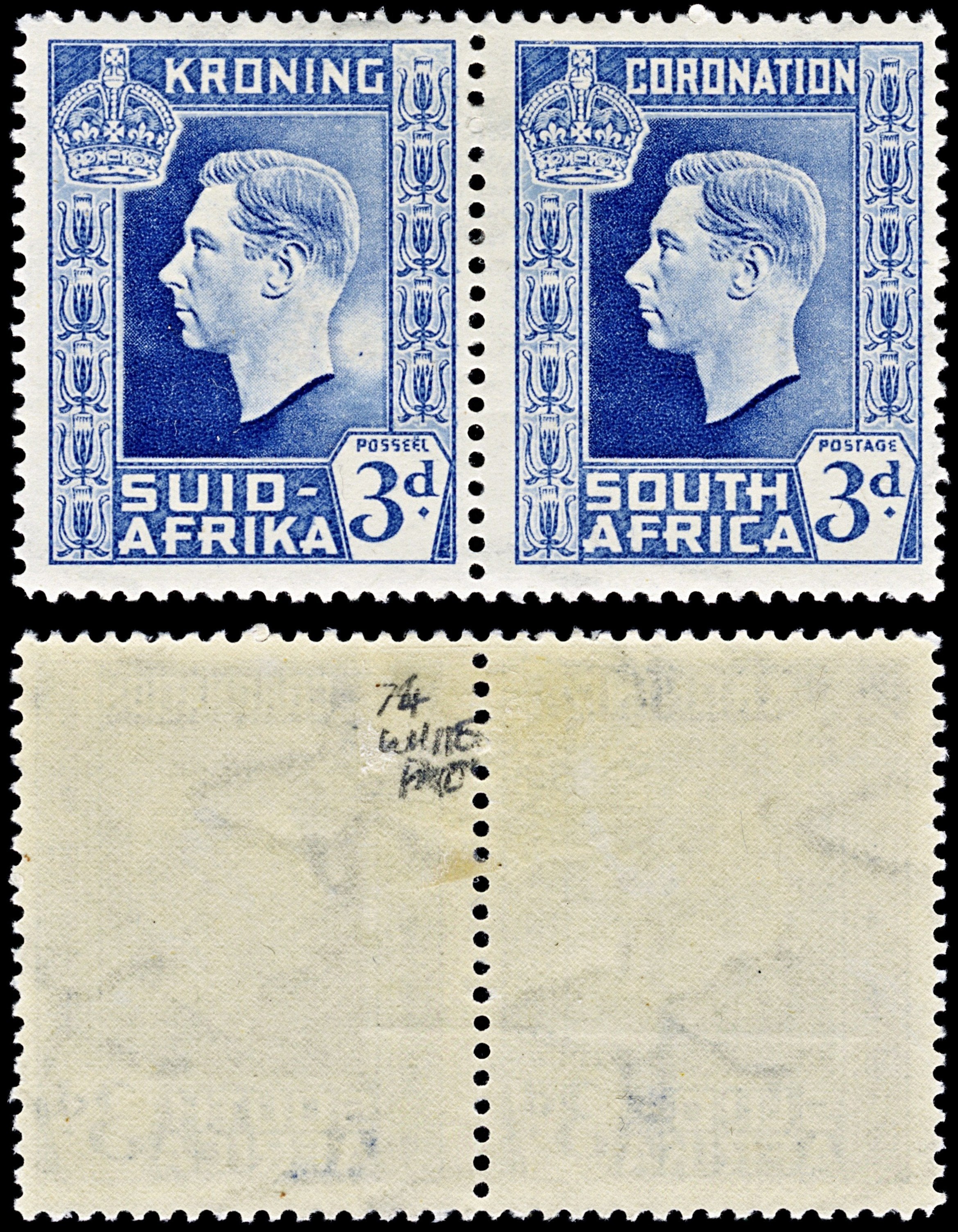 4734: South Africa SG74 3d Ultramarine. Large White Patch. 1937. Sc#77 Mi115-116 MM Mint. C£140