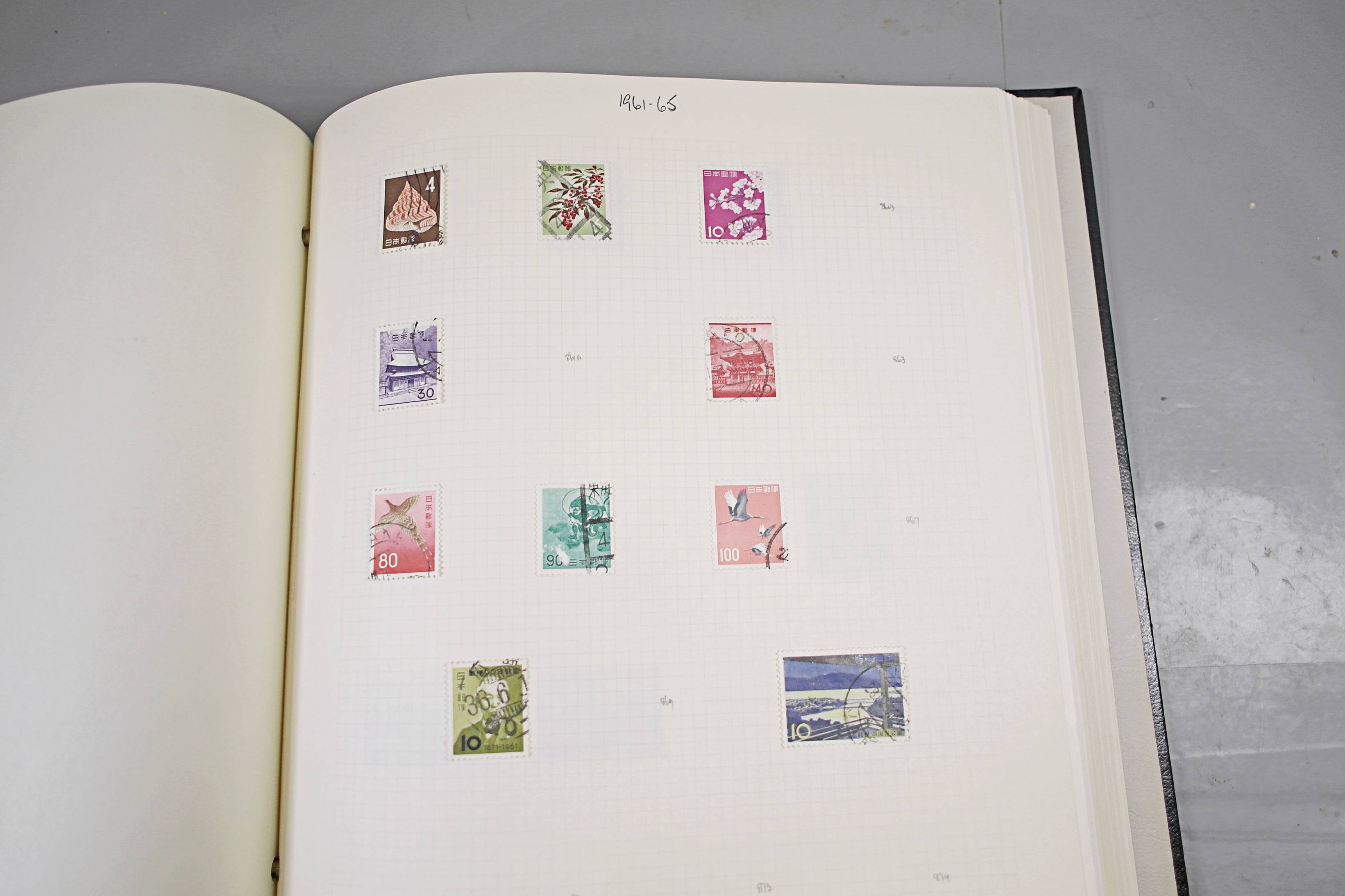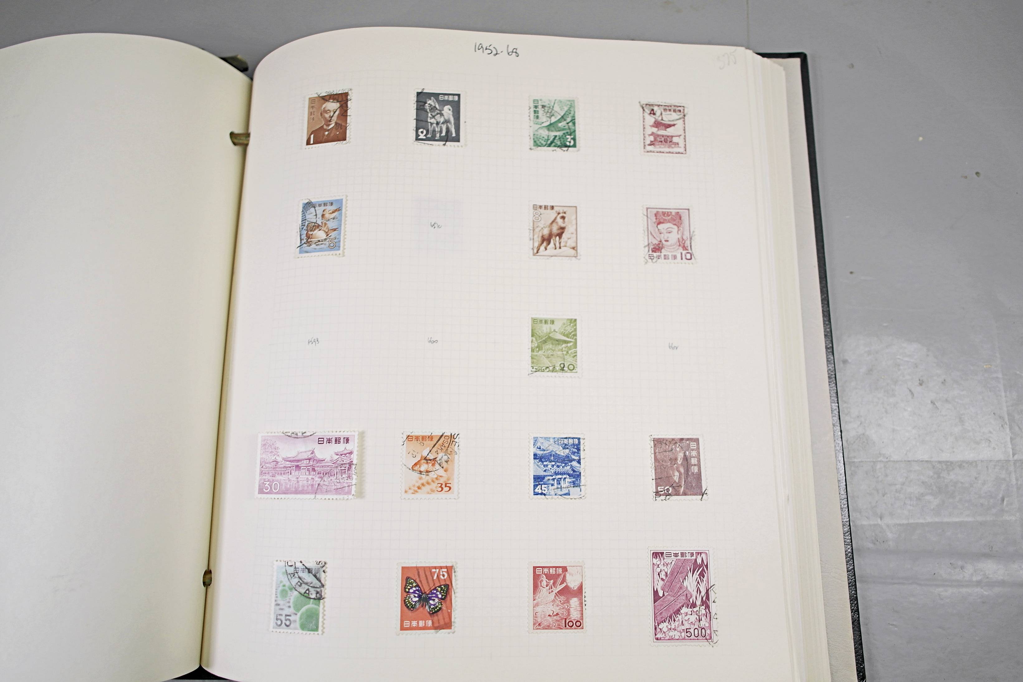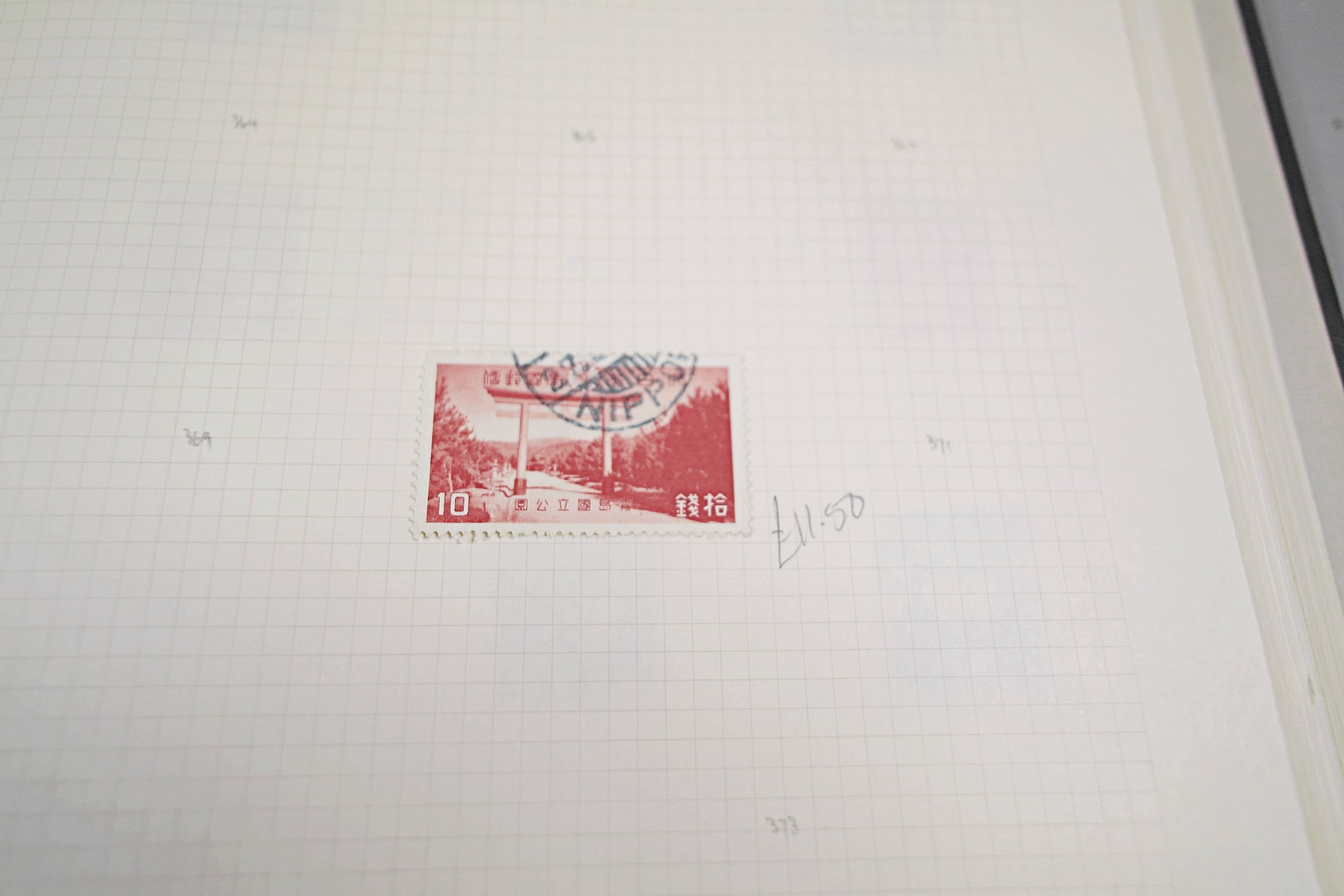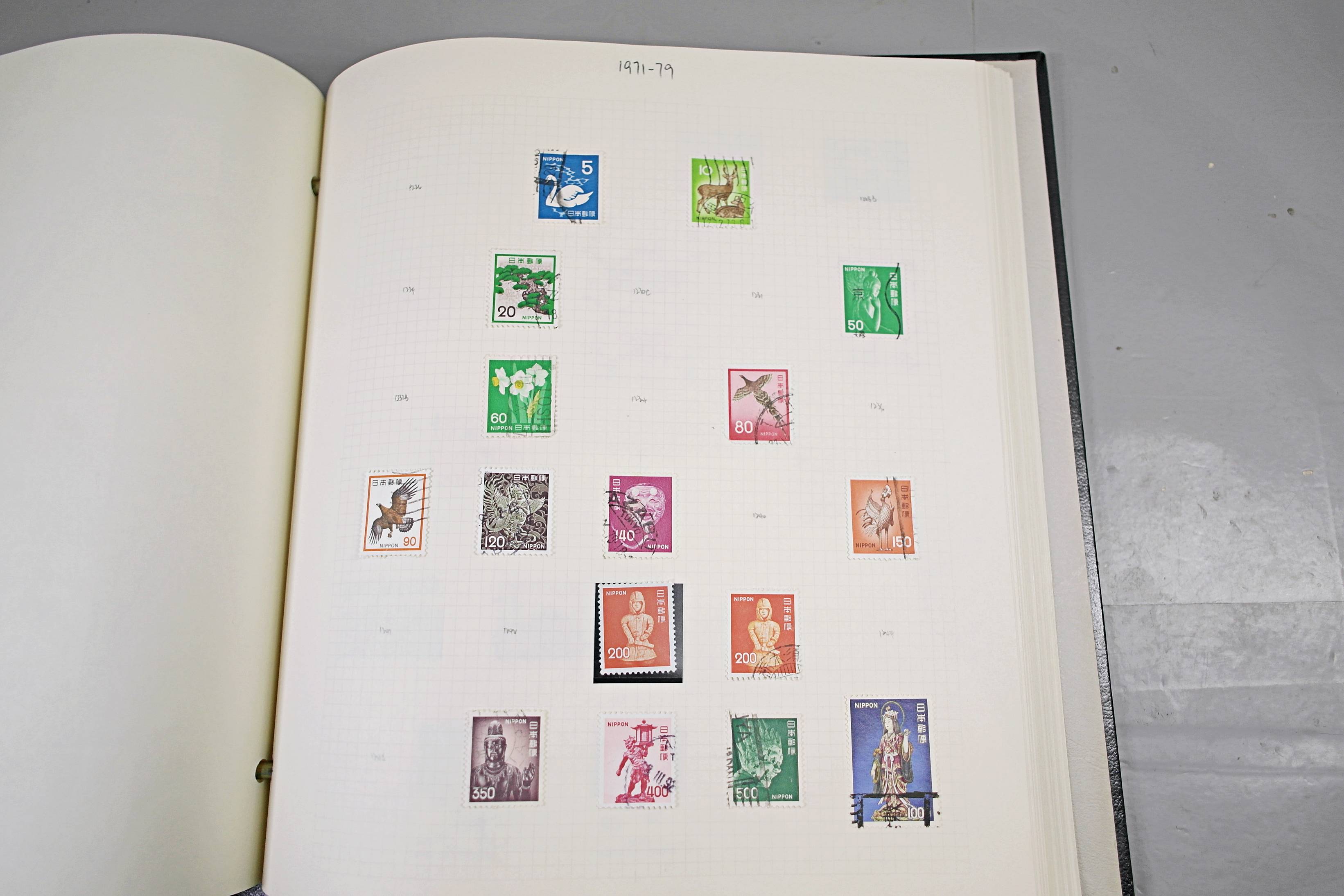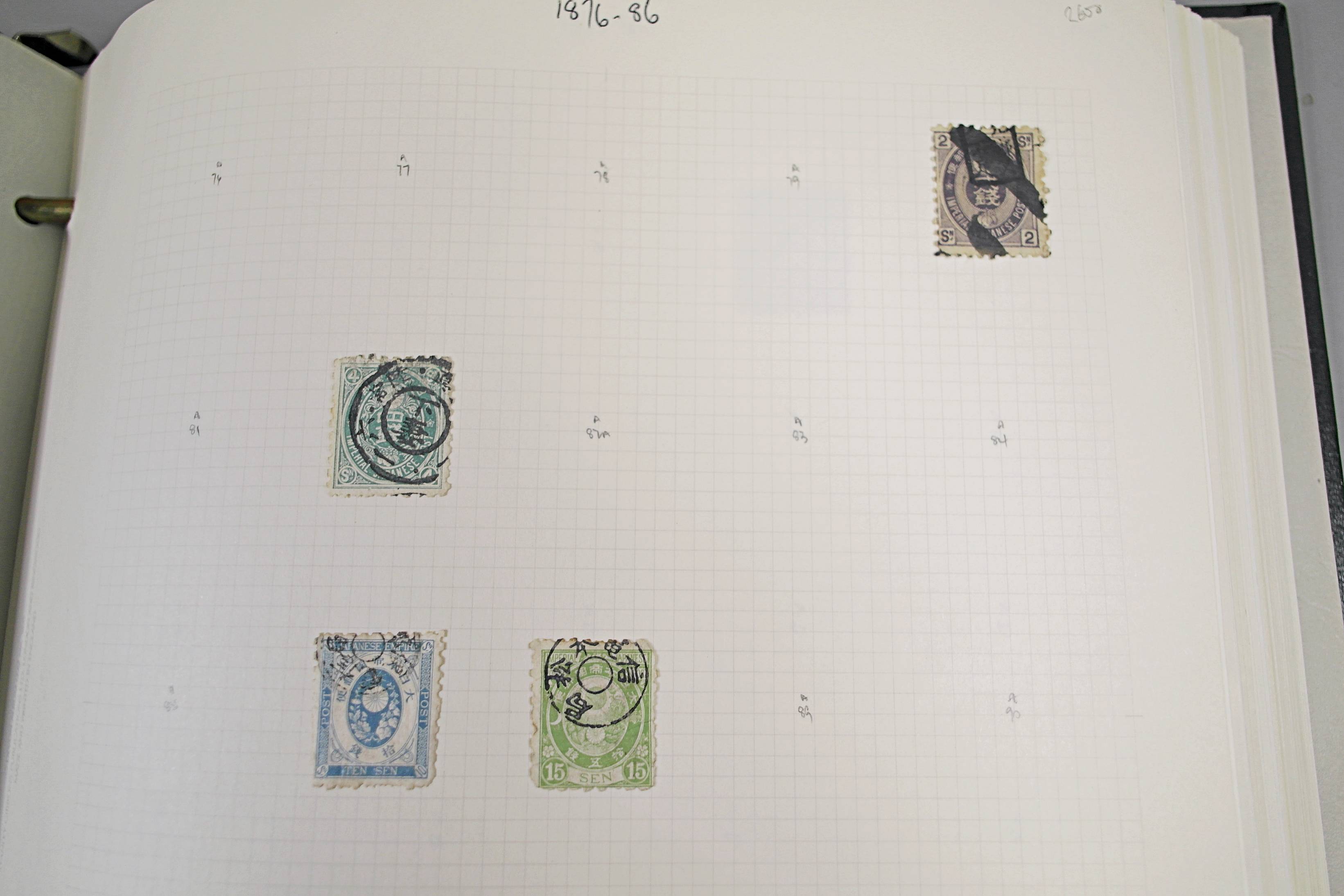 Extensive Japanese stamp collection in "Devon" Album. The collection is neatly laid out using Stanley Gibbon Catalogue numbers. The collection ranges from 1870s to modern. Many better items noted including early perf variations, mid-period commemoratives, and stronger later sets in mint and uséd condition. Please look at all 99 images carefully.