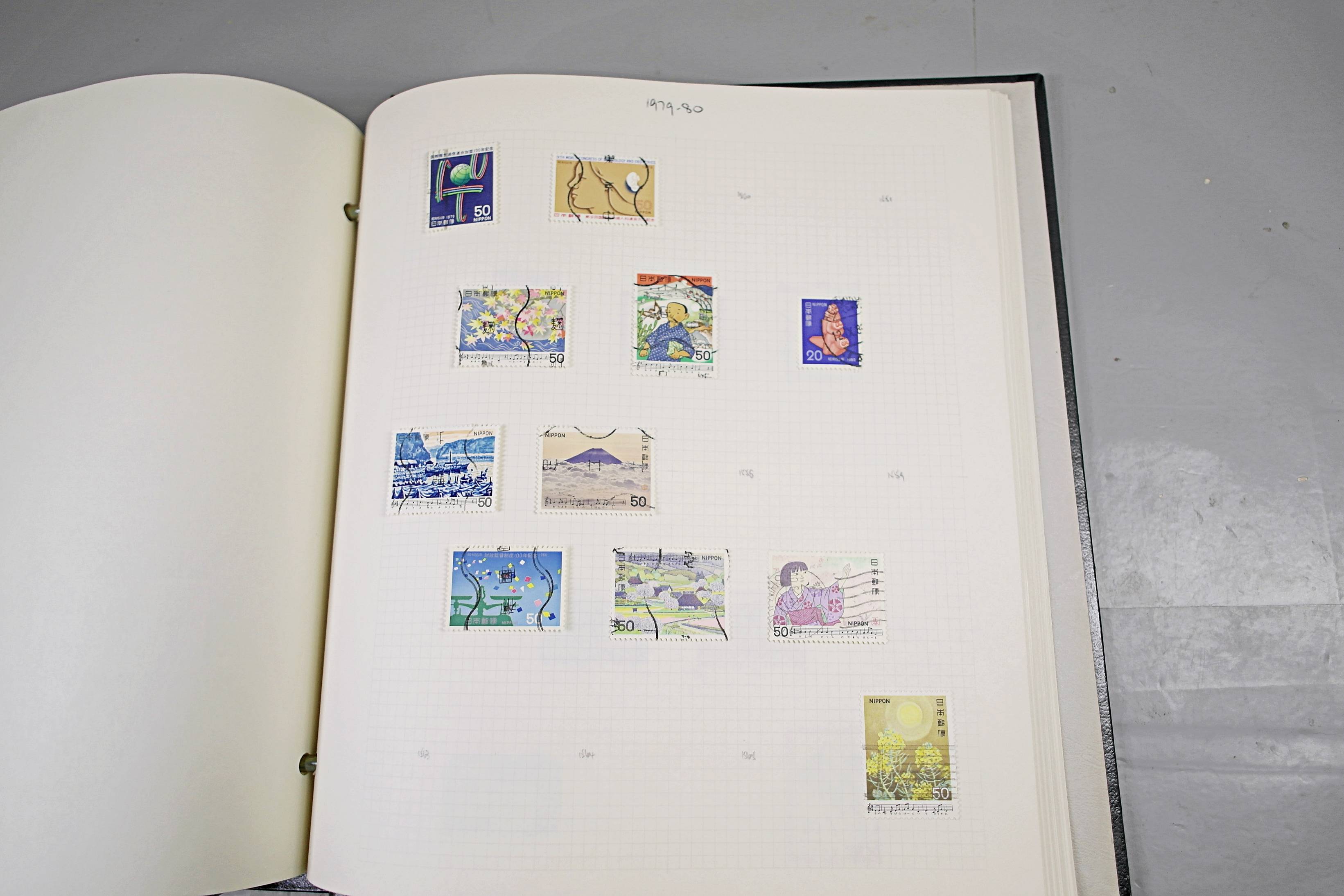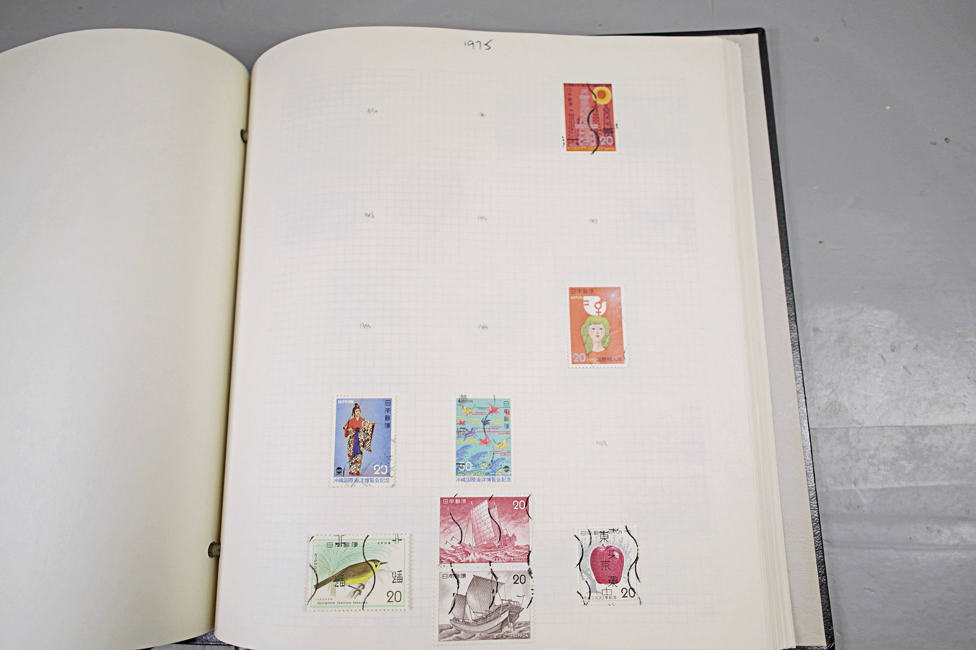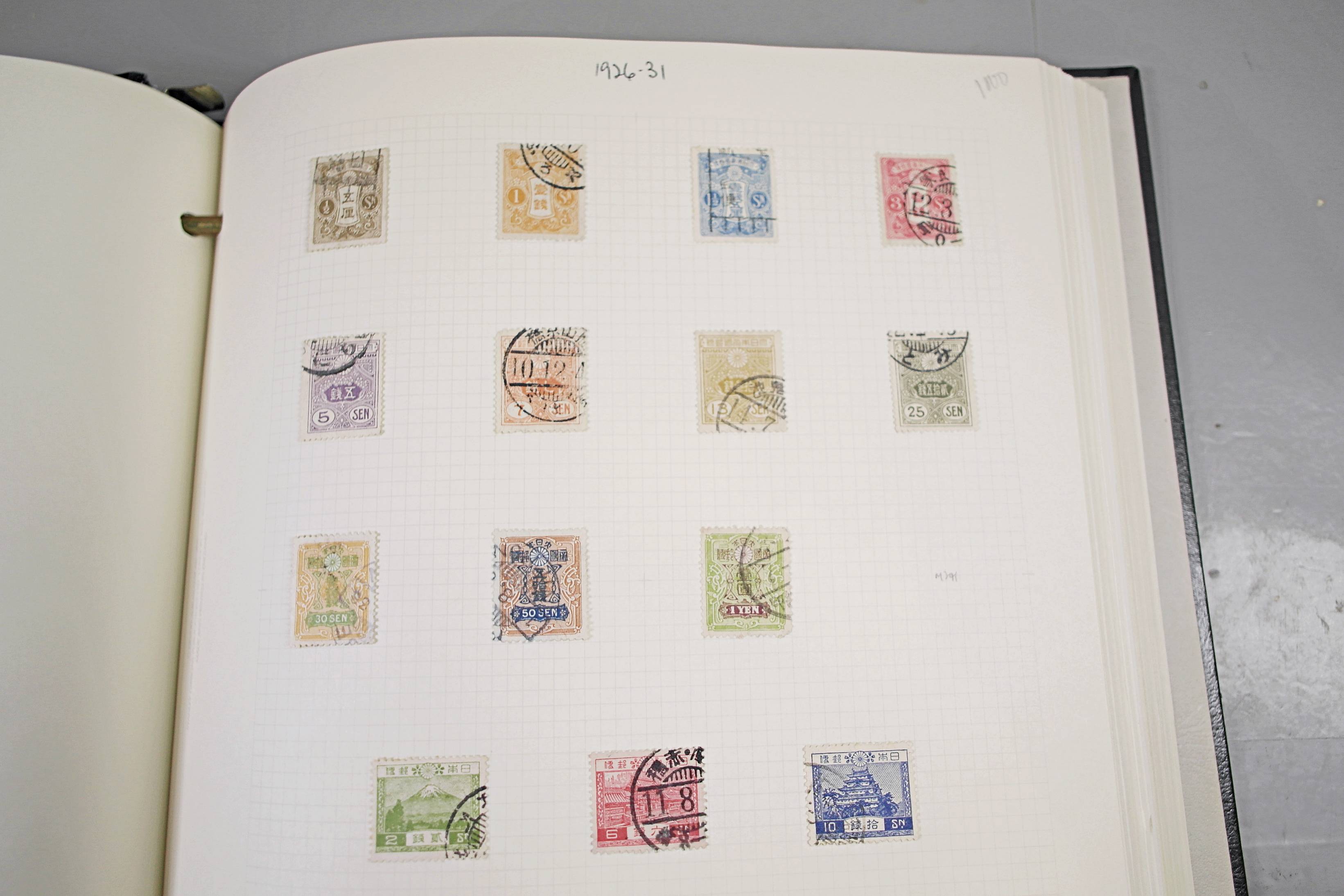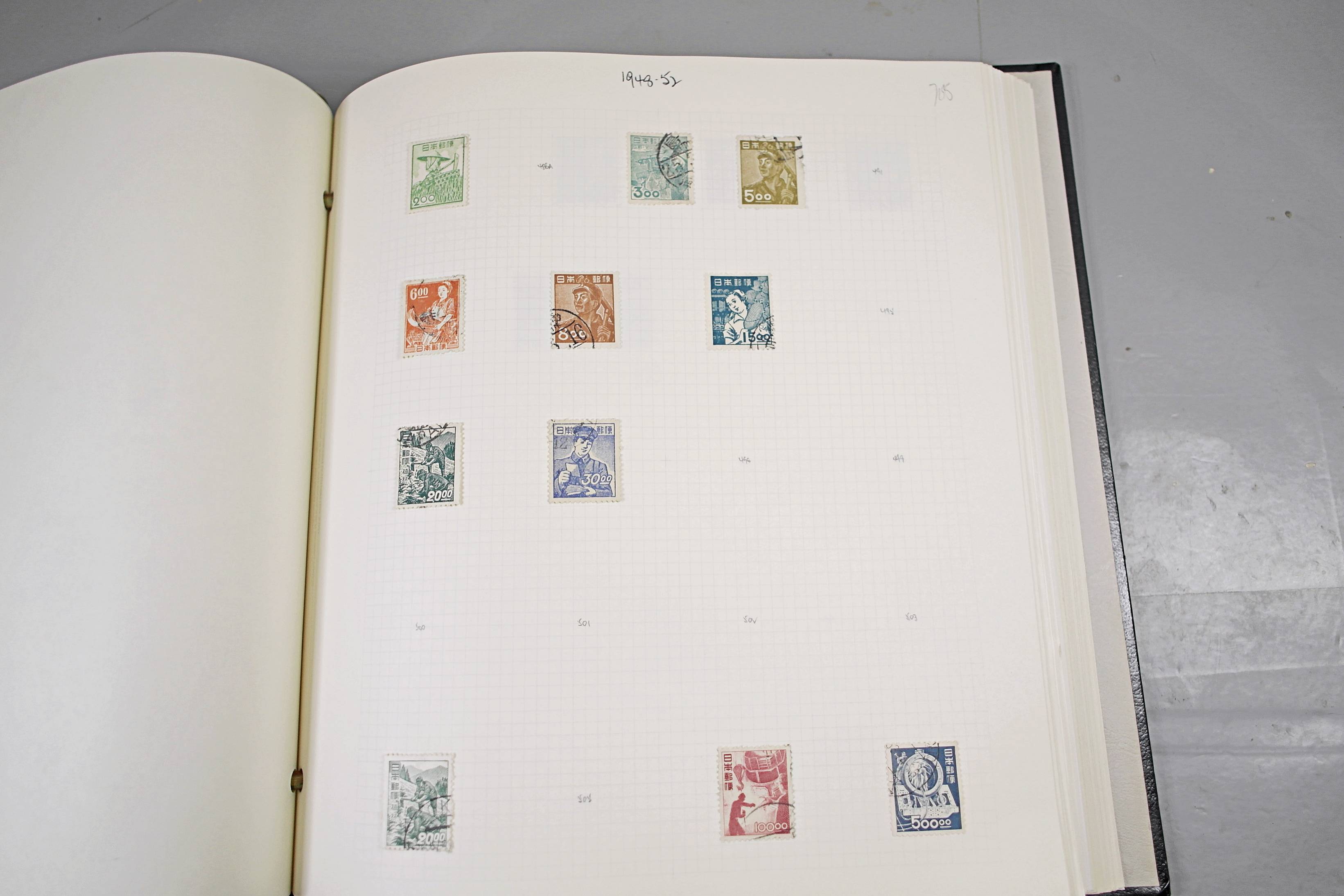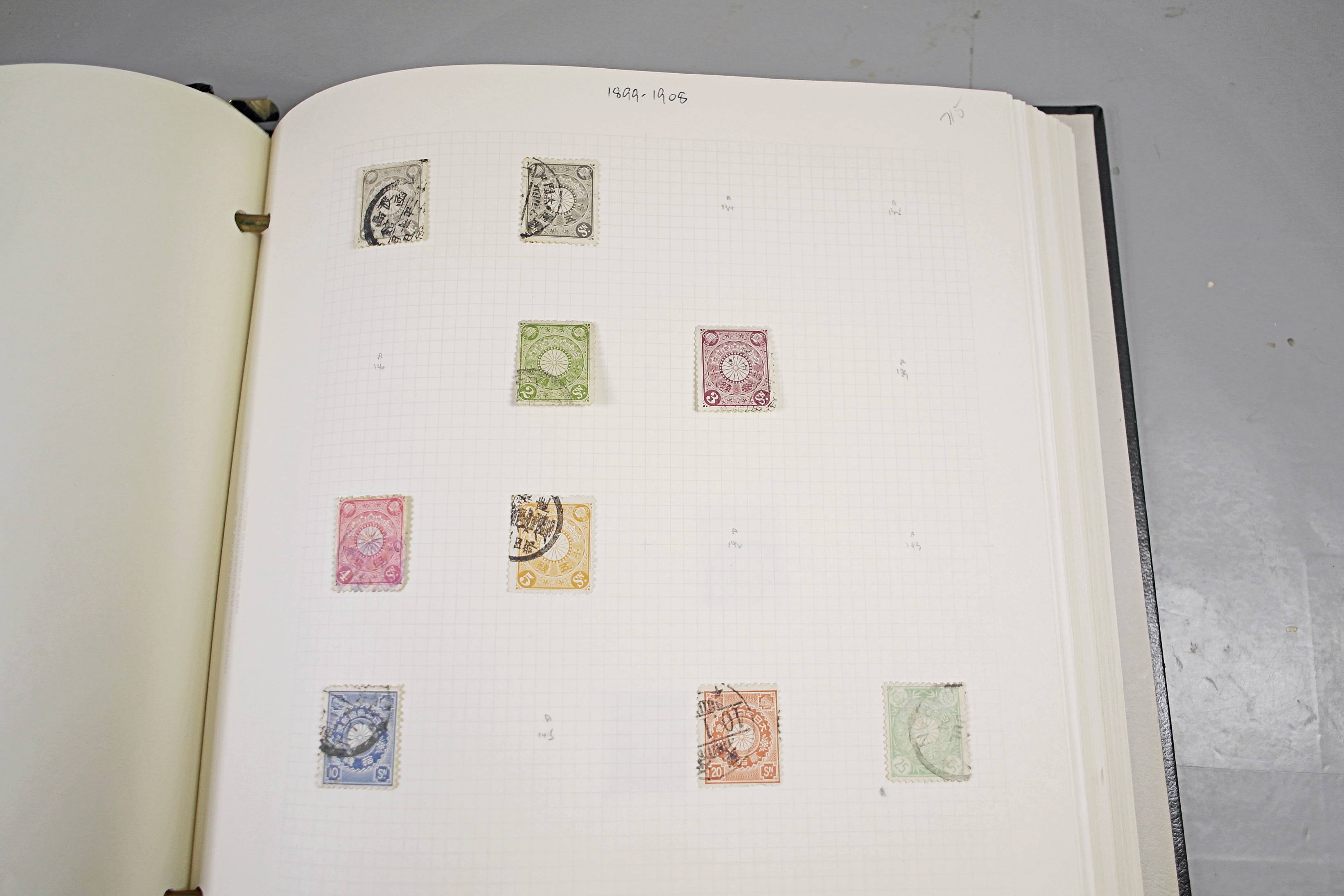 Extensive Japanese stamp collection in "Devon" Album. The collection is neatly laid out using Stanley Gibbon Catalogue numbers. The collection ranges from 1870s to modern. Many better items noted including early perf variations, mid-period commemoratives, and stronger later sets in mint and uséd condition. Please look at all 99 images carefully.