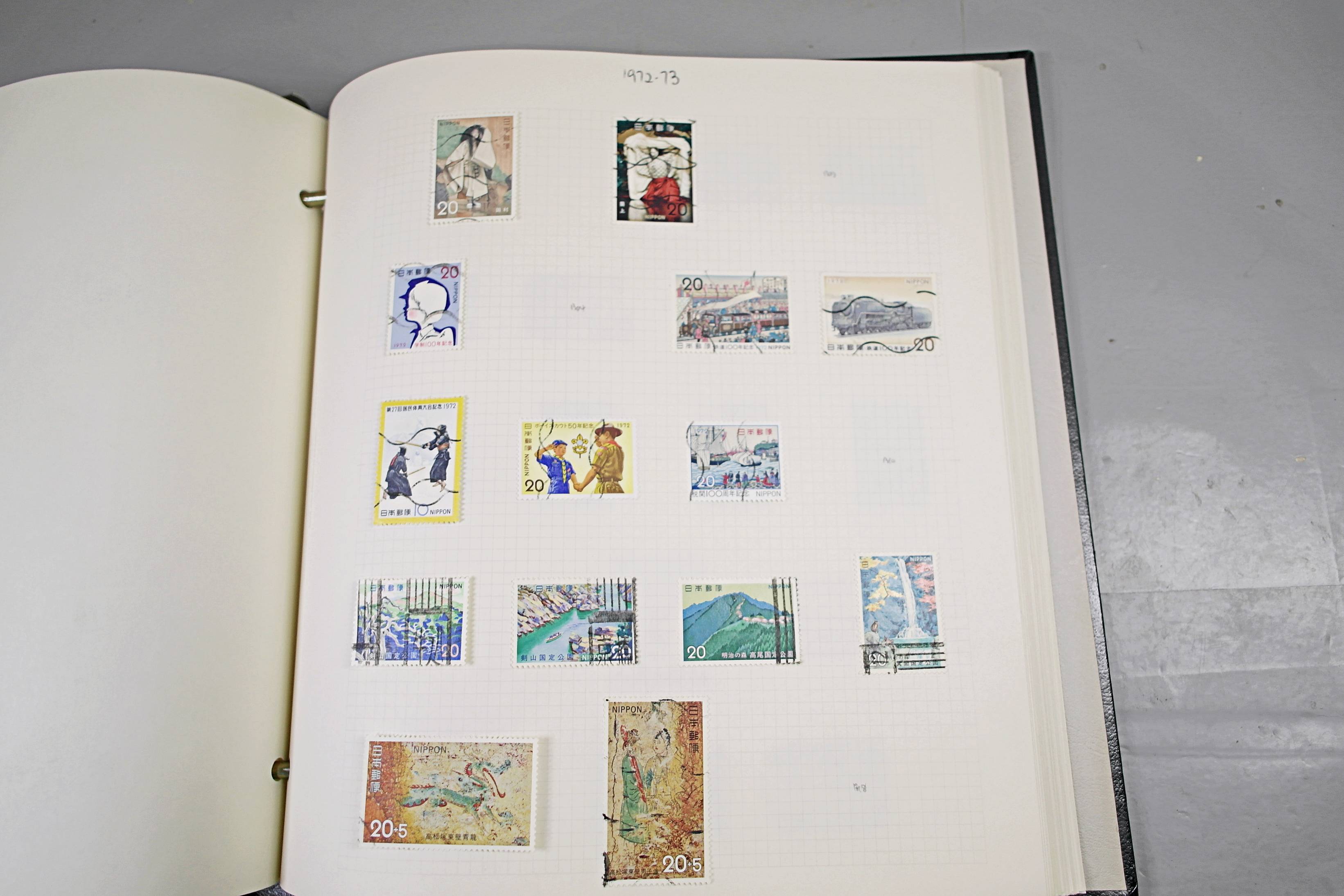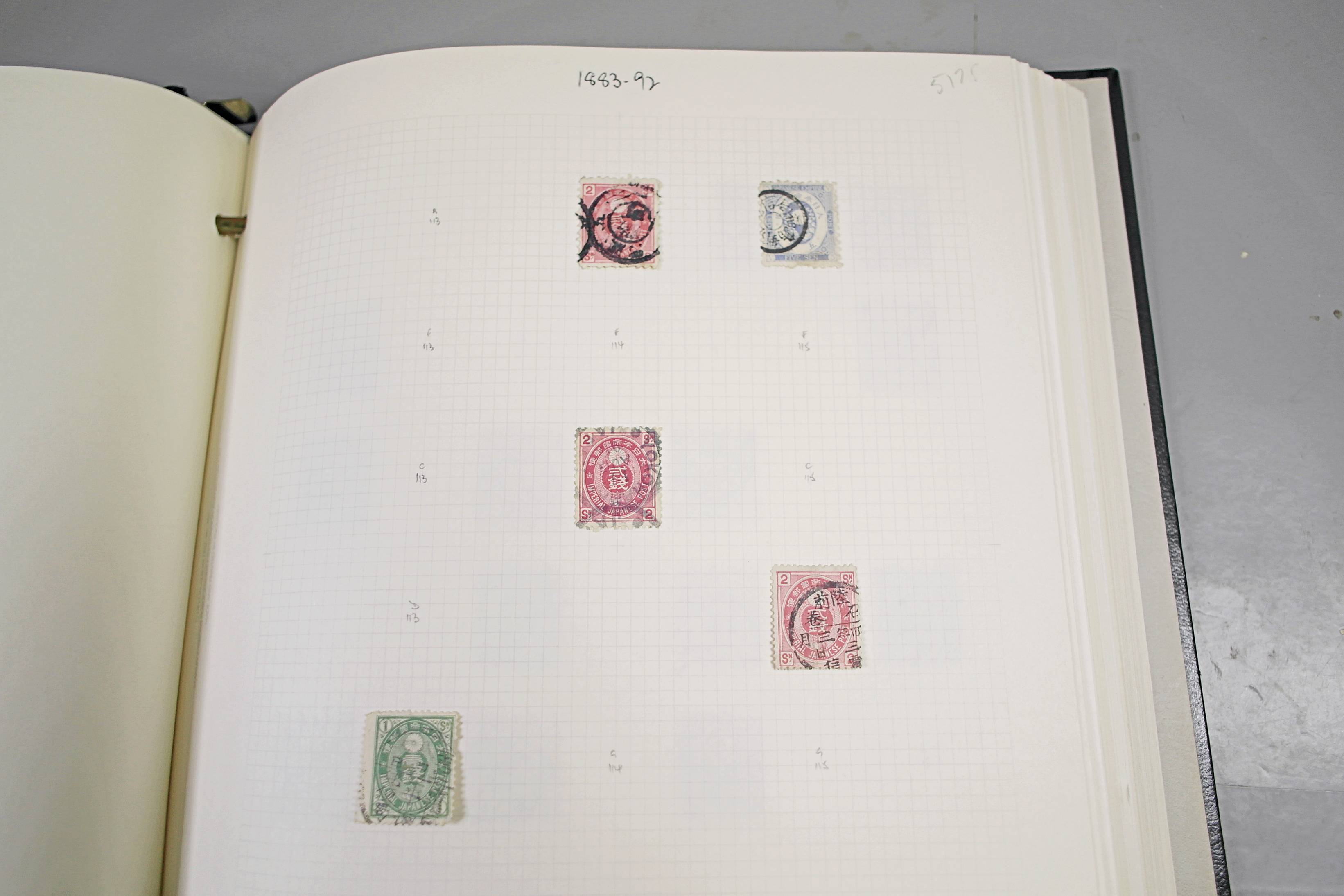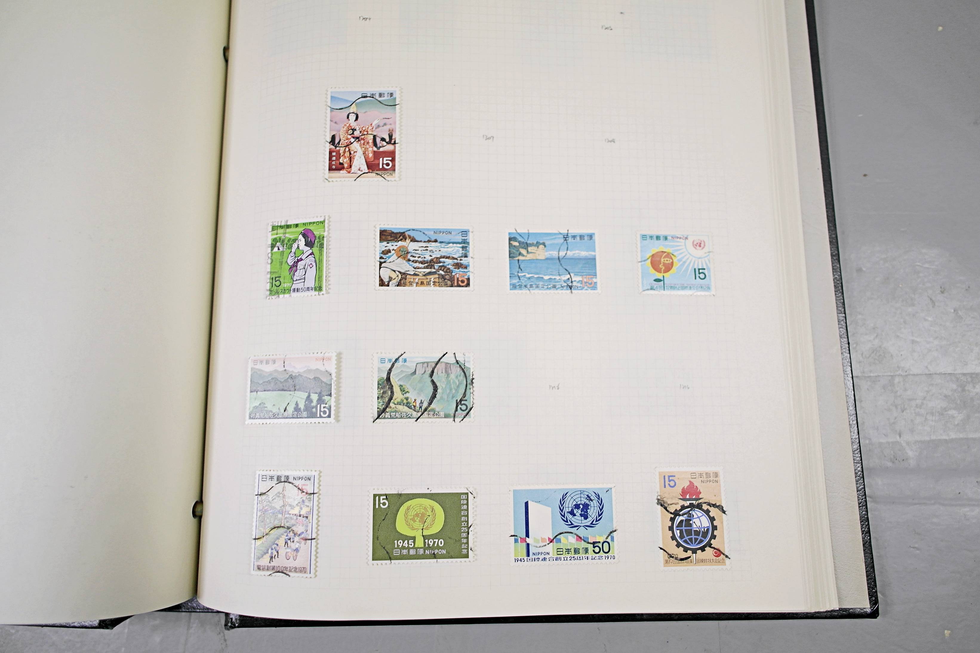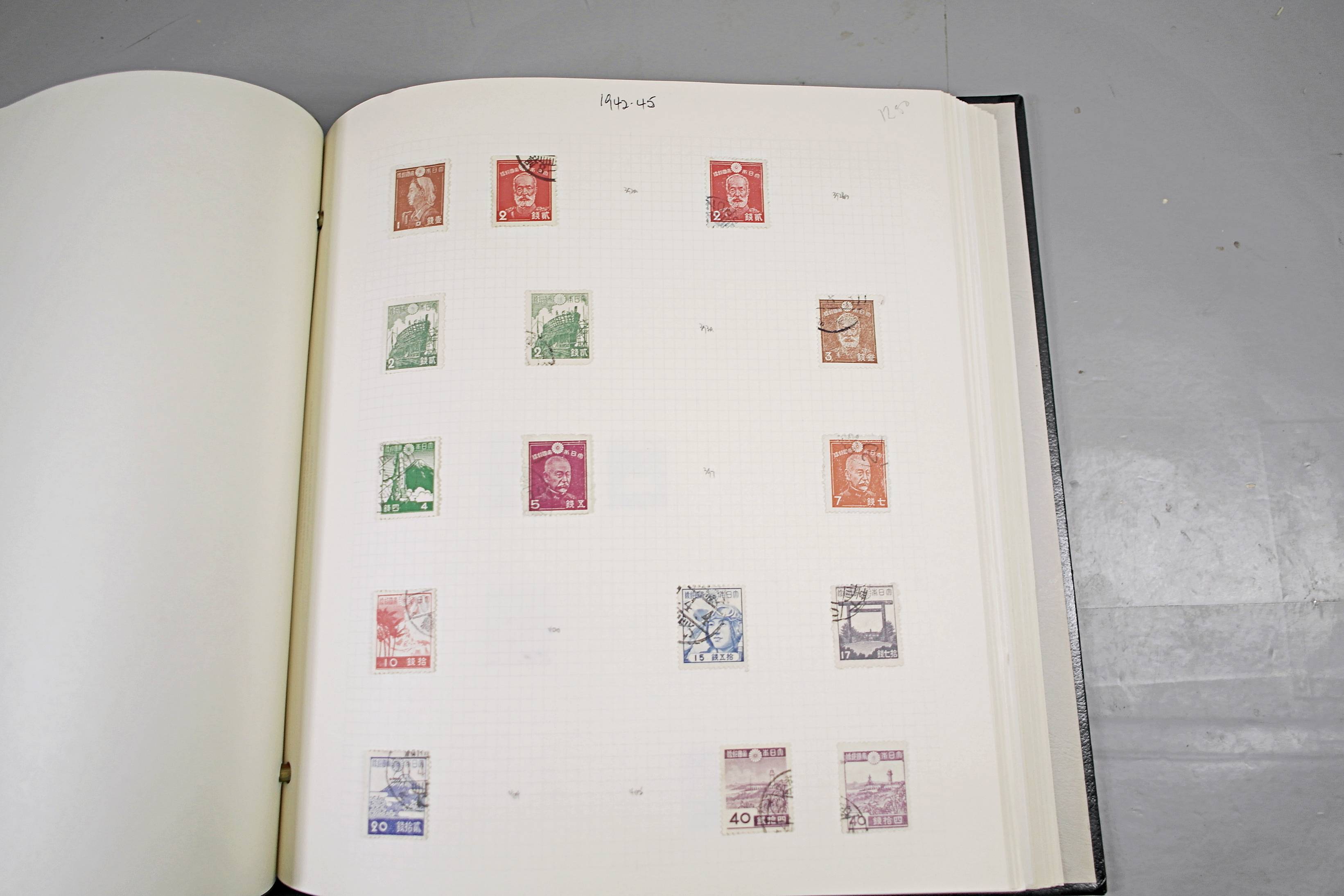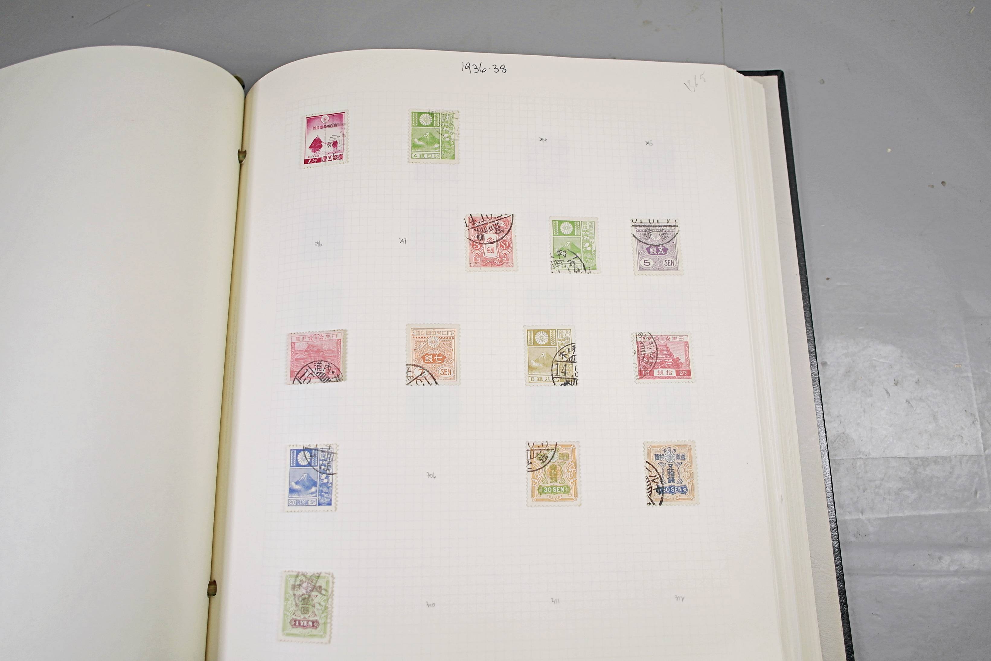 Extensive Japanese stamp collection in "Devon" Album. The collection is neatly laid out using Stanley Gibbon Catalogue numbers. The collection ranges from 1870s to modern. Many better items noted including early perf variations, mid-period commemoratives, and stronger later sets in mint and uséd condition. Please look at all 99 images carefully.