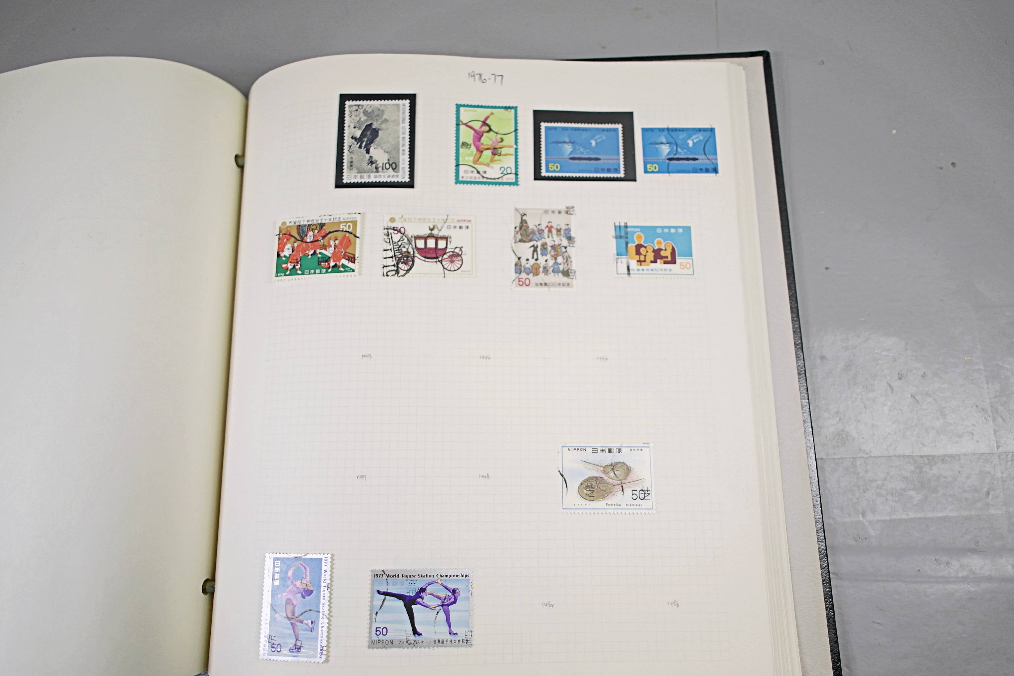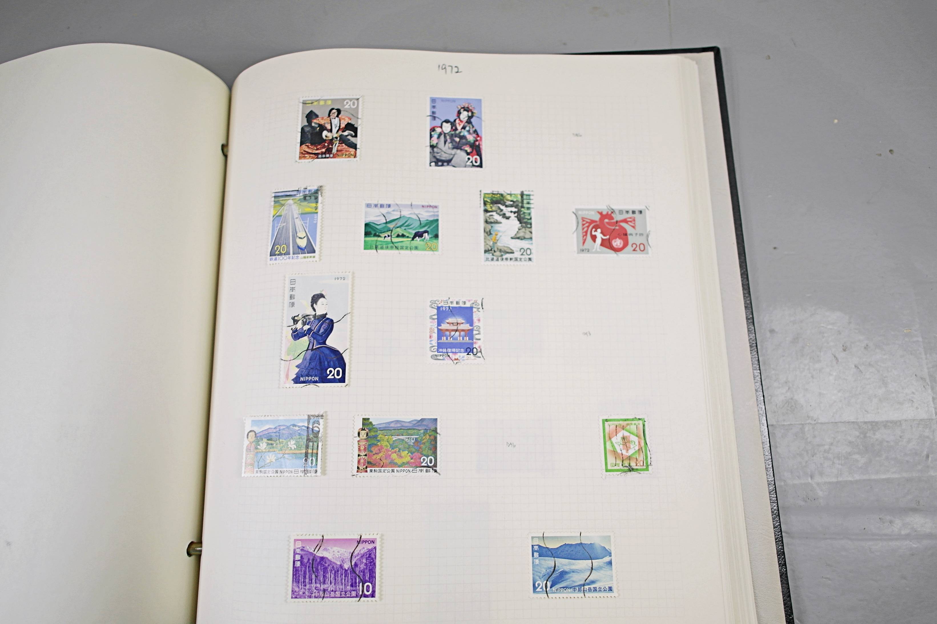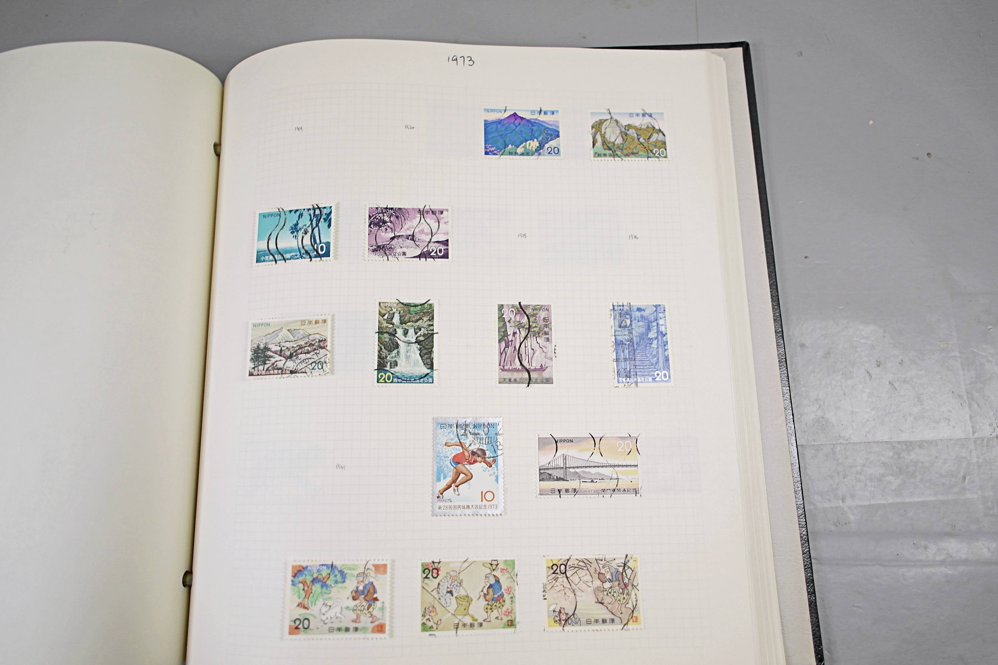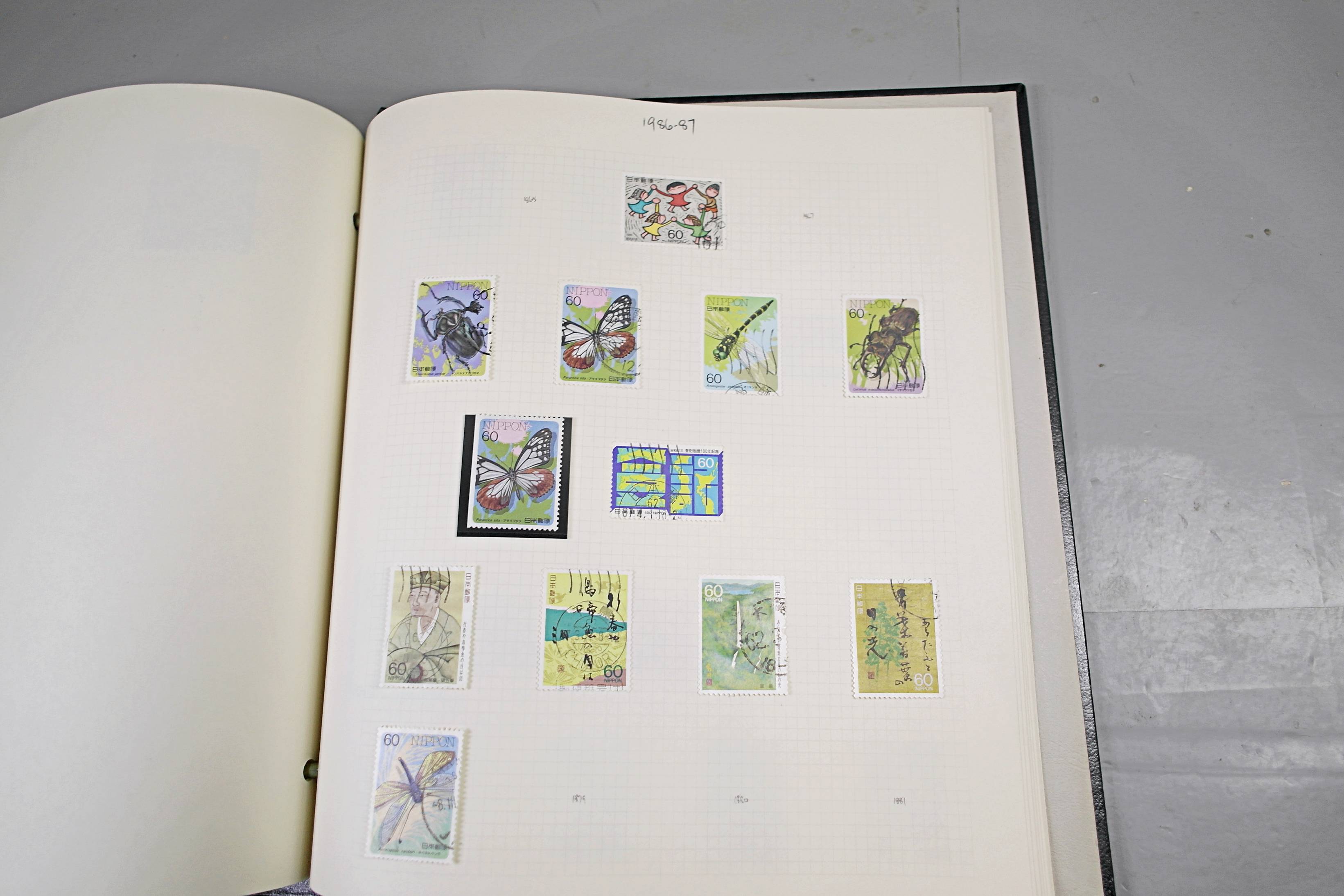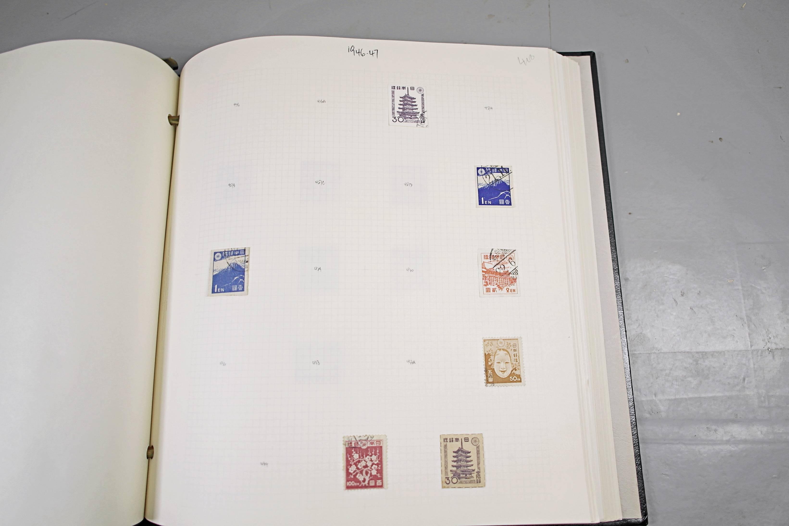 Extensive Japanese stamp collection in "Devon" Album. The collection is neatly laid out using Stanley Gibbon Catalogue numbers. The collection ranges from 1870s to modern. Many better items noted including early perf variations, mid-period commemoratives, and stronger later sets in mint and uséd condition. Please look at all 99 images carefully.