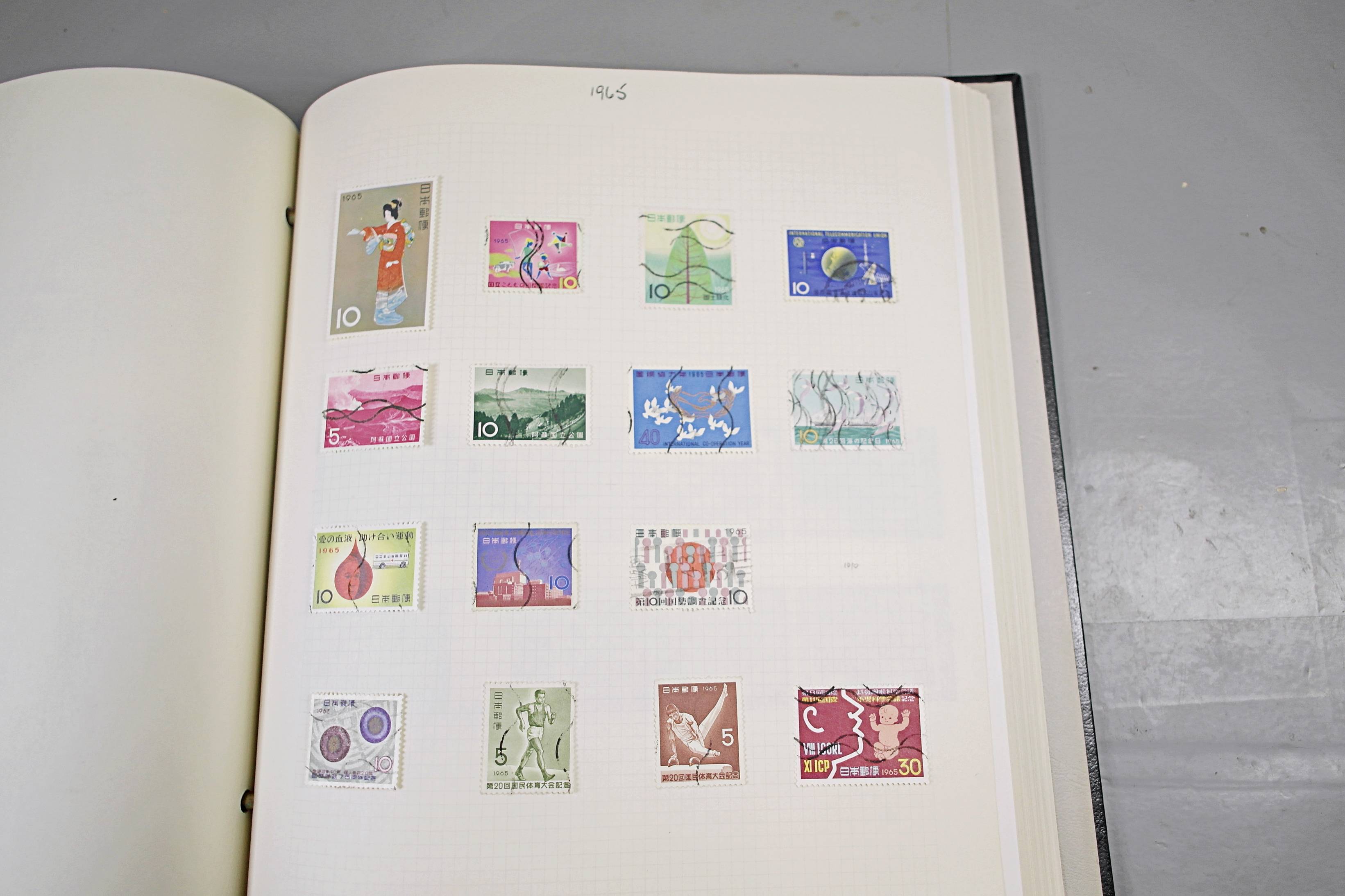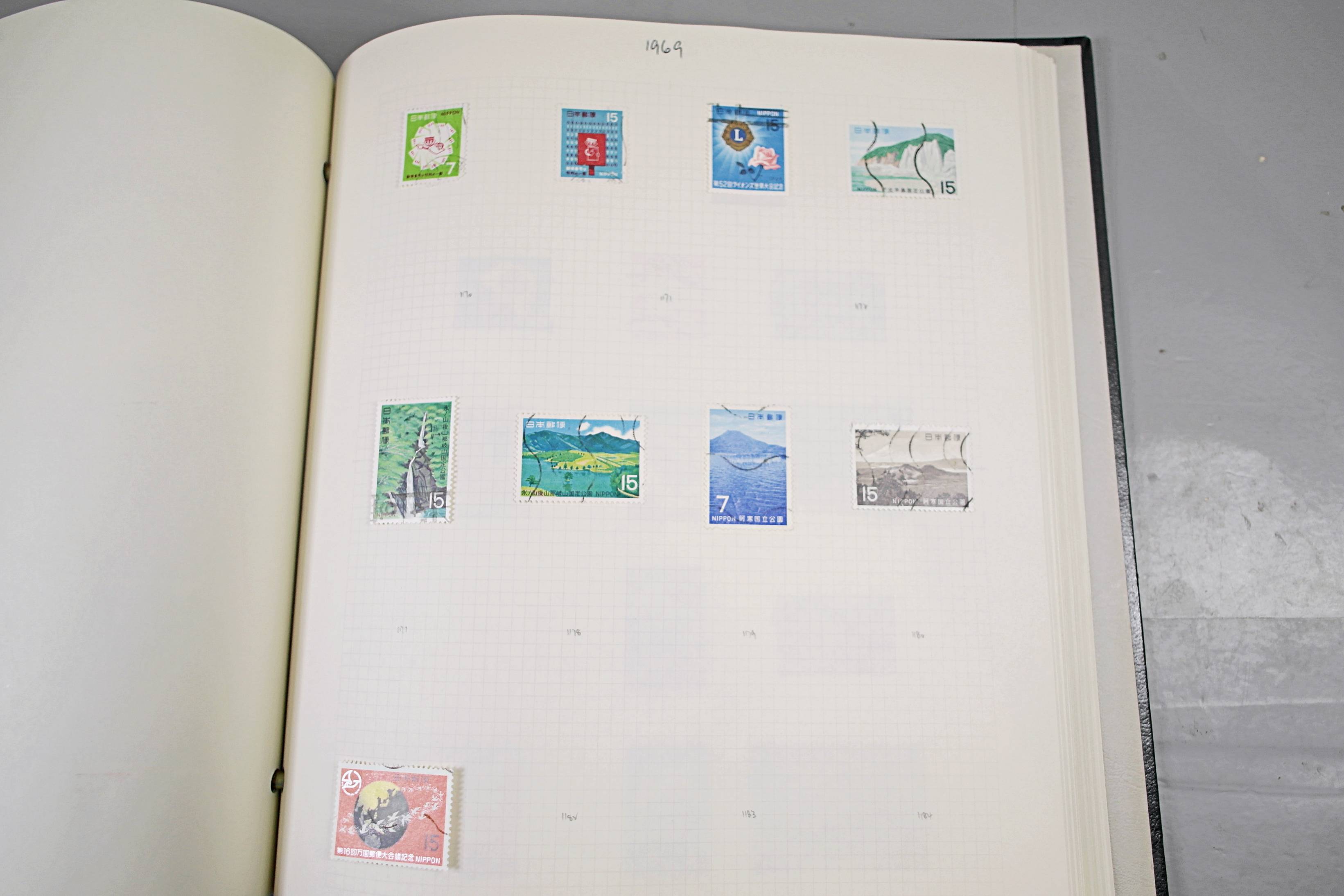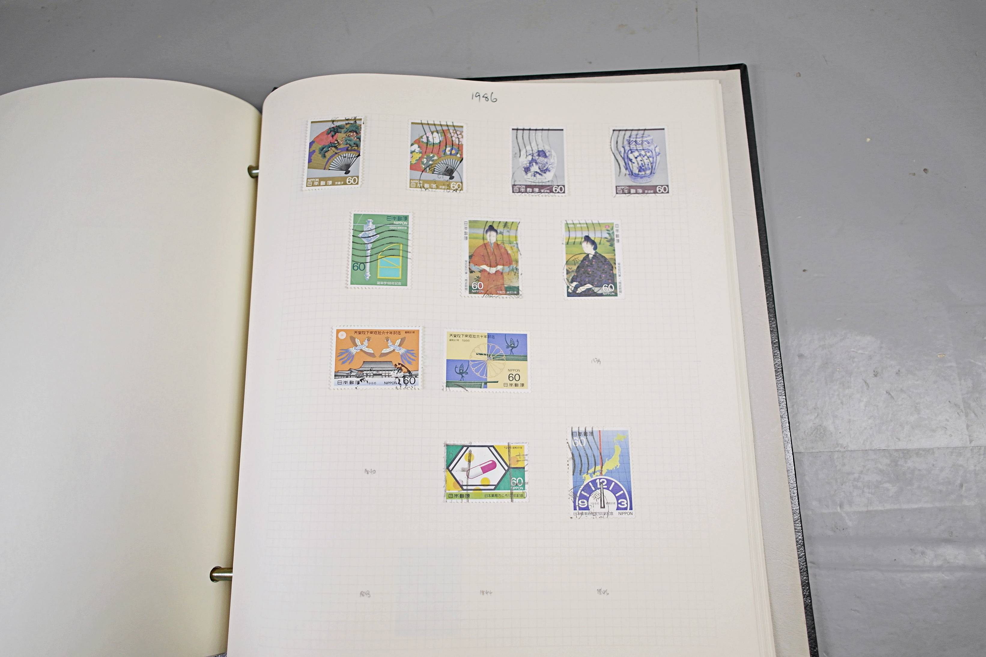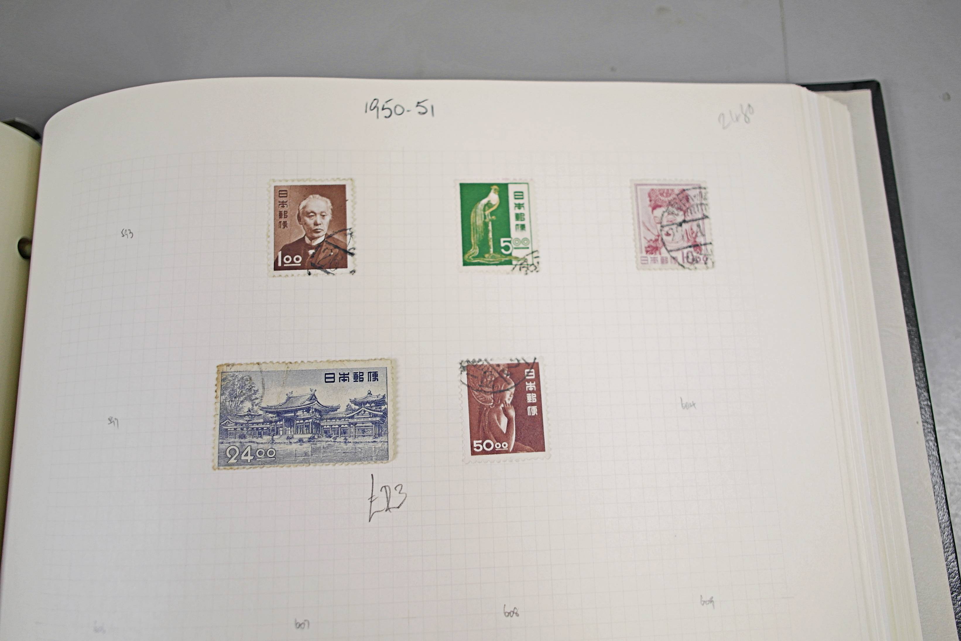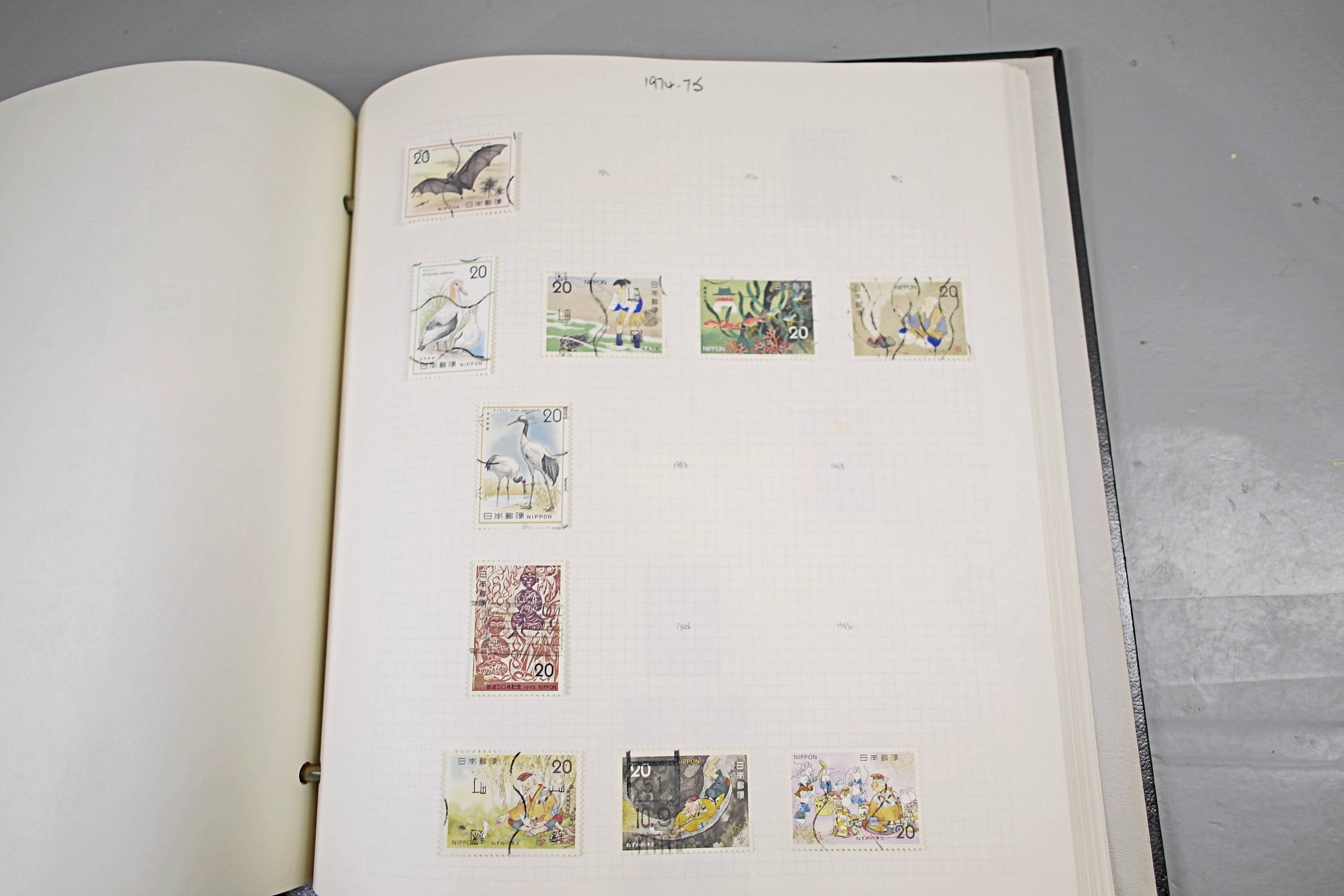 Extensive Japanese stamp collection in "Devon" Album. The collection is neatly laid out using Stanley Gibbon Catalogue numbers. The collection ranges from 1870s to modern. Many better items noted including early perf variations, mid-period commemoratives, and stronger later sets in mint and uséd condition. Please look at all 99 images carefully.