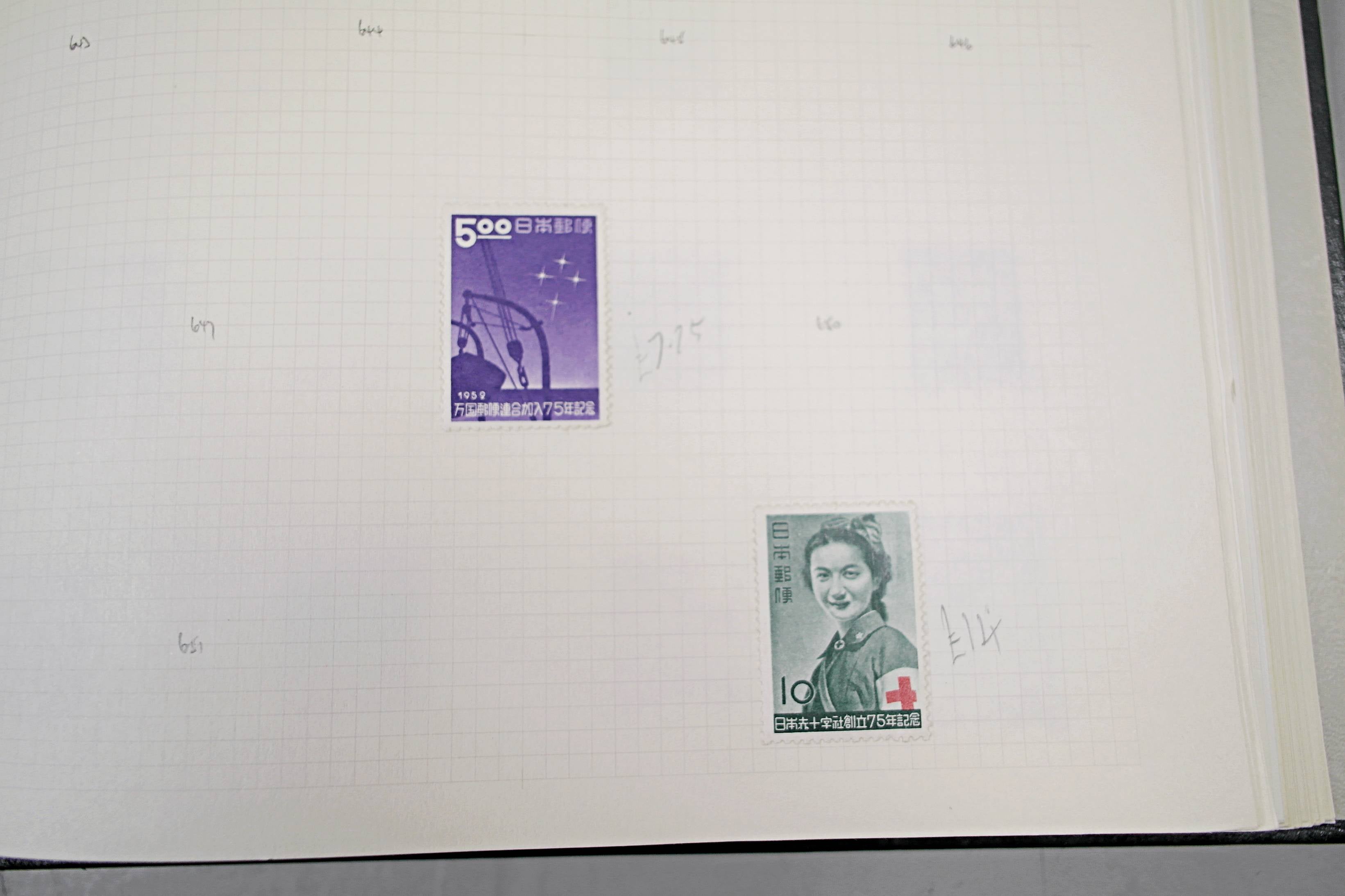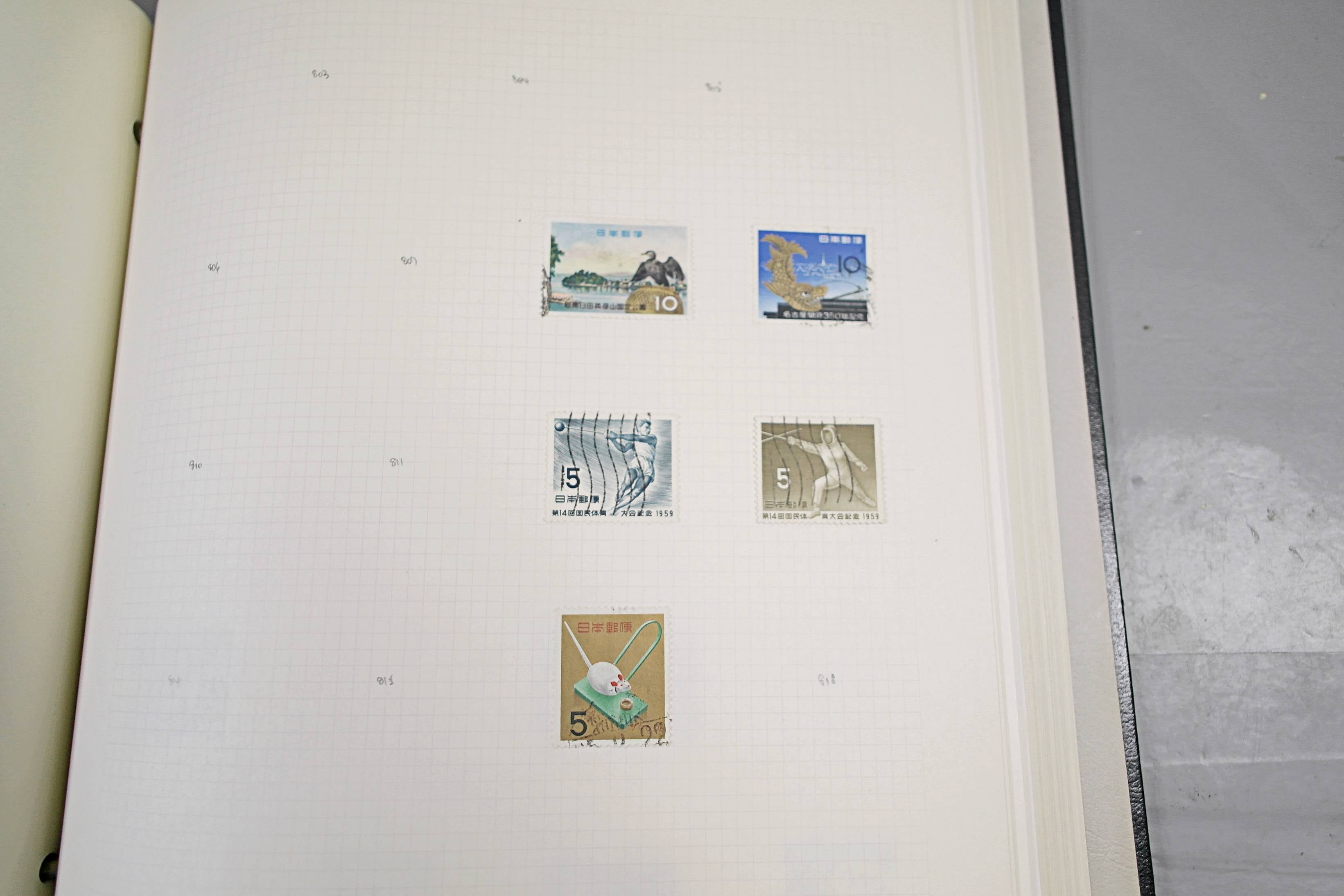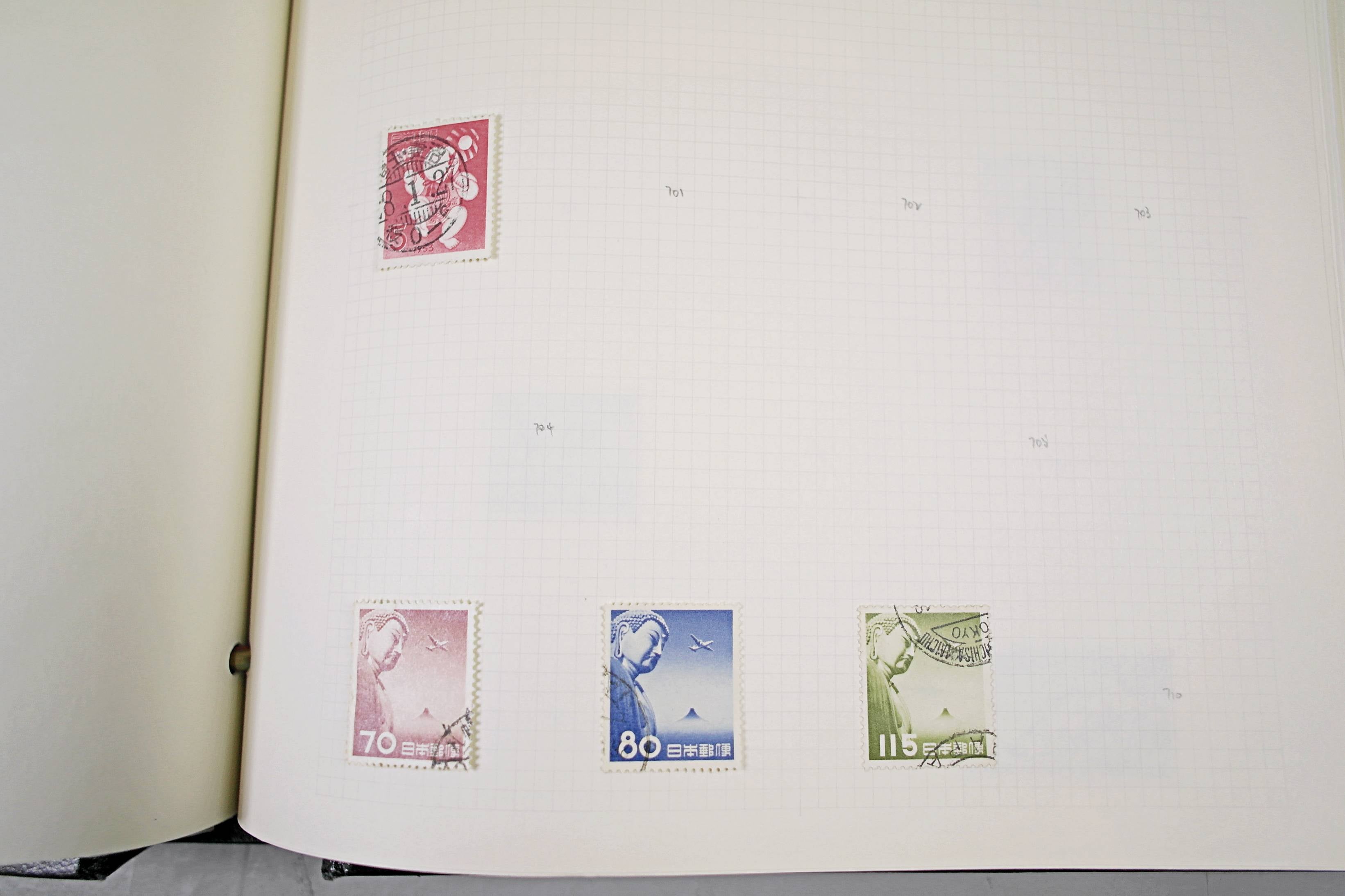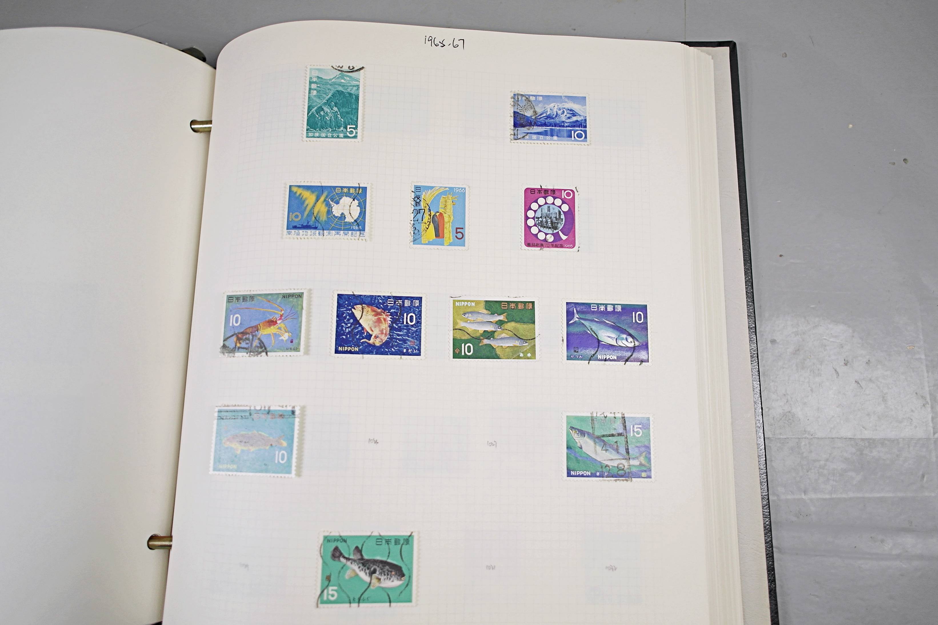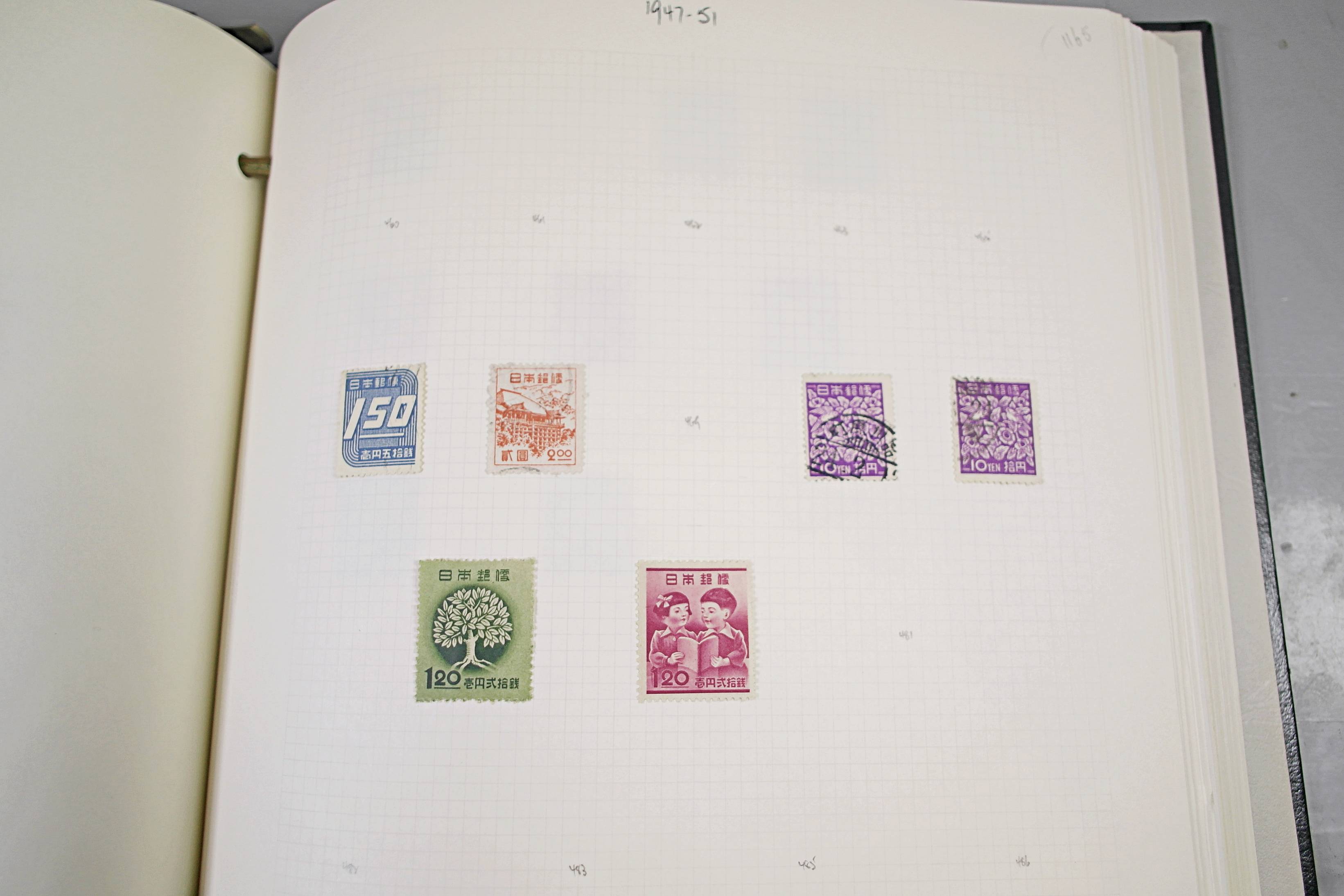 Extensive Japanese stamp collection in "Devon" Album. The collection is neatly laid out using Stanley Gibbon Catalogue numbers. The collection ranges from 1870s to modern. Many better items noted including early perf variations, mid-period commemoratives, and stronger later sets in mint and uséd condition. Please look at all 99 images carefully.