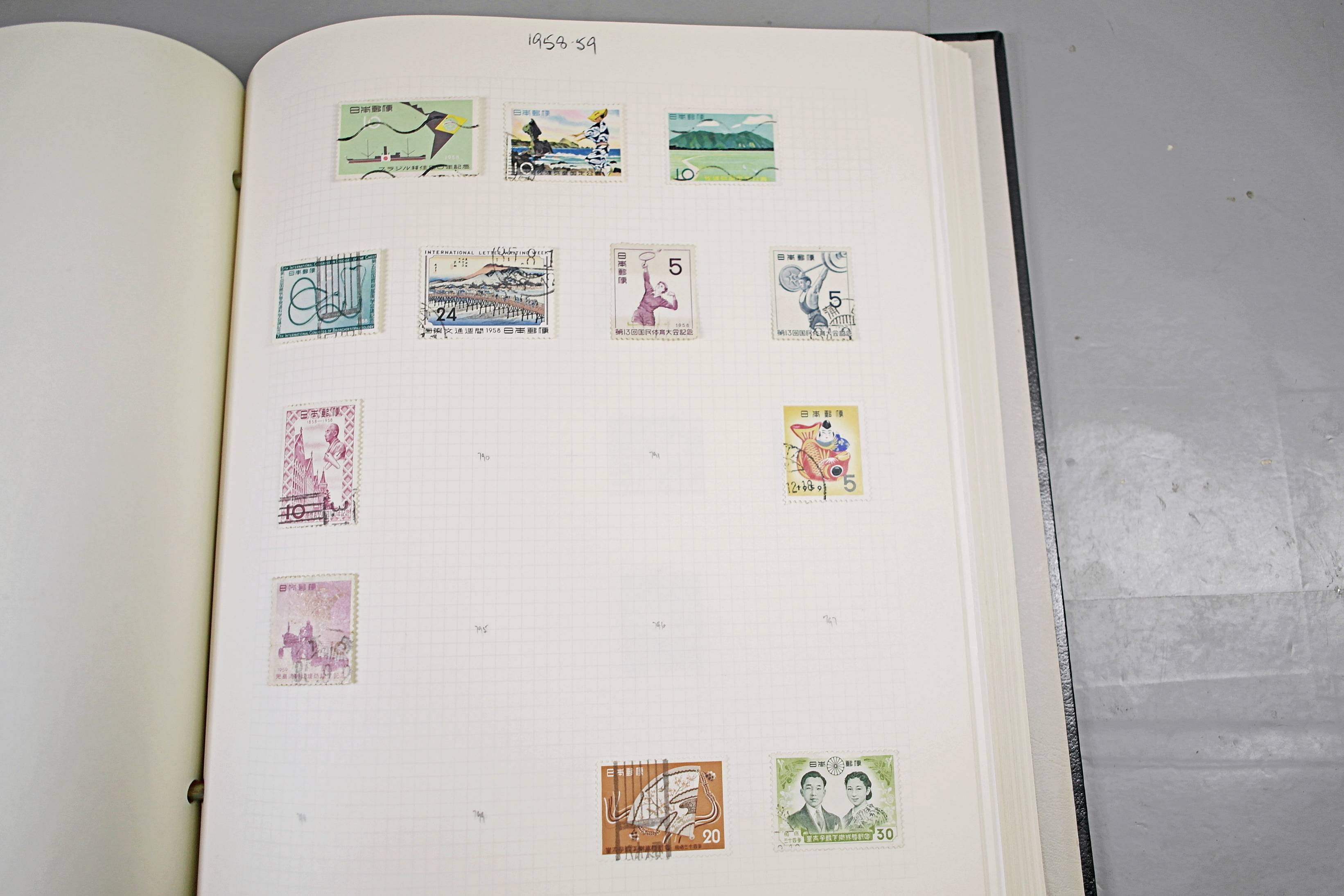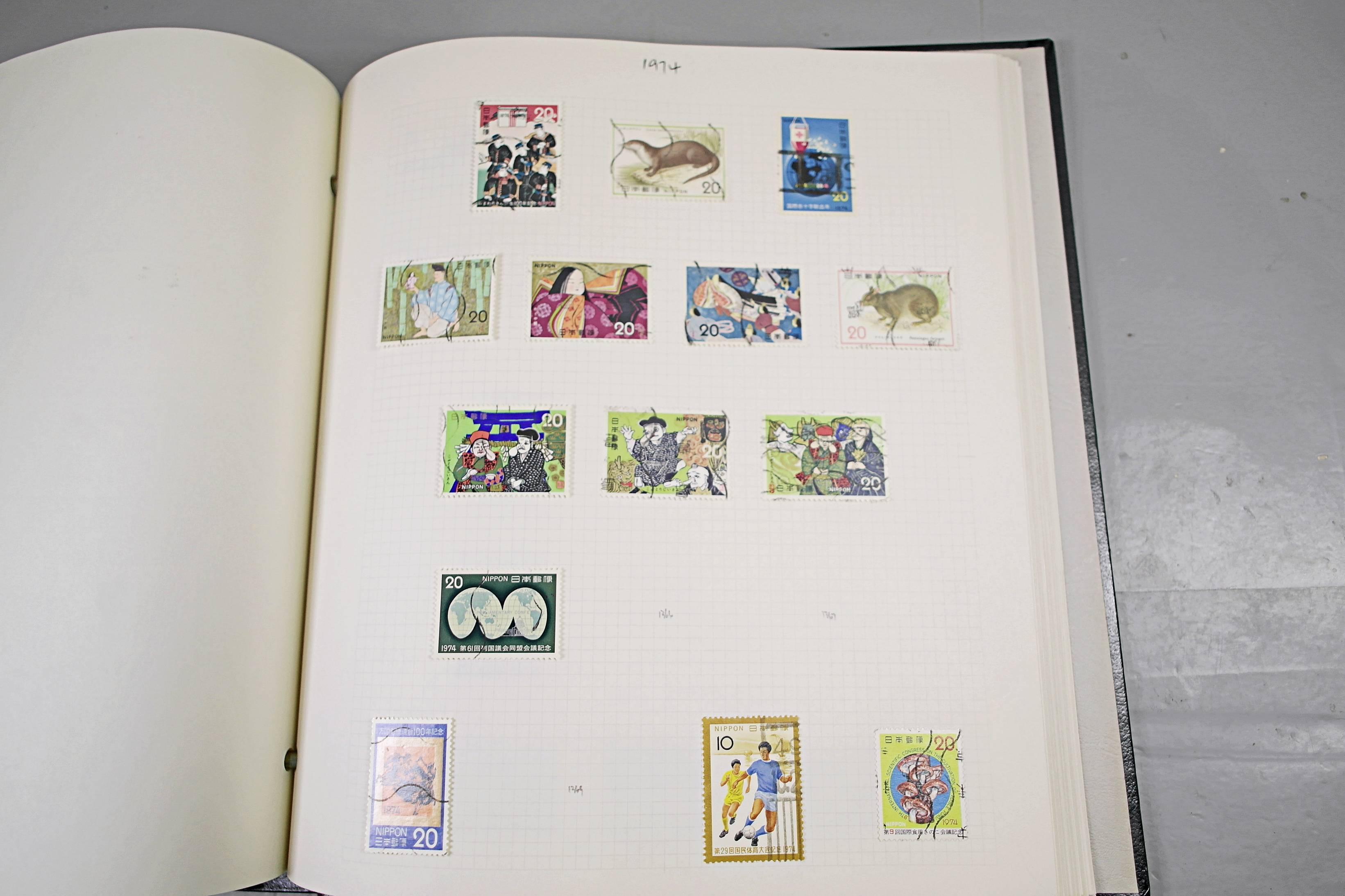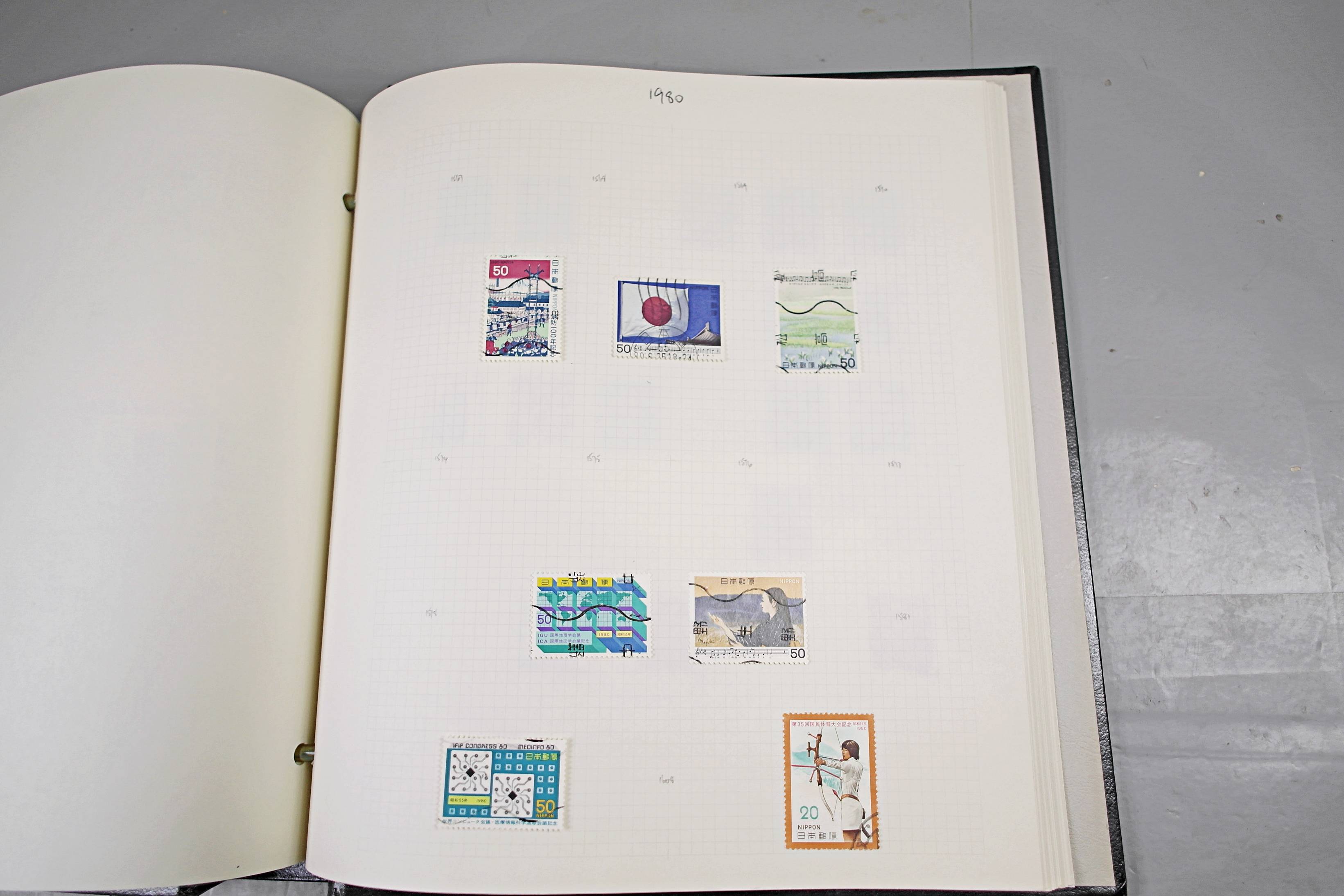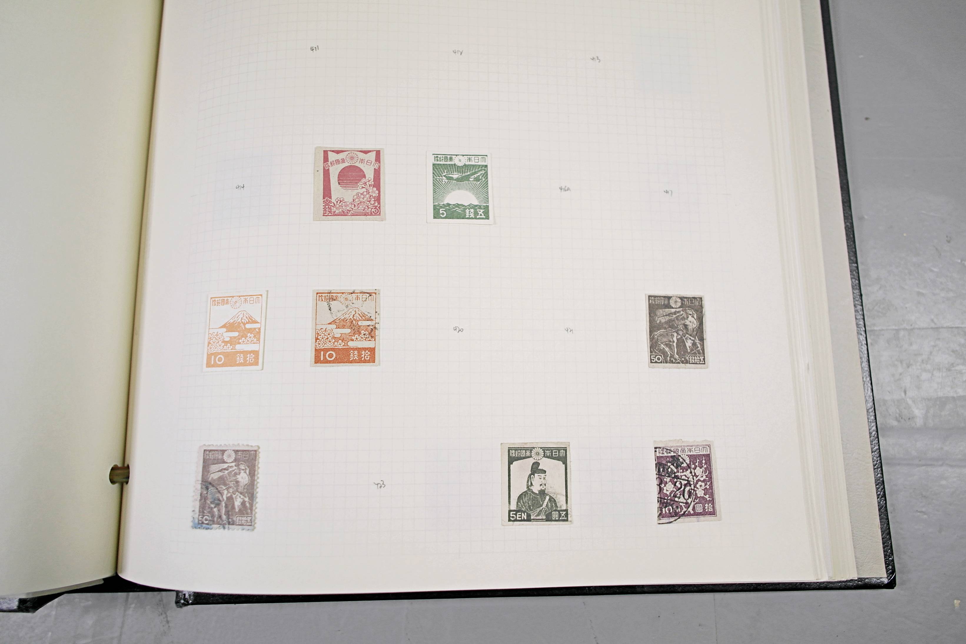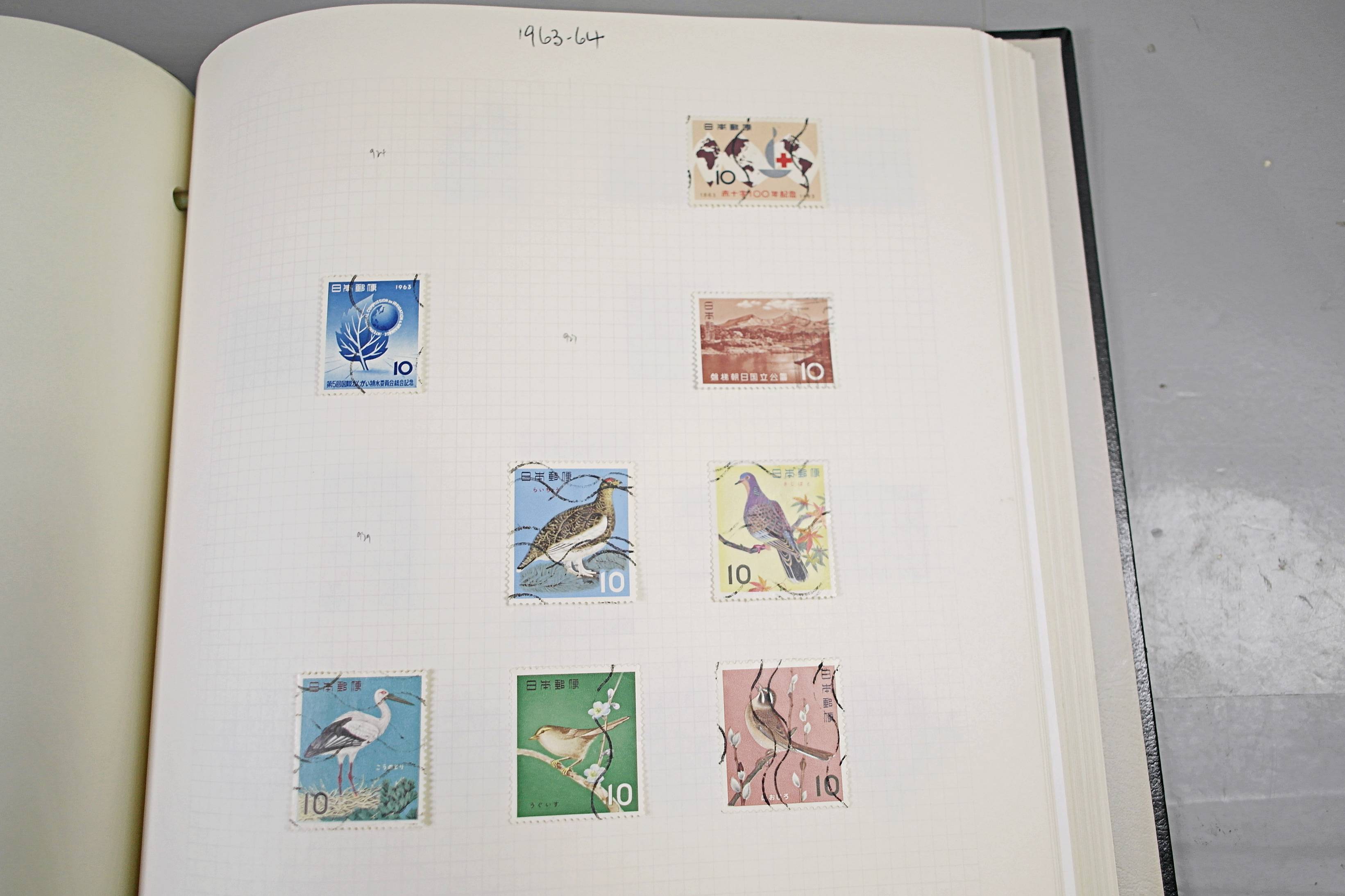 Extensive Japanese stamp collection in "Devon" Album. The collection is neatly laid out using Stanley Gibbon Catalogue numbers. The collection ranges from 1870s to modern. Many better items noted including early perf variations, mid-period commemoratives, and stronger later sets in mint and uséd condition. Please look at all 99 images carefully.