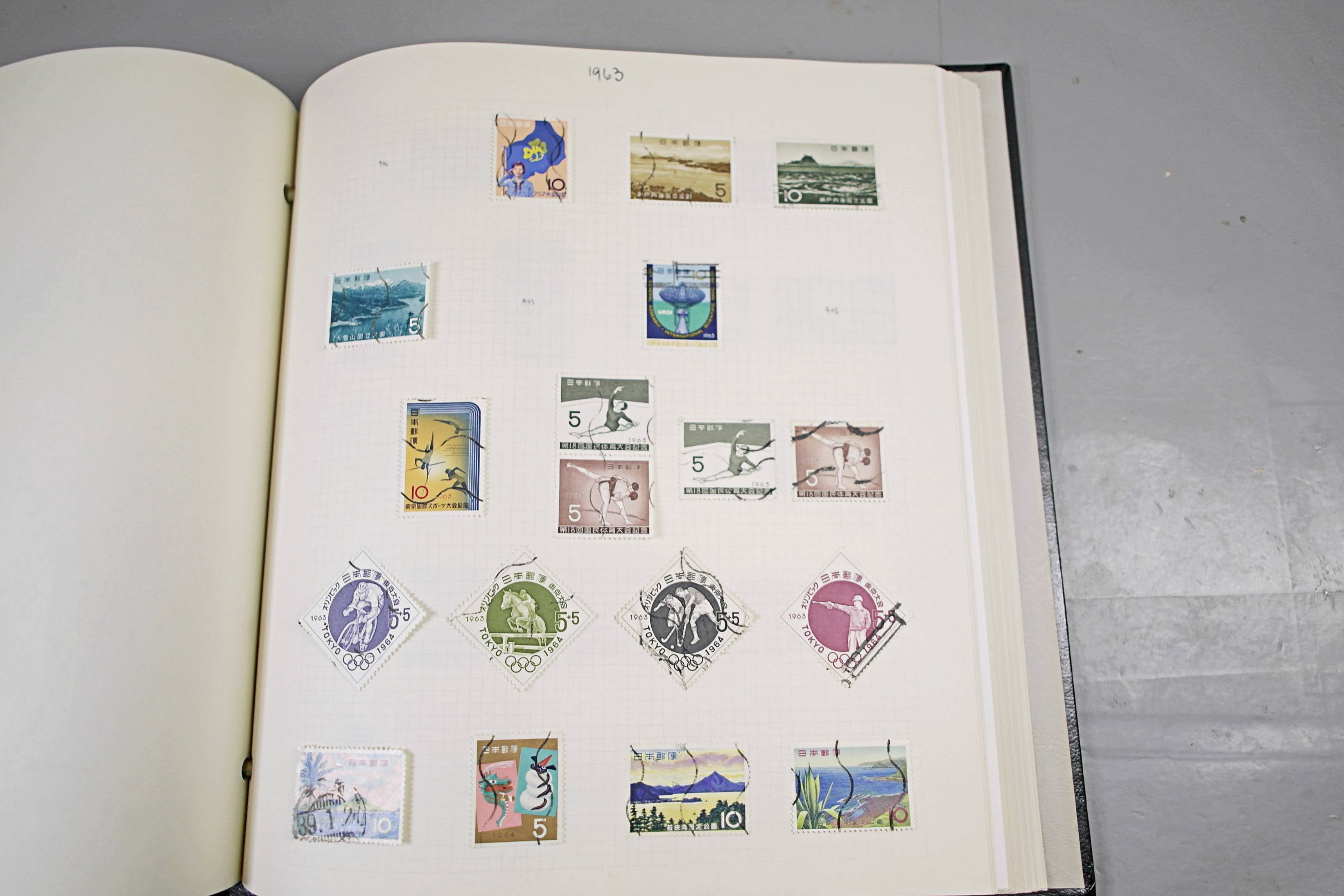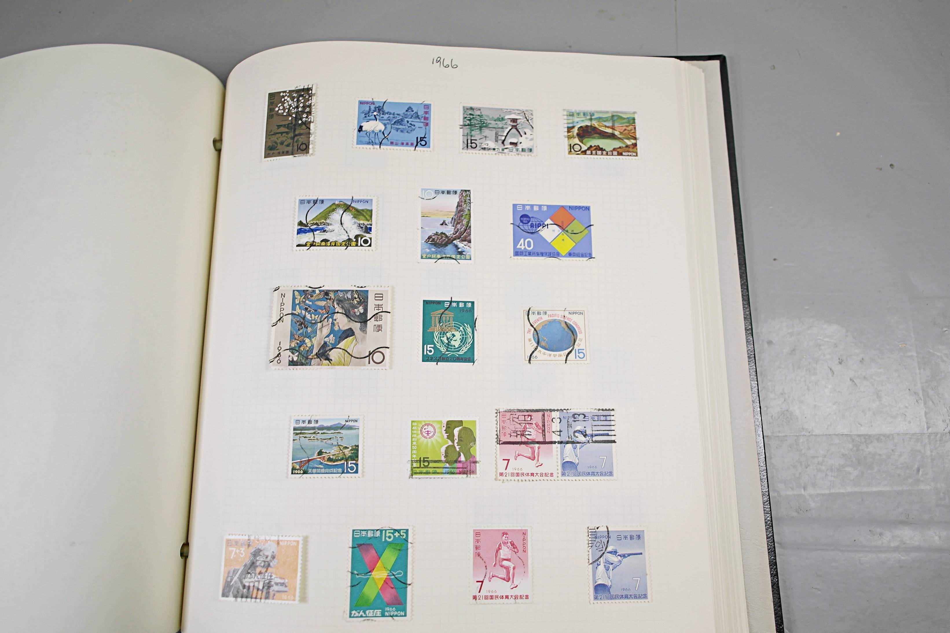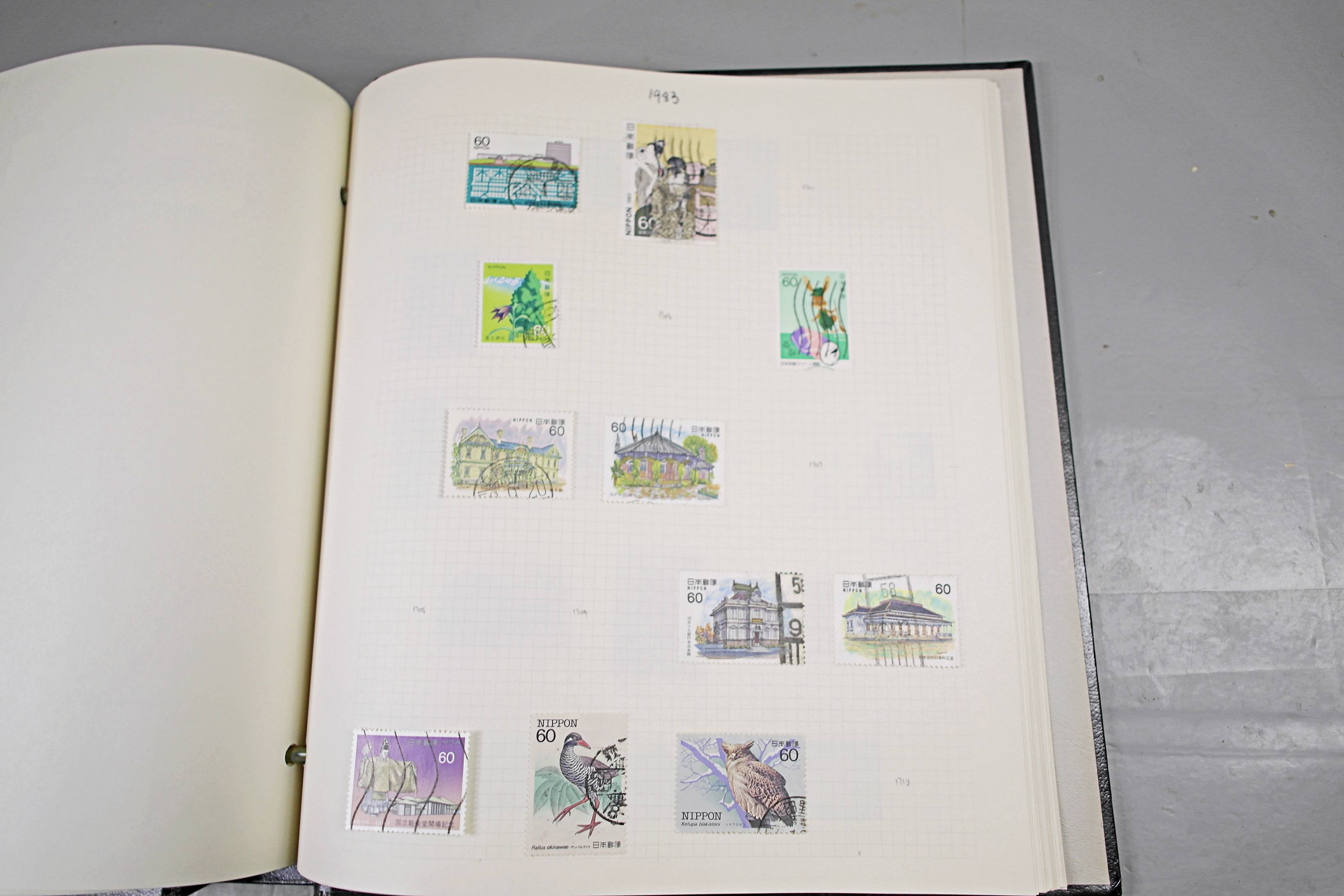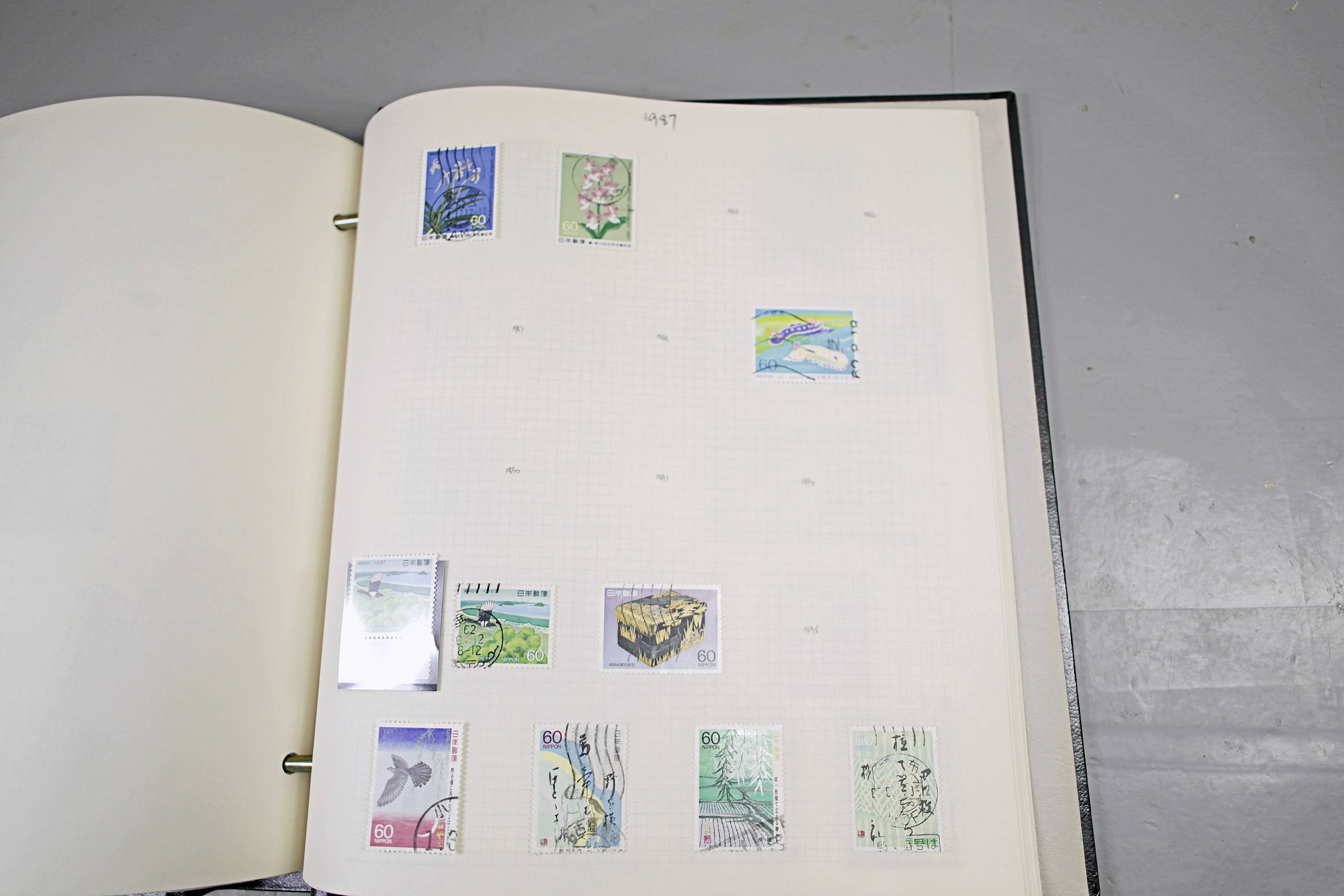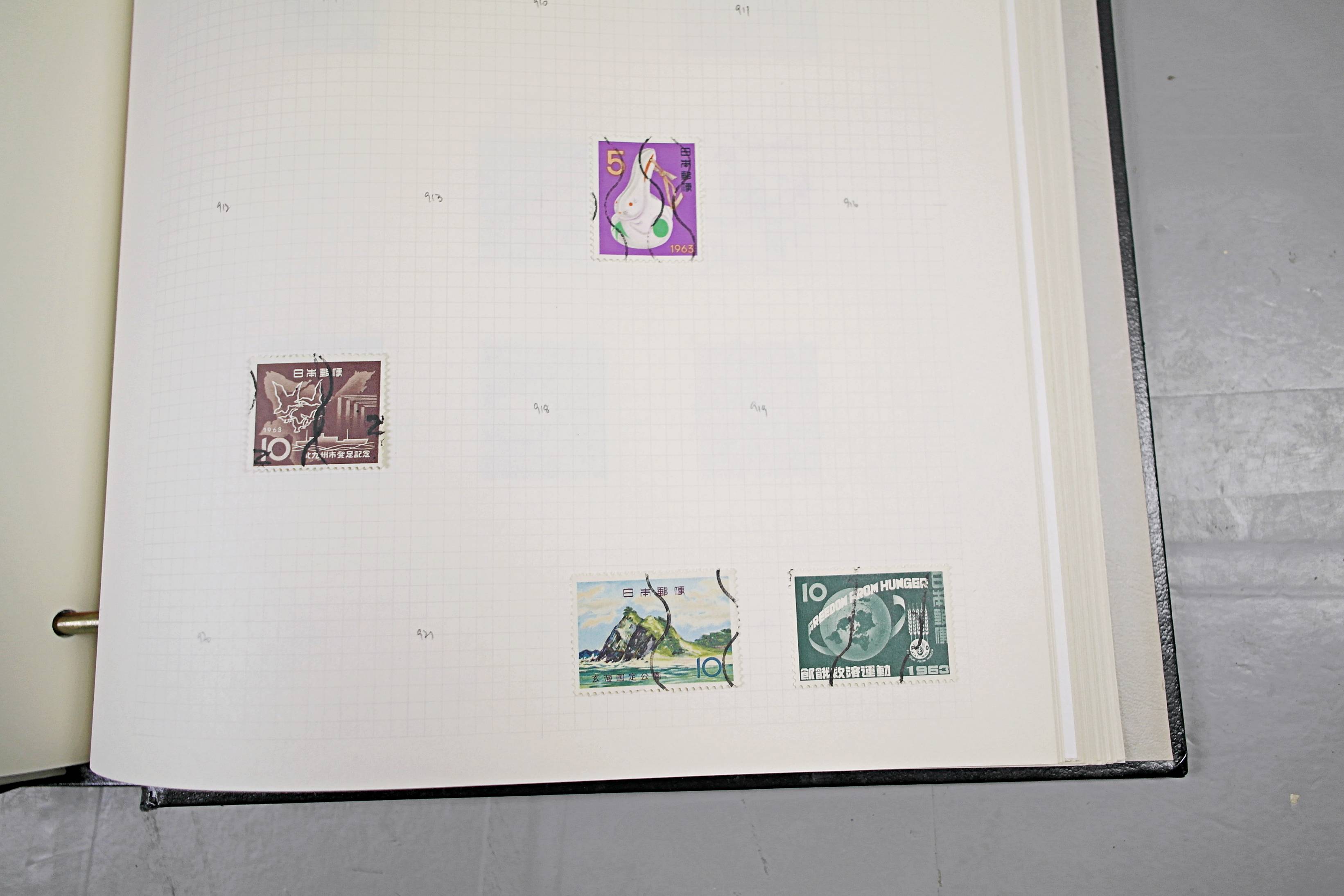 Extensive Japanese stamp collection in "Devon" Album. The collection is neatly laid out using Stanley Gibbon Catalogue numbers. The collection ranges from 1870s to modern. Many better items noted including early perf variations, mid-period commemoratives, and stronger later sets in mint and uséd condition. Please look at all 99 images carefully.