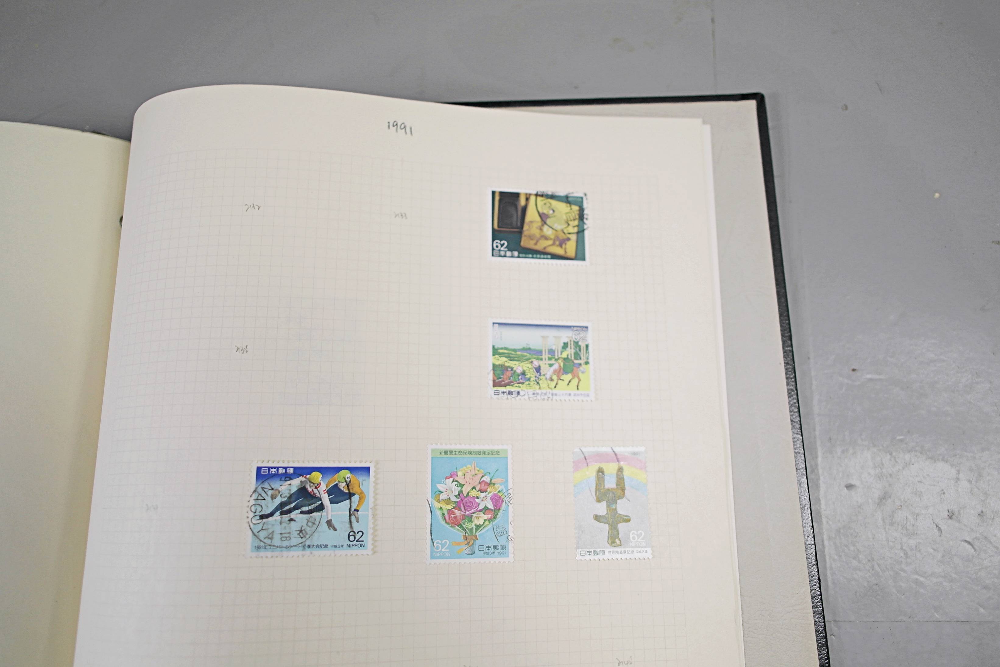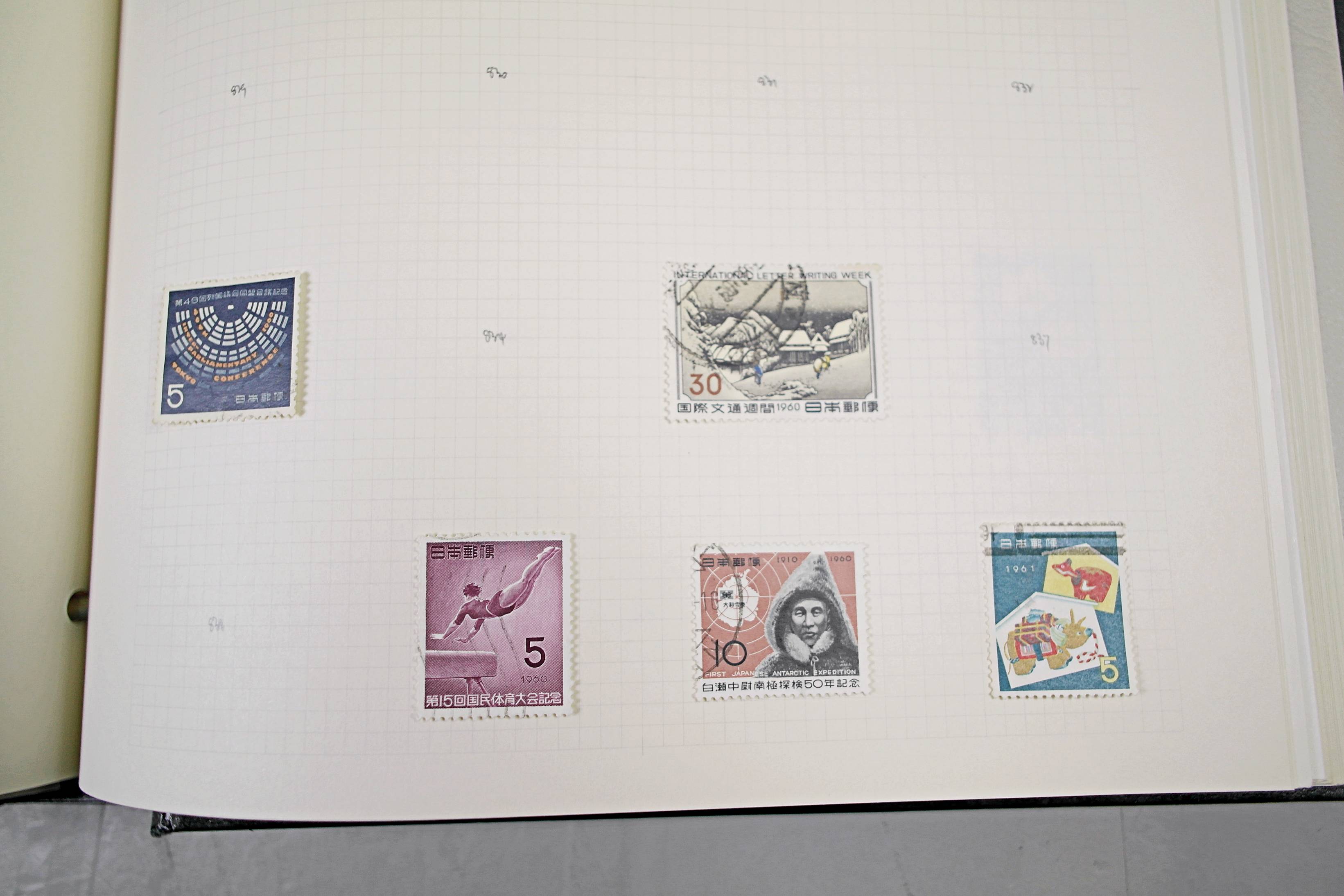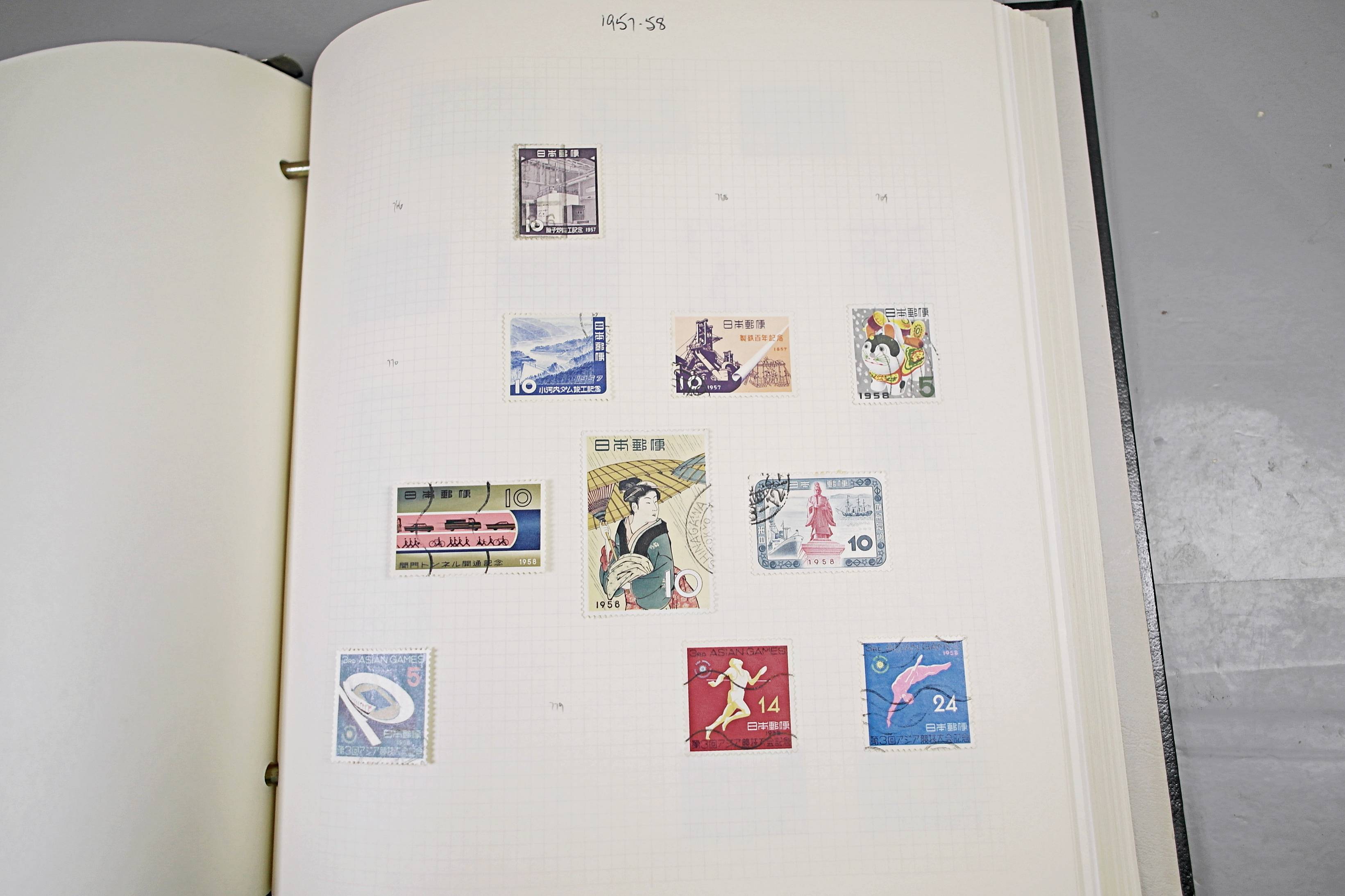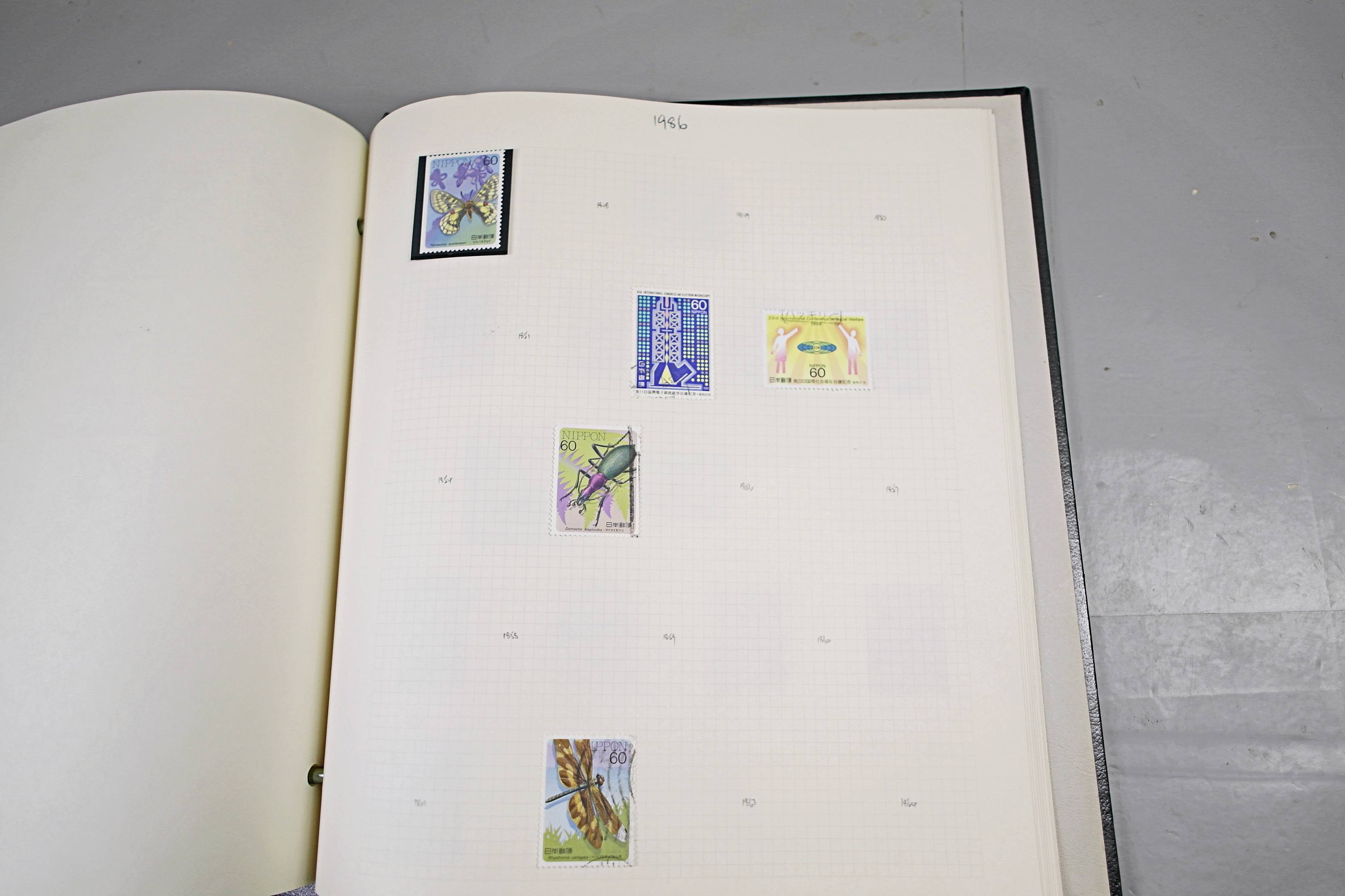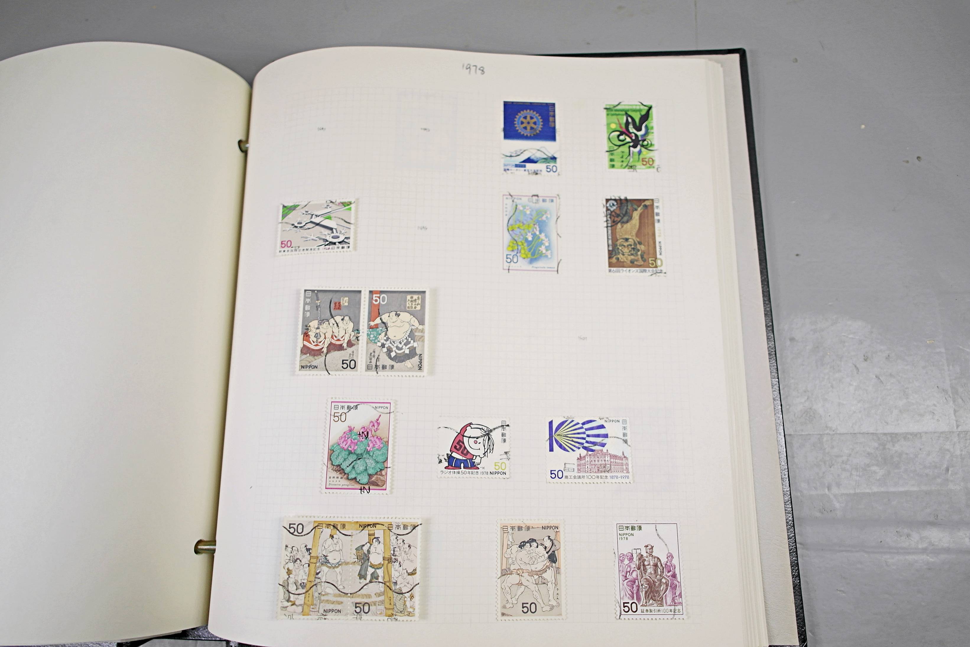Extensive Japanese stamp collection in "Devon" Album. The collection is neatly laid out using Stanley Gibbon Catalogue numbers. The collection ranges from 1870s to modern. Many better items noted including early perf variations, mid-period commemoratives, and stronger later sets in mint and uséd condition. Please look at all 99 images carefully.