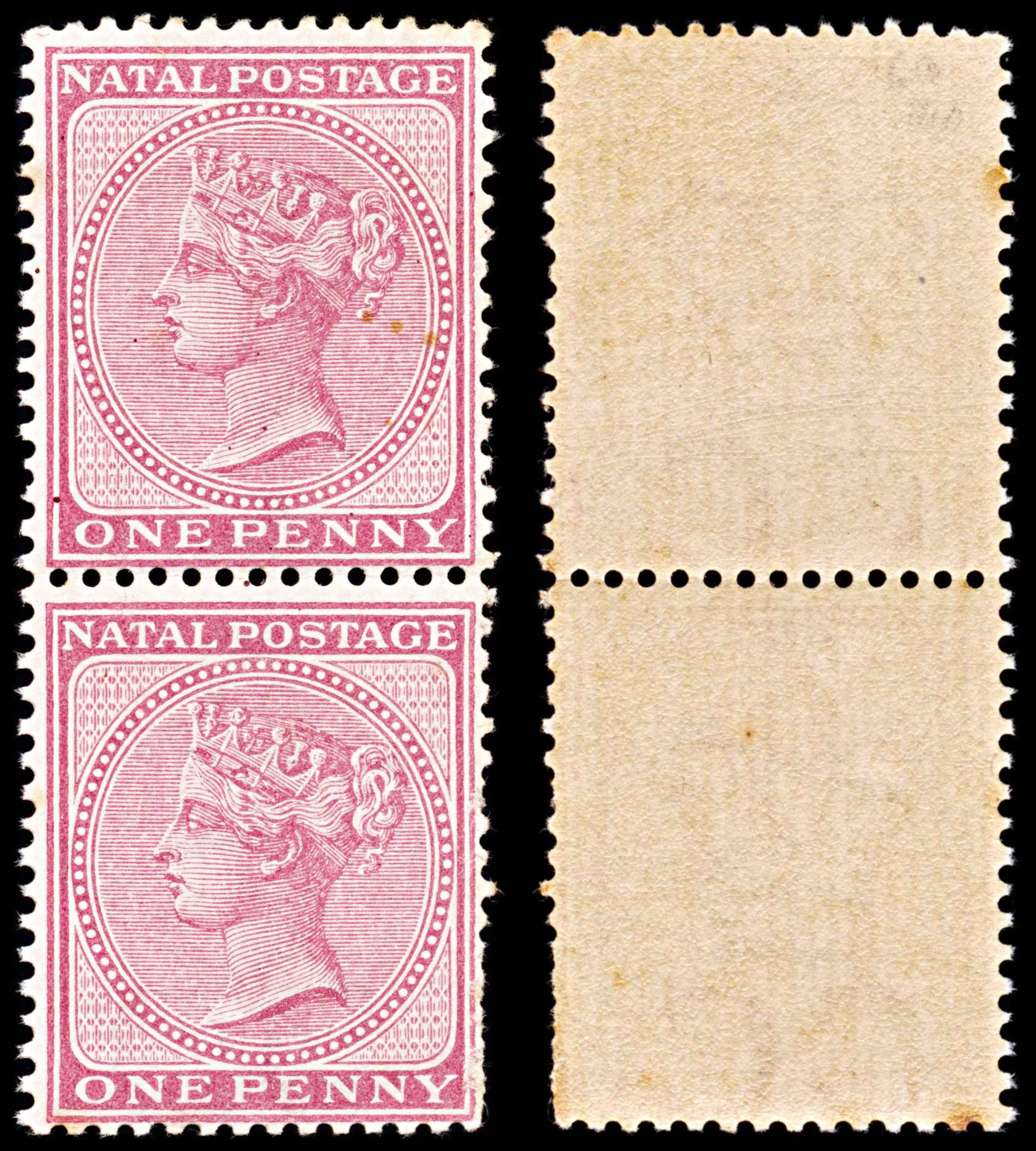 5731 Natal SG66 1d Rose. Vert. Pair 1874. Sc#51 Mi28 MNH Mint. C£140: Vertical Pair