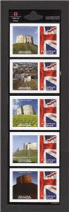 STRIP OF 5x SELF-ADHESIVE STAMPS, ISSUED BY 'UNIVERSAL MAIL' (A PRIVATE COMPANY) WHICH WERE VALID ONLY FOR SENDING POSTCARDS ABROAD FROM THE UK.