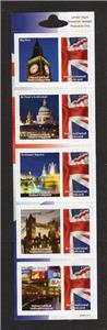 STRIP OF 5x SELF-ADHESIVE STAMPS, ISSUED BY 'UNIVERSAL MAIL' (A PRIVATE COMPANY) WHICH WERE VALID ONLY FOR SENDING POSTCARDS ABROAD FROM THE UK.