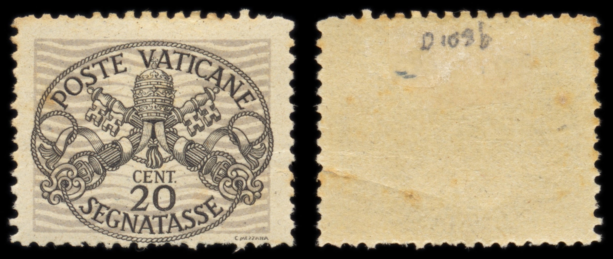 6234 Vatican City SG D108B 20c Black & Grey-Violet. Die II 1946. Mi P8xII Mint MH. C£180: Small crease seen on back