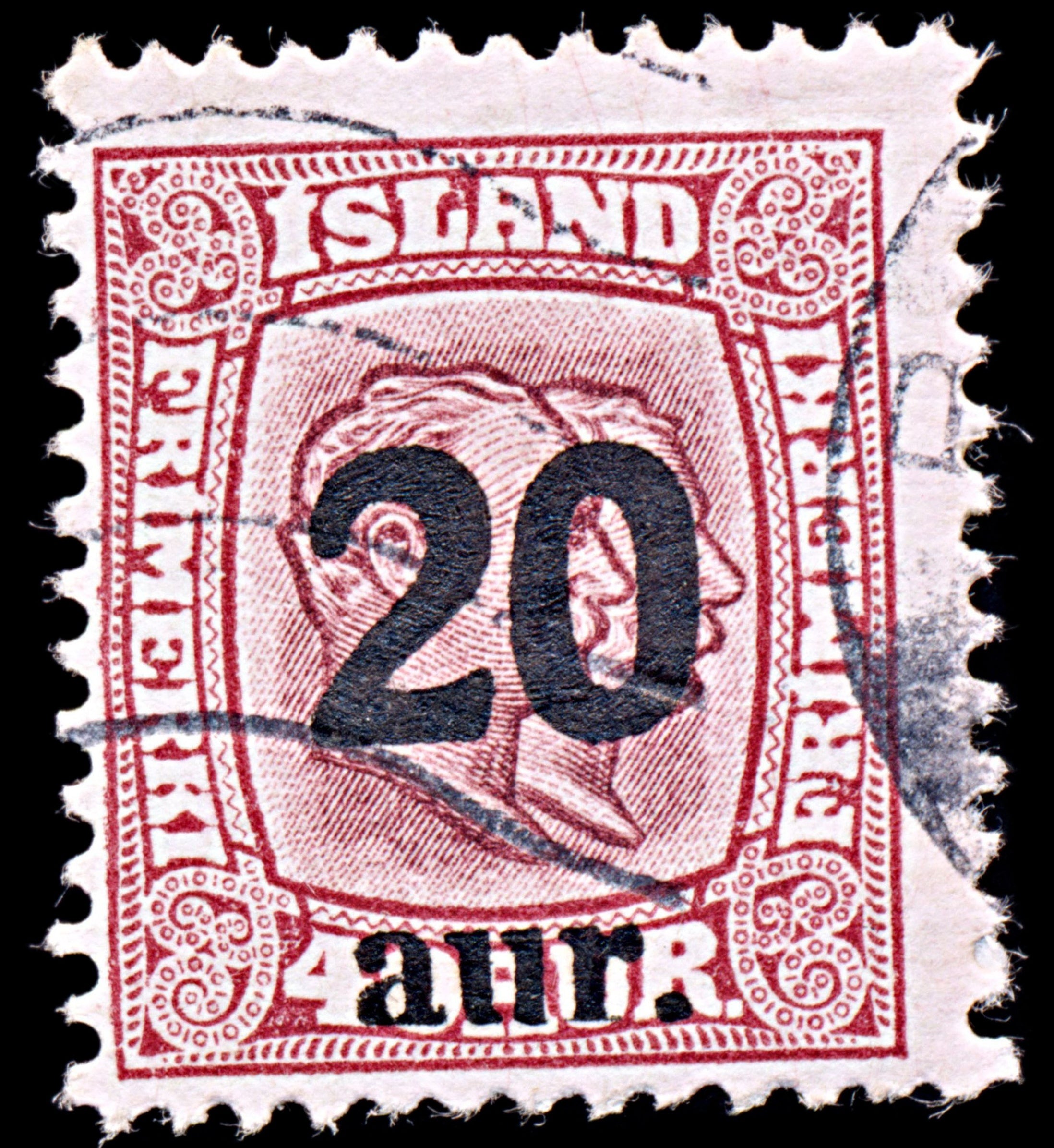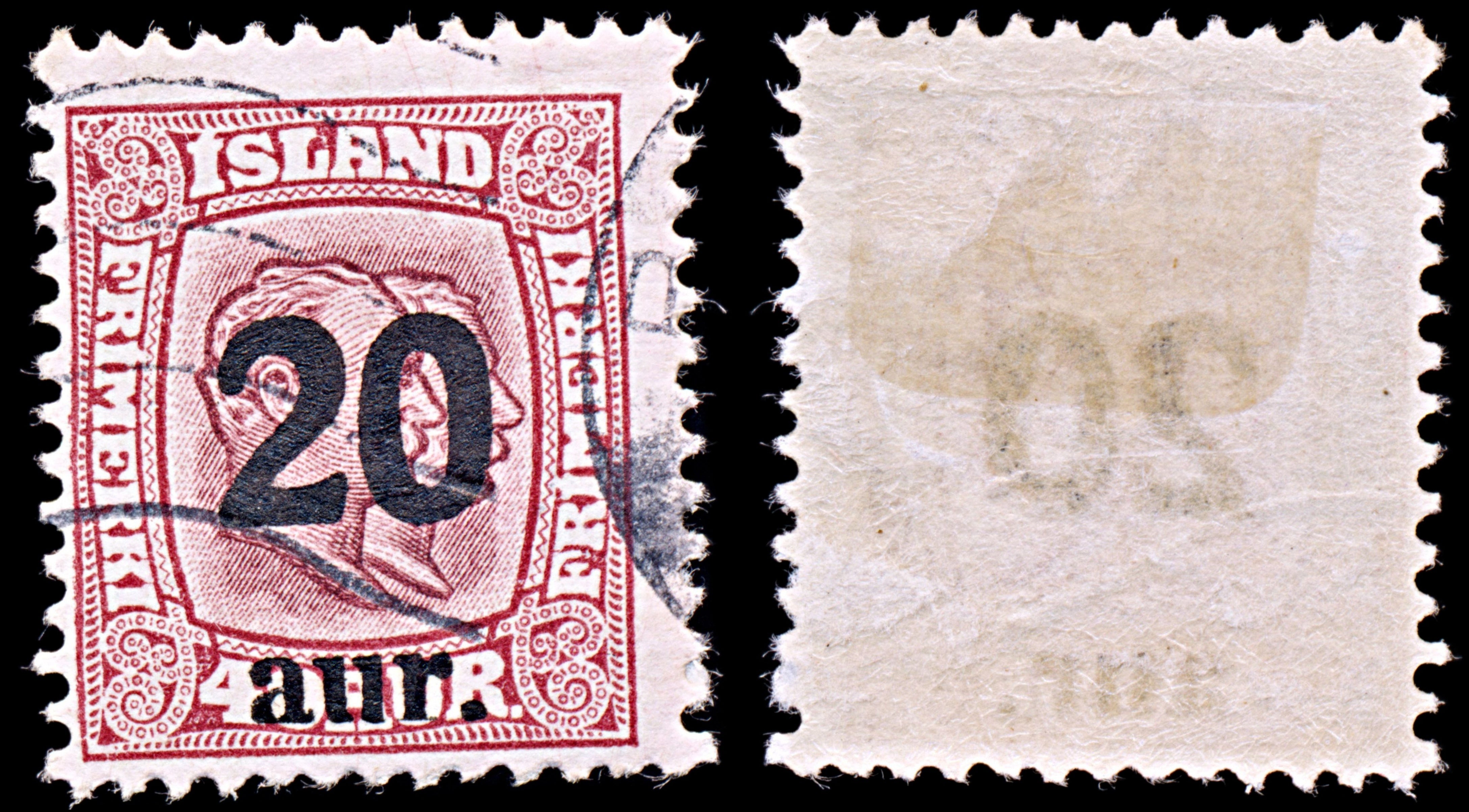 6508 Iceland SG143 20 Brown Lilac & Lilac Red 1922. Sc#135 Mi109 Uséd. C£22: