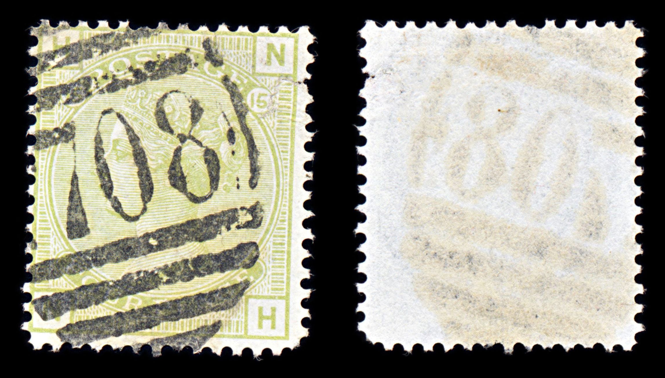 6815 GB SG153 4D Sage Green. Plate 15 "NH" 1877. Sc#70 Uséd. C£325: