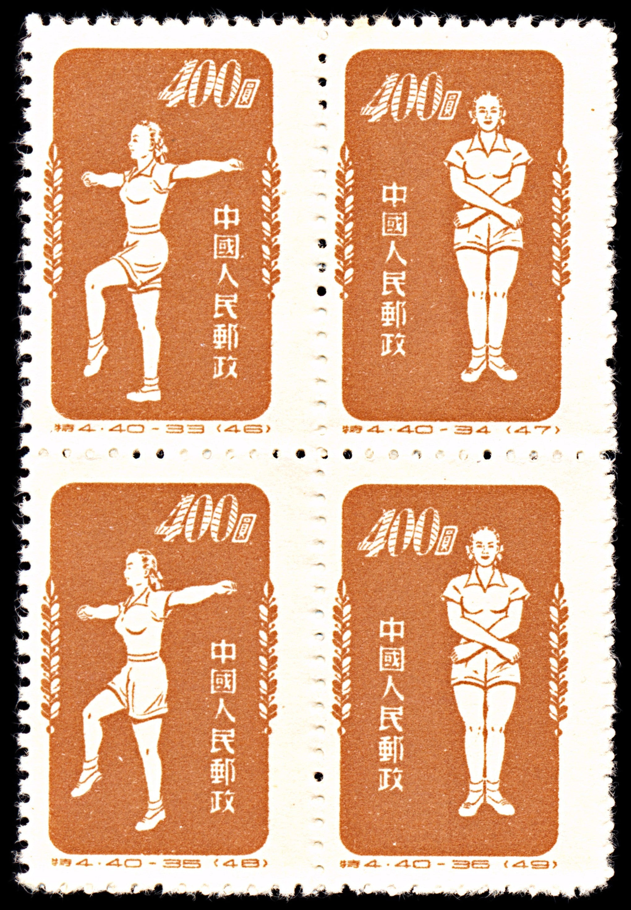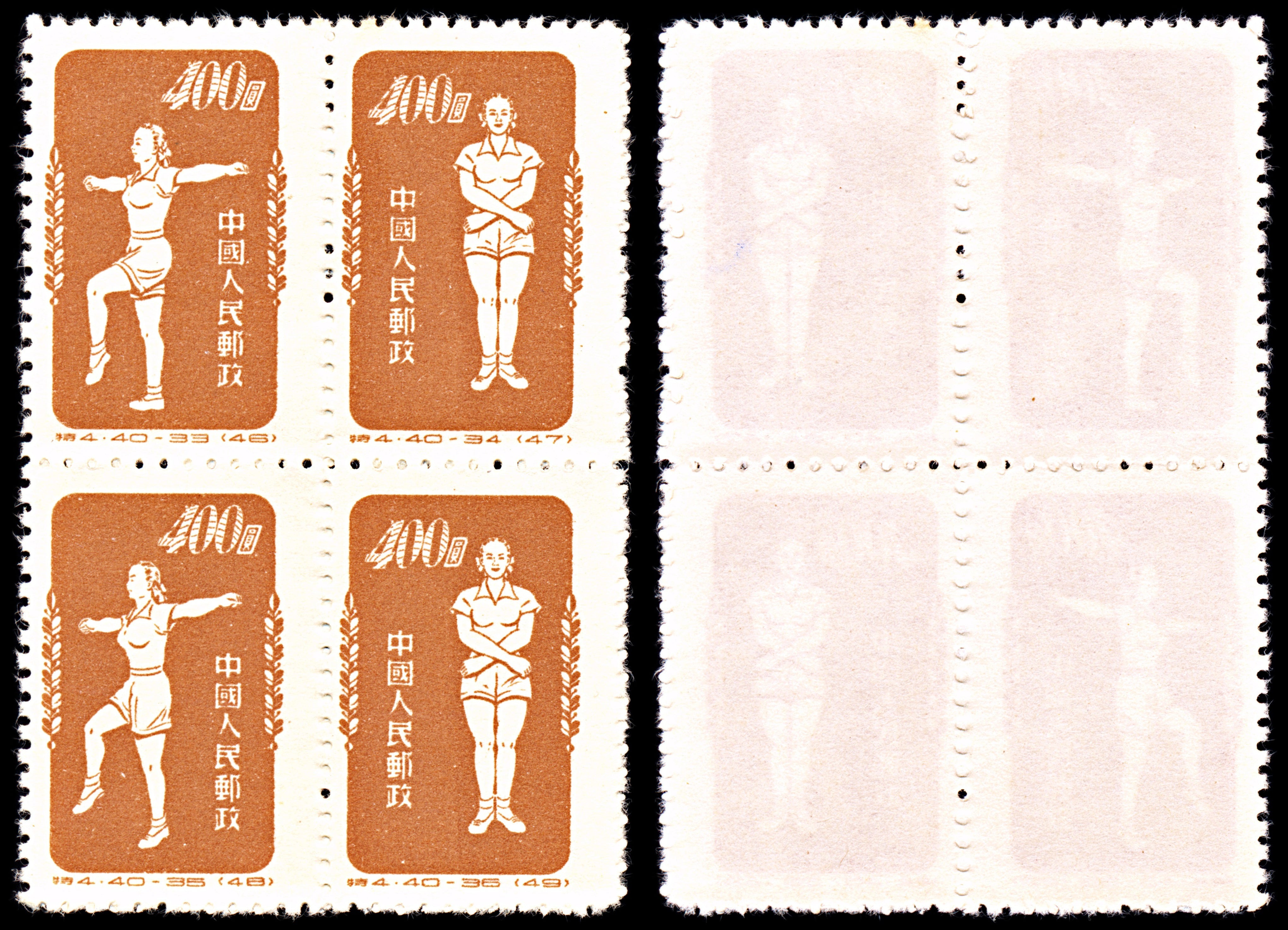 6922 China SG1551a $400 Ochre. Block of 4 1952. Sc#149 Mi 169-171 Mint MNG. C£180: