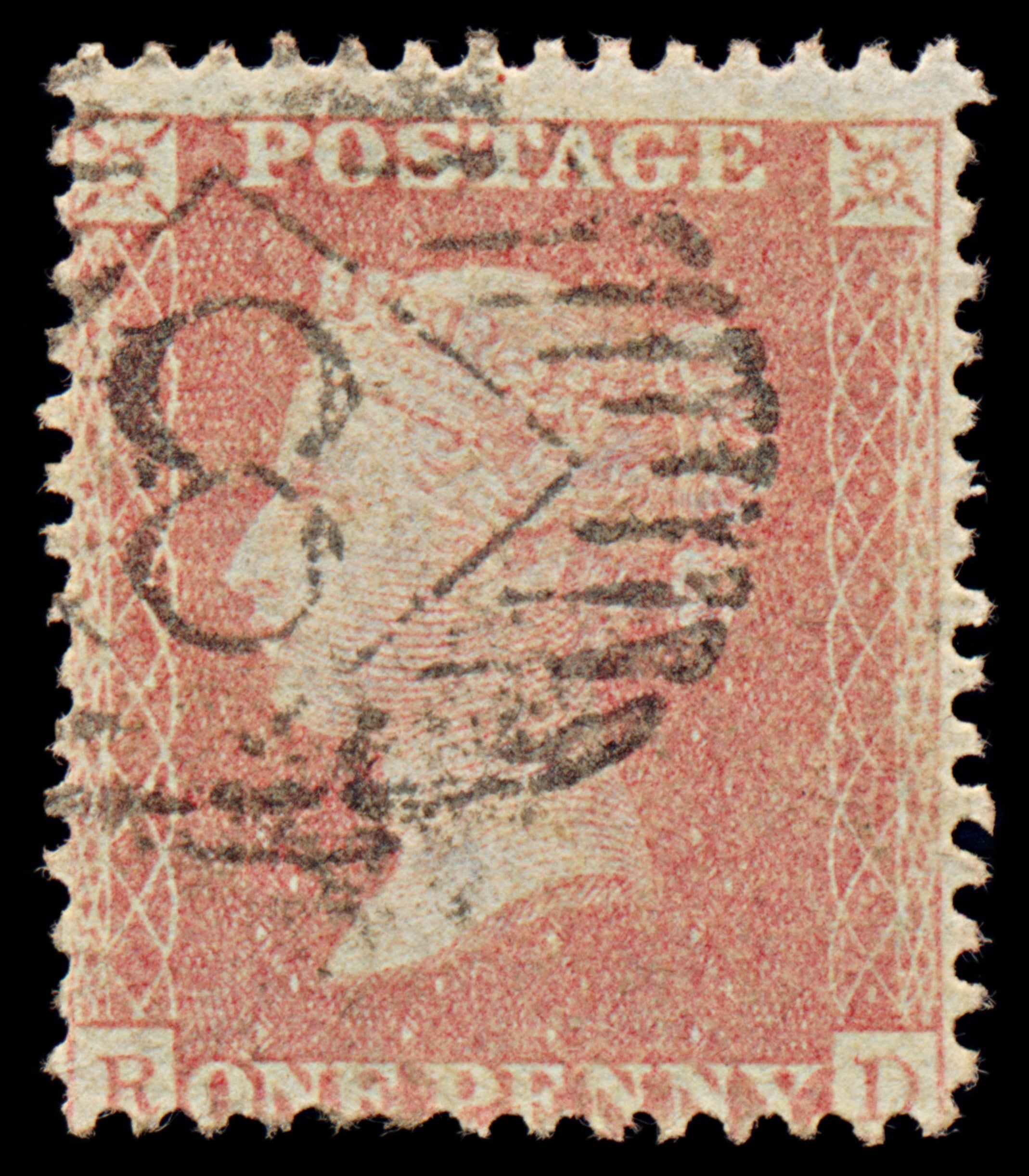 7366 GB SG40 1d Red. Plate 47. C10. "RD" 1857. Sc#20 Mi10IIbBze. P14 LC Alph III. C£55
