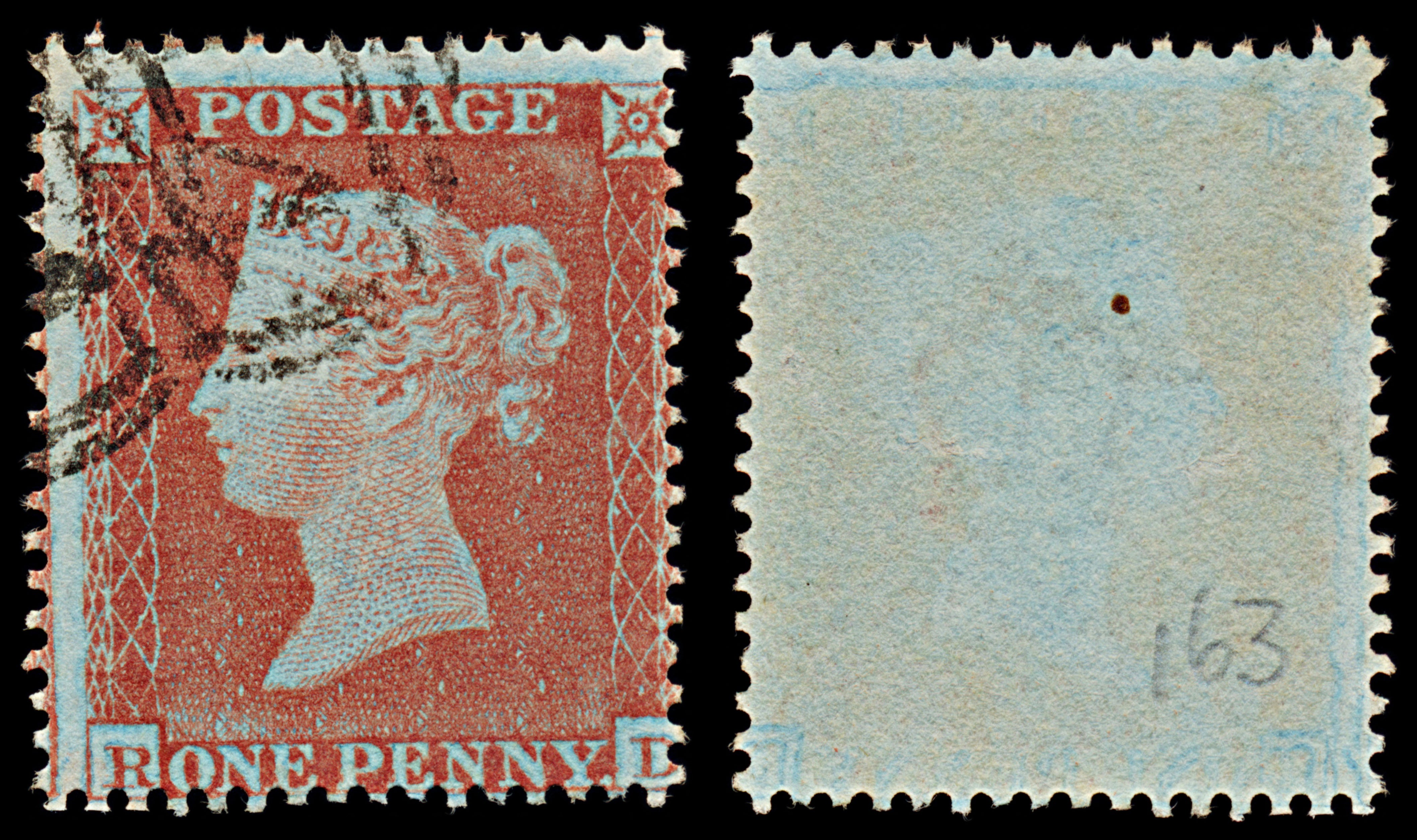 7369 GB SG17 1d Red. Plate 163. C1c "RD" 1854. Sc#8 Mi8IIAa. P16 SC Die I. C£250: Very blue paper