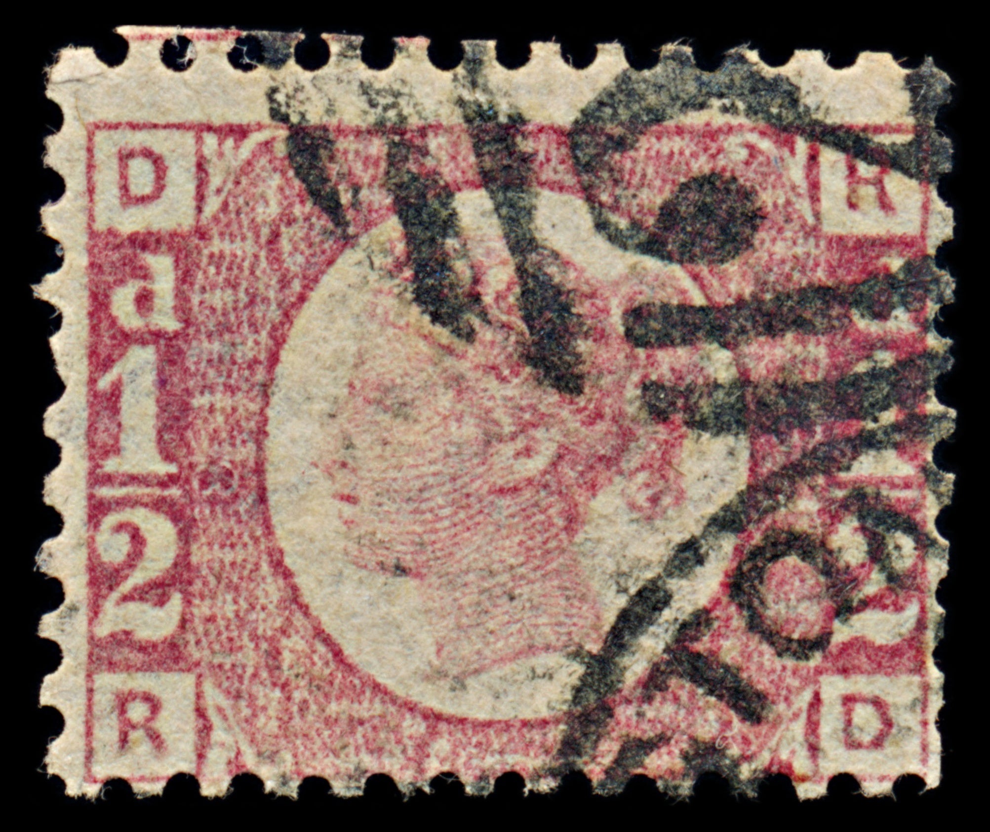 7417 GB SG49 ½d Rose-Red. Plate 8. G4 "RD" 1870. Sc#58 Mi36. Uséd. C£120: