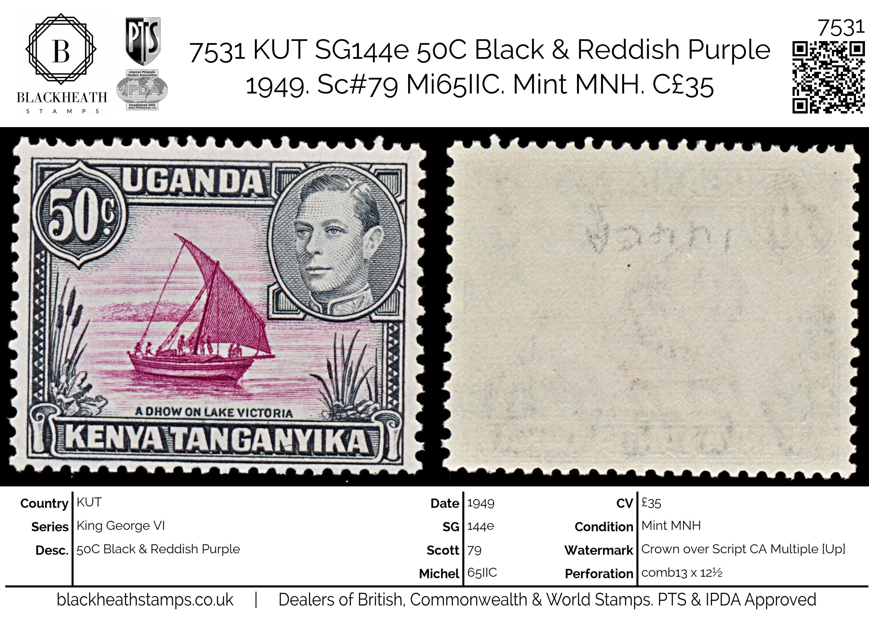 7531 KUT SG144ea 50C Black & Reddish Purple 1949. Sc#79 Mi65IIC. Mint MNH. C£35