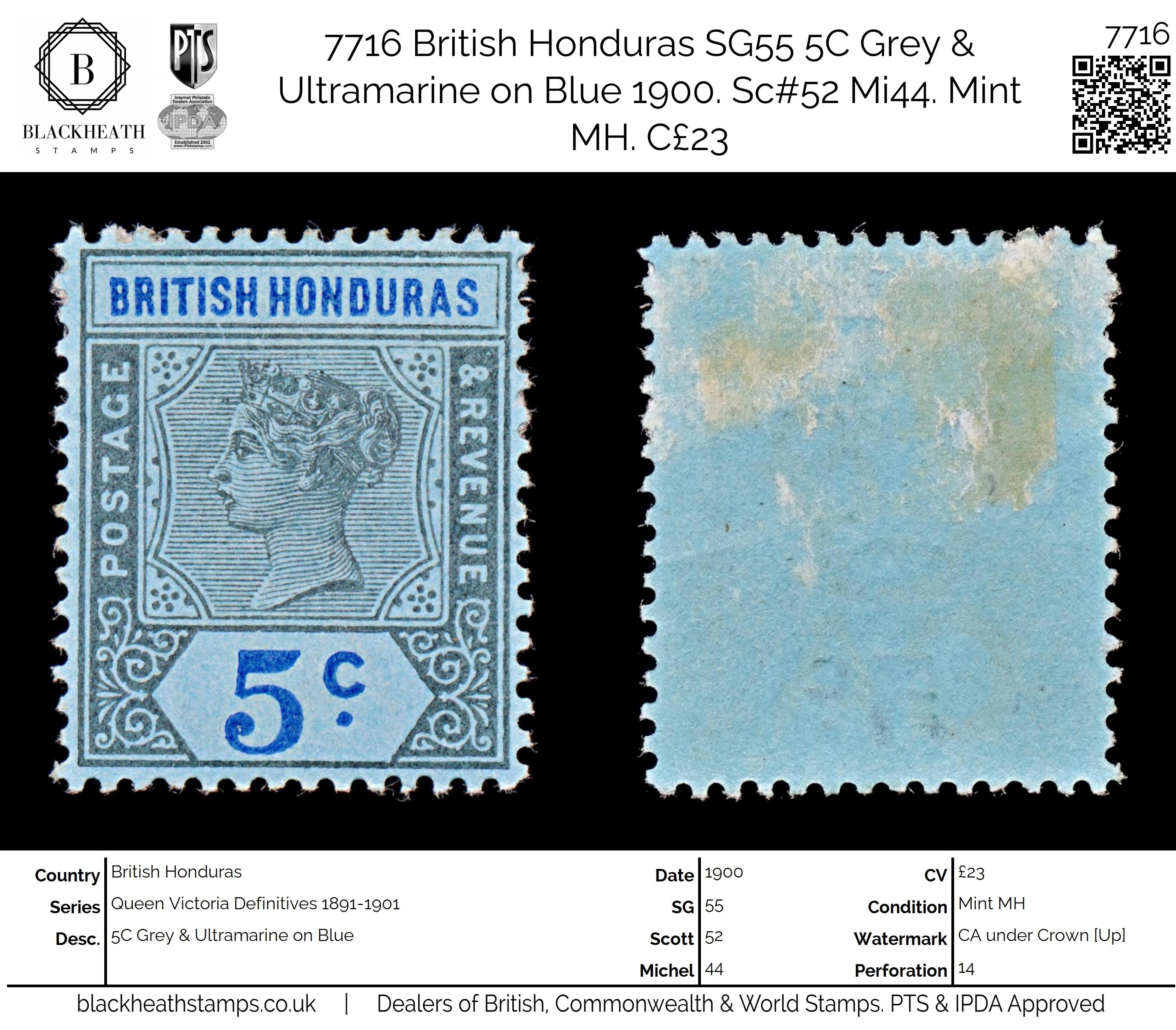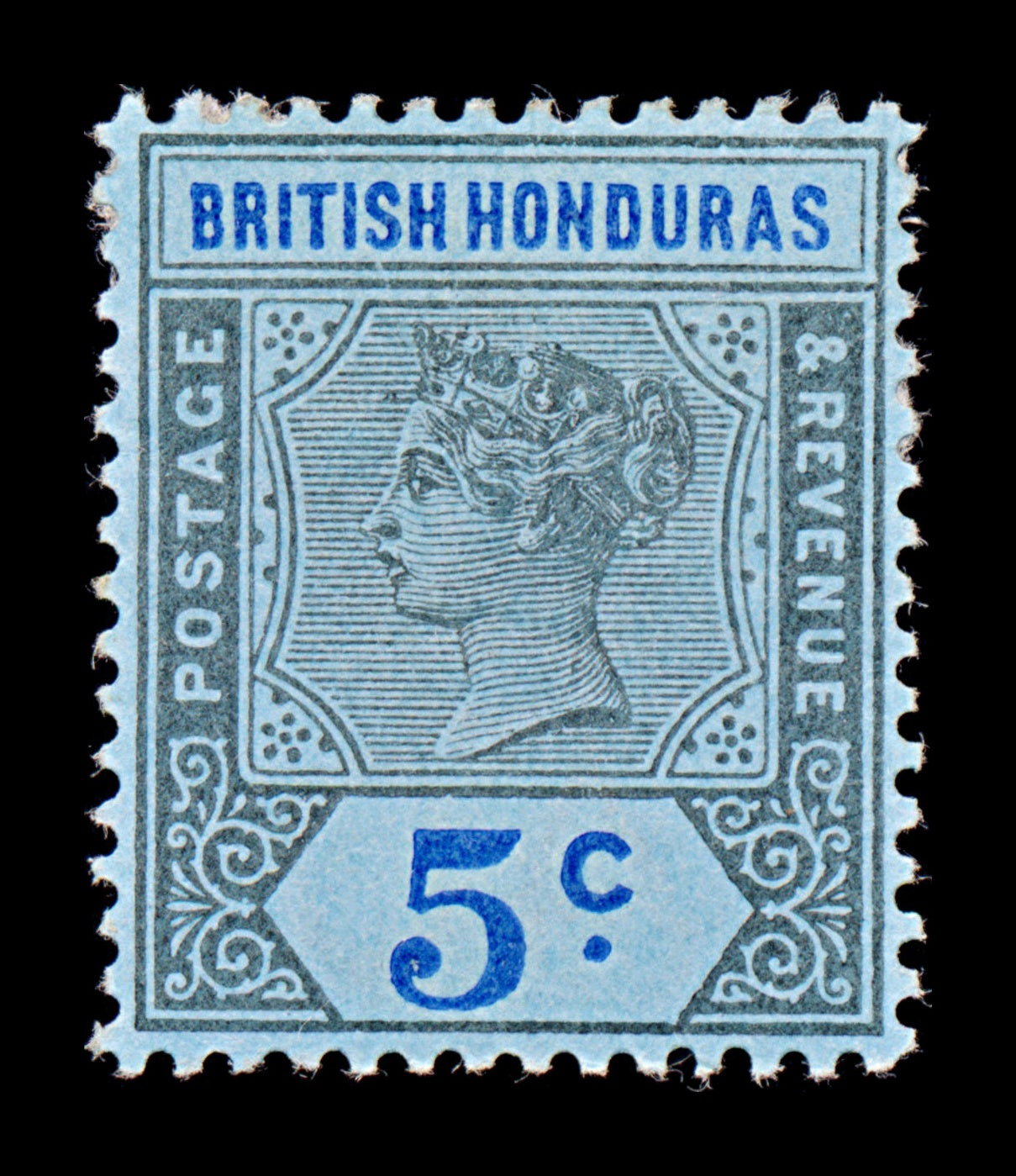 7716 British Honduras SG55 5C Grey & Ultramarine on Blue 1900. Sc#52 Mi44. Mint MH. C£23