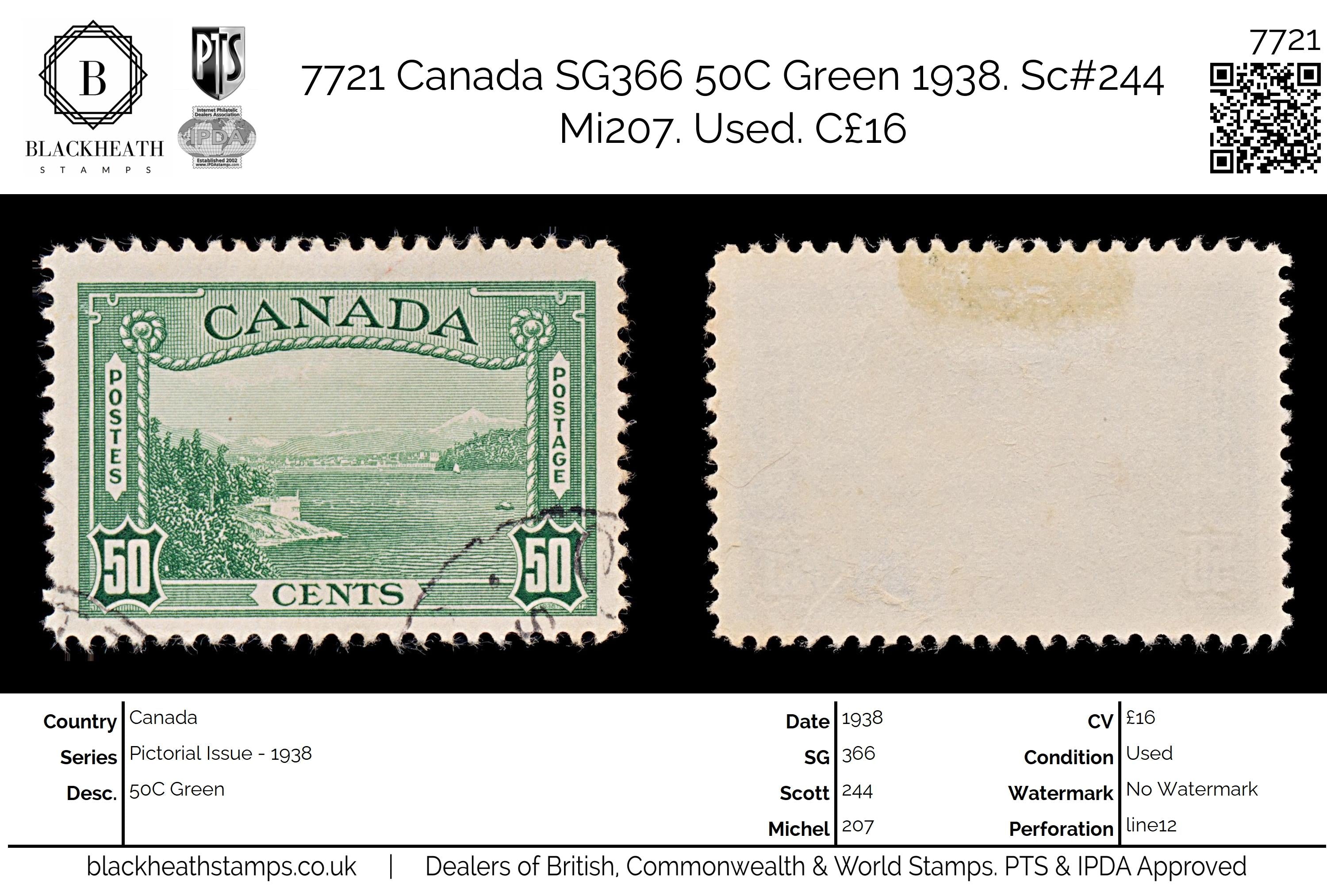 7721 Canada SG366 50C Green 1938. Sc#244 Mi207. Uséd. C£16: