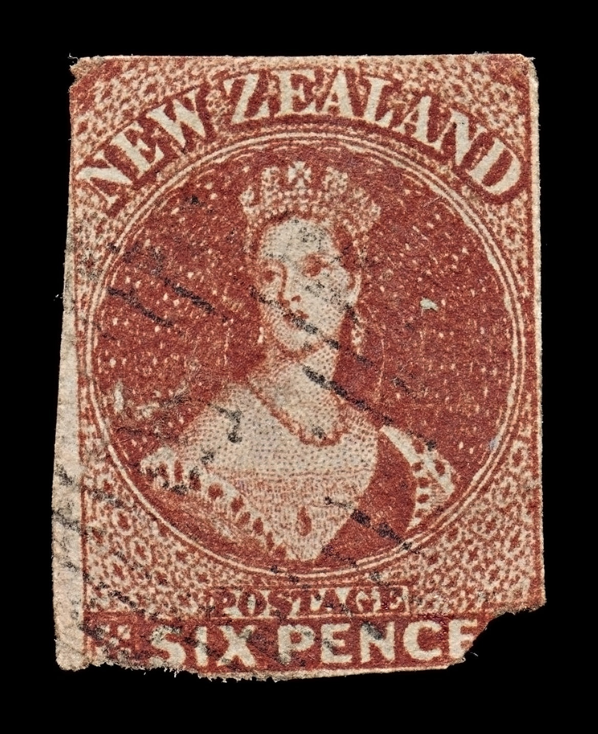 7730 New Zealand SG43 6D Red Brown 1863. Sc#14 Mi16a. Used. C£120