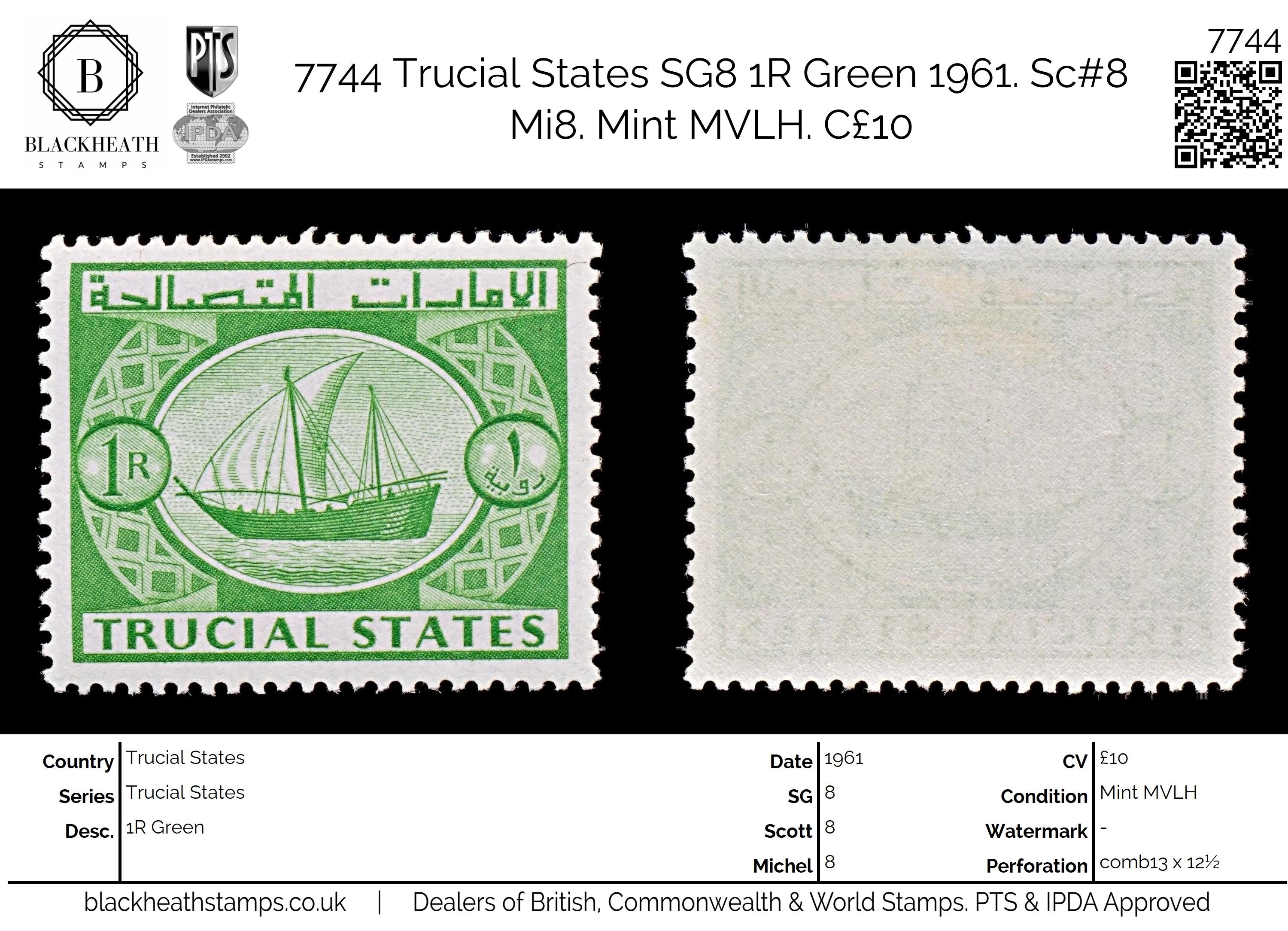 7744 Trucial States SG8 1R Green 1961. Sc#8 Mi8. Mint MVLH. C£10