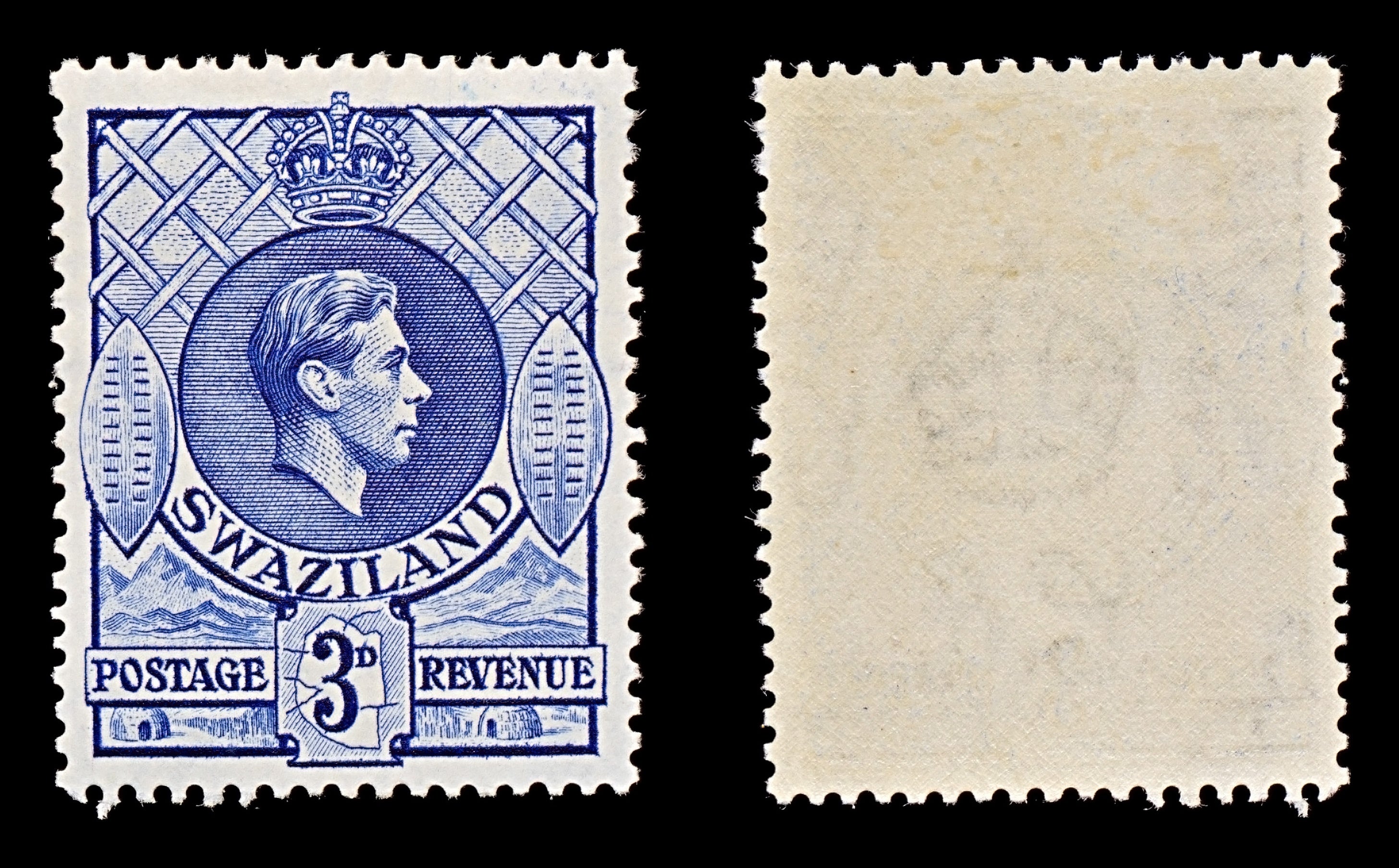 7750 Swaziland SG32a 3D Deep Blue 1938. Mi31abA. Mint MVLH. C£17
