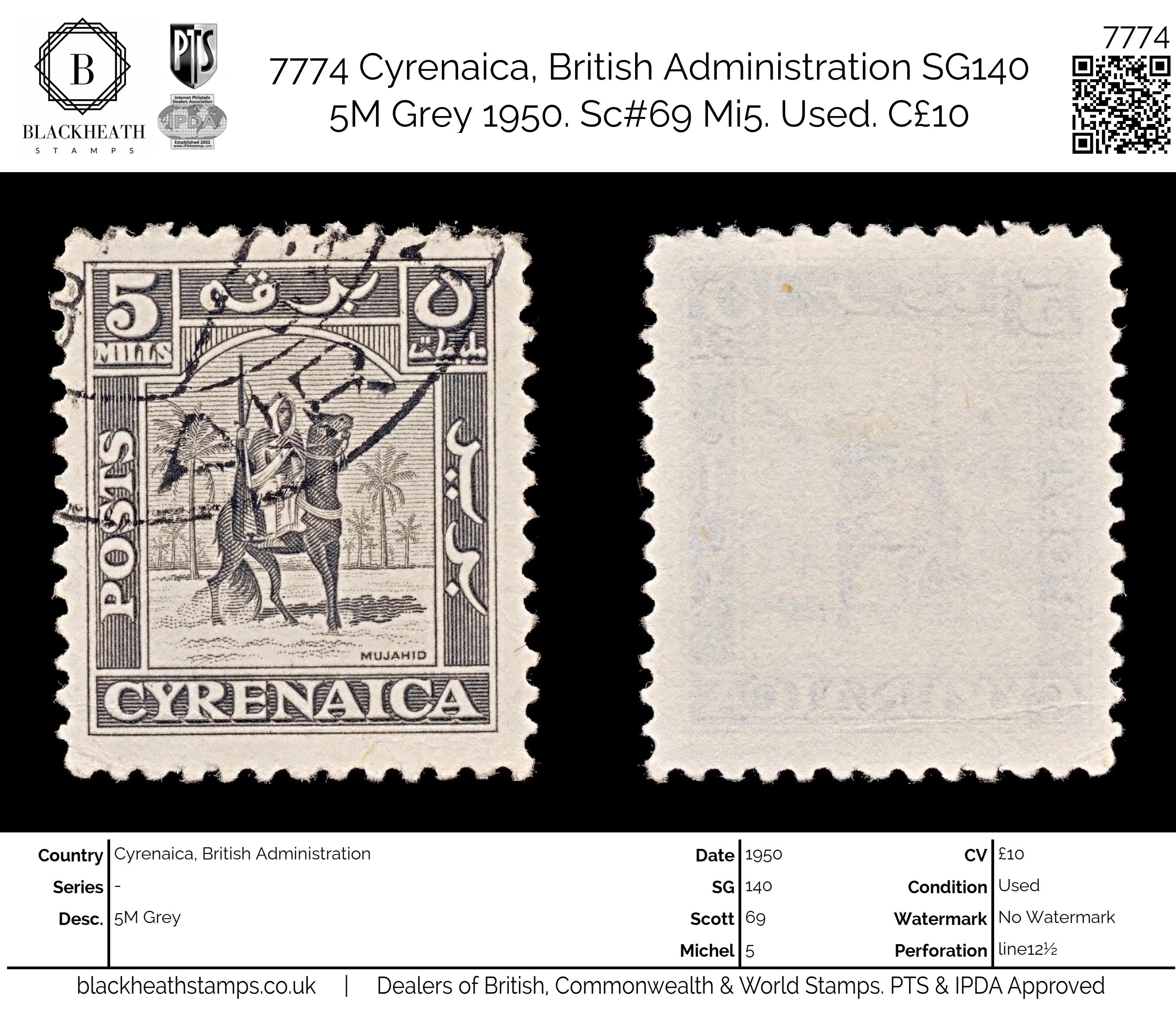 7774 Cyrenaica, British Administration SG140 5M Grey 1950. Sc#69 Mi5. Uséd. C£10: