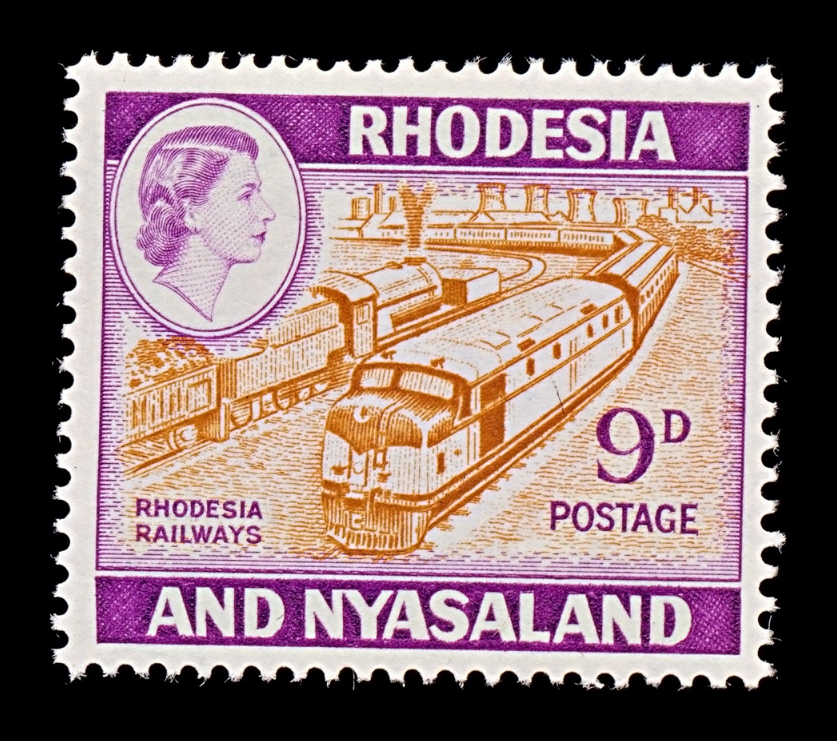 7854 Rhodesia & Nyasaland SG24a 9D Purple & Yellow Brown 1962. Sc#164A Mi26. Mint MVLH. C£9