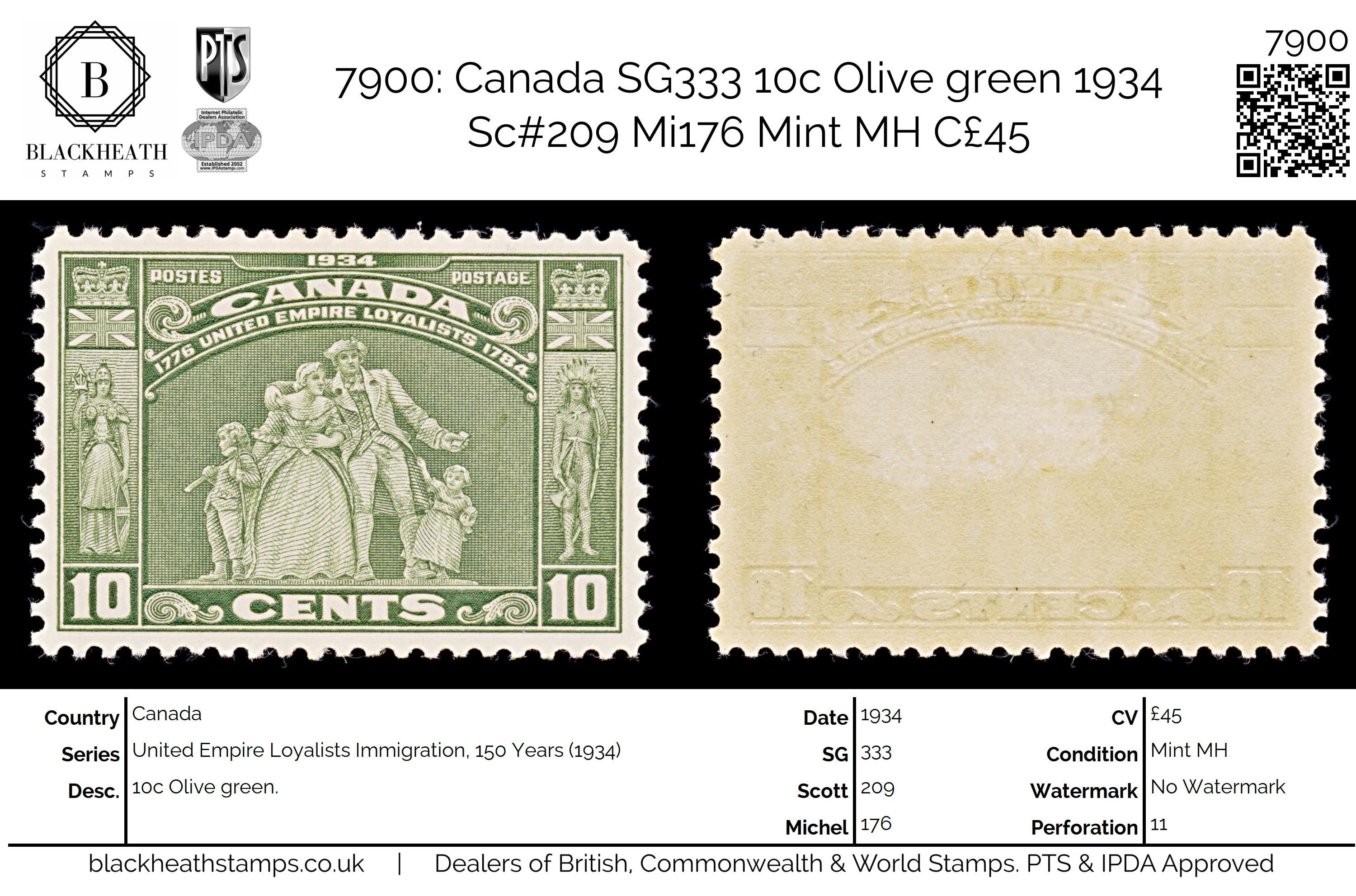 7900: Canada SG333 10c Olive green 1934 Sc#209 Mi176 Mint MH C£45