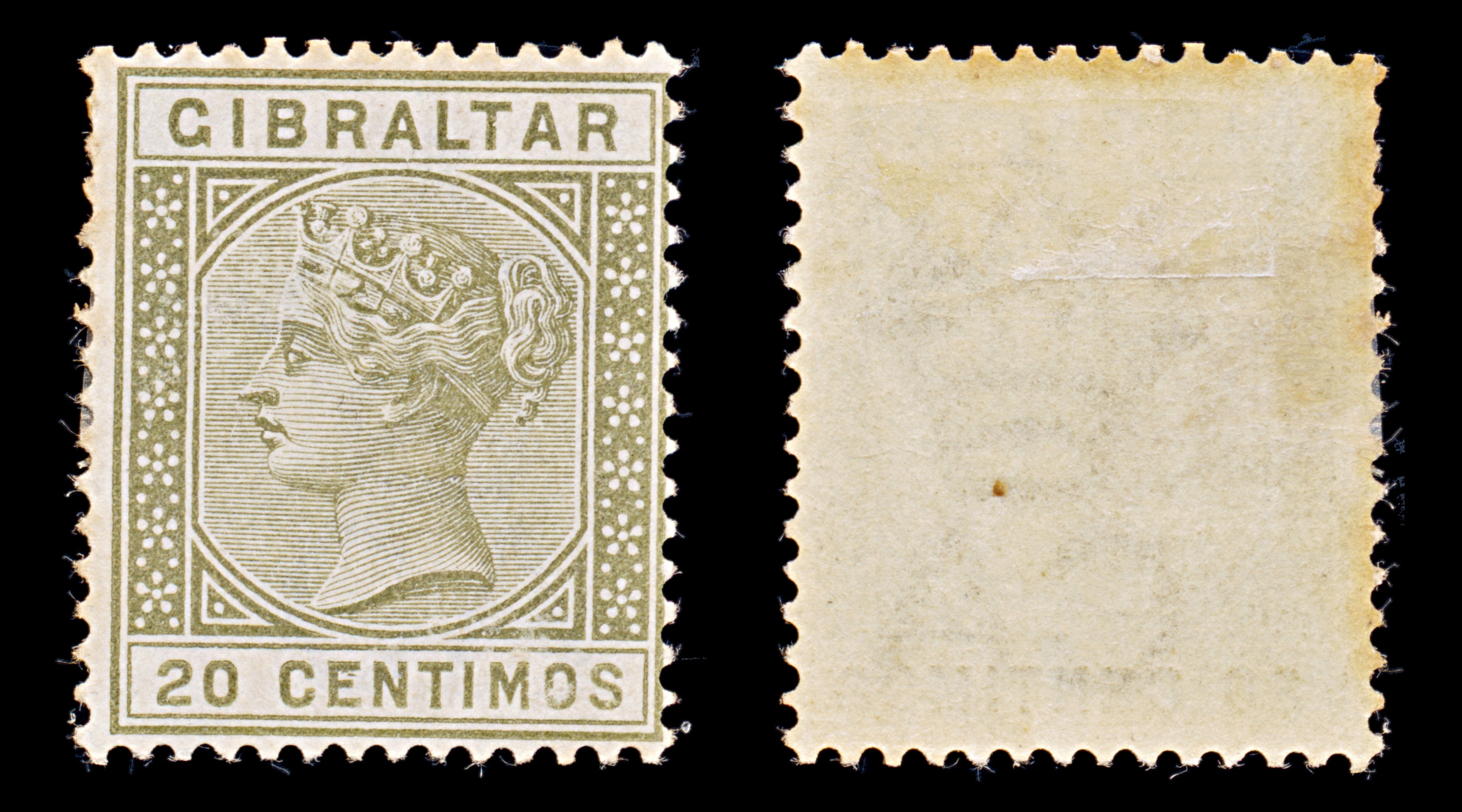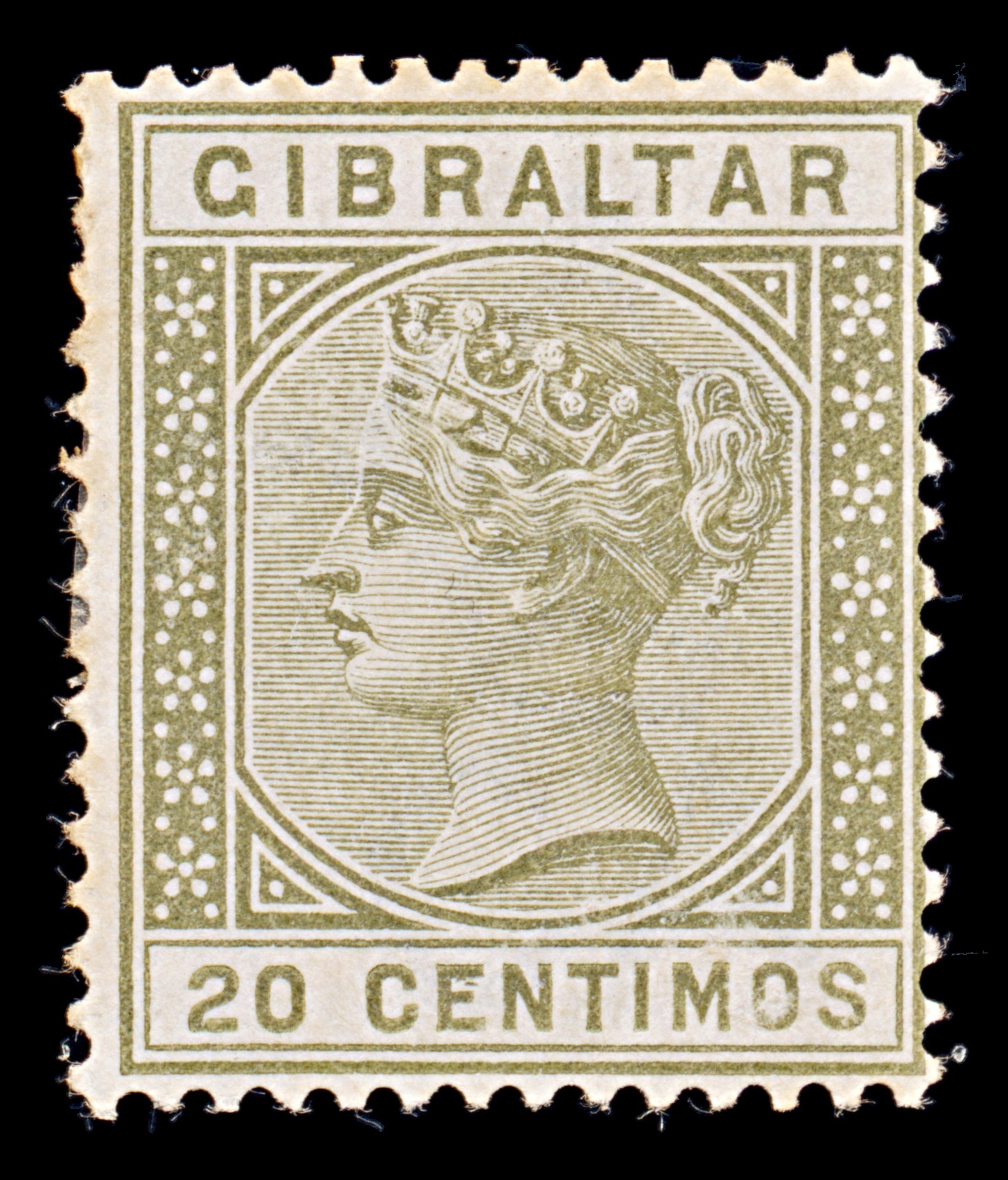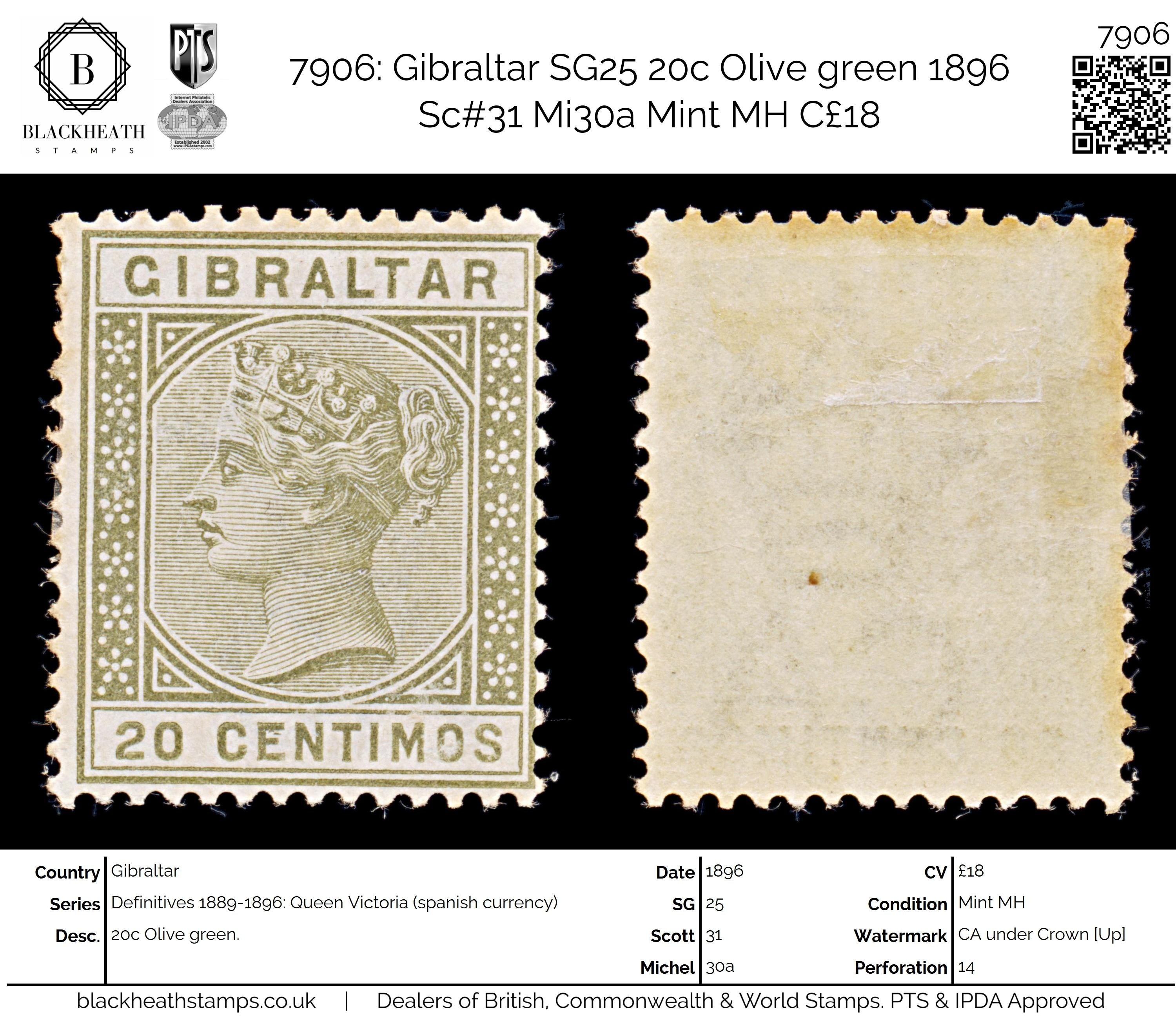 7906: Gibraltar SG25 20c Olive green 1896 Sc#31 Mi30a Mint MH C£18