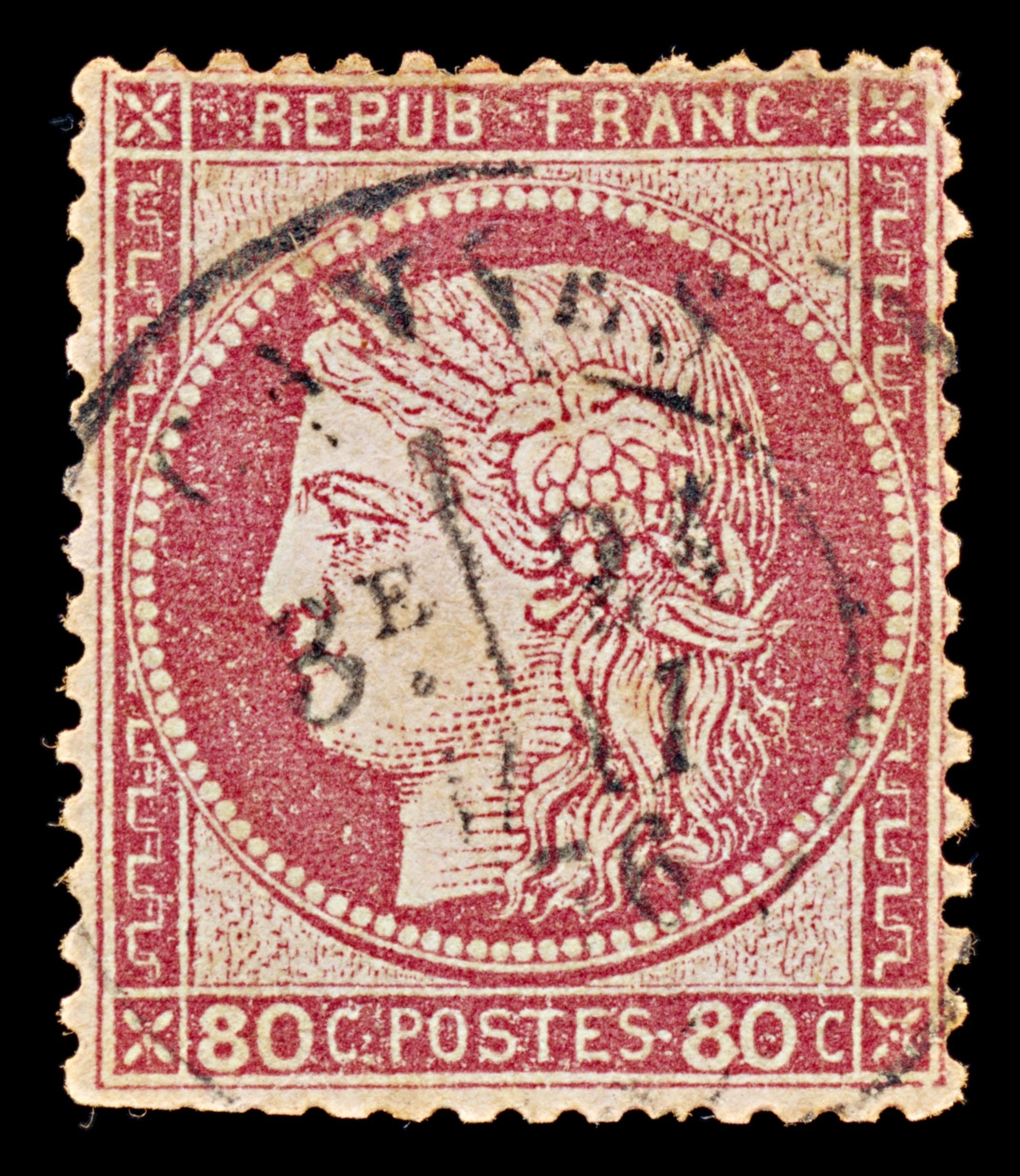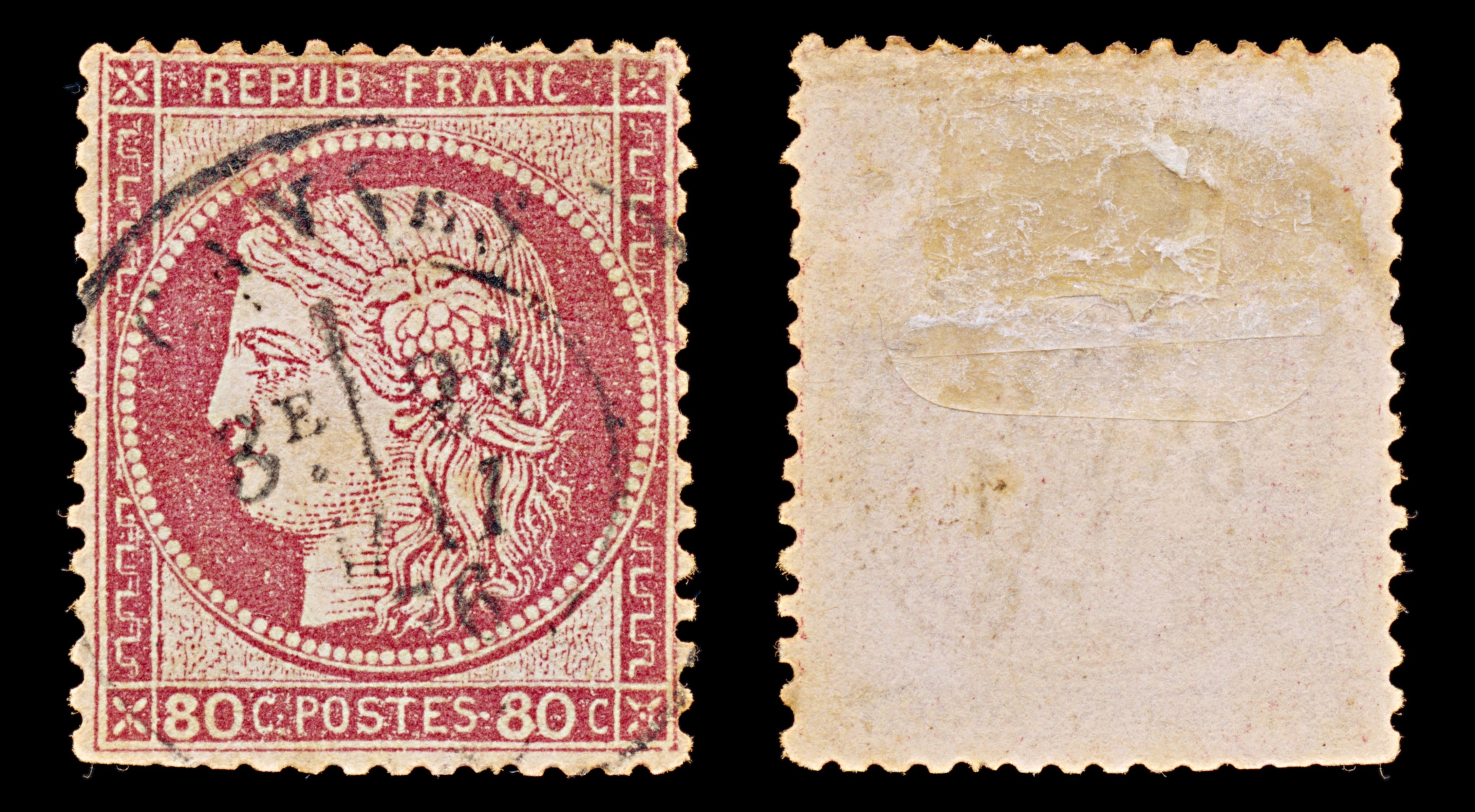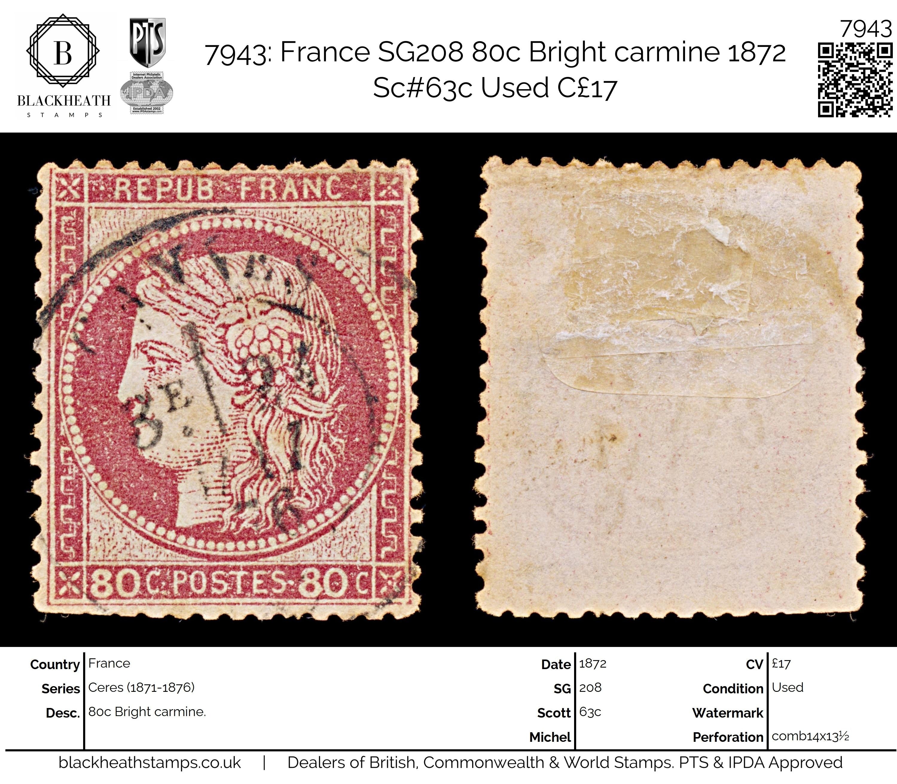 7943: France SG208 80c Bright carmine 1872 Sc#63c Uséd C£17